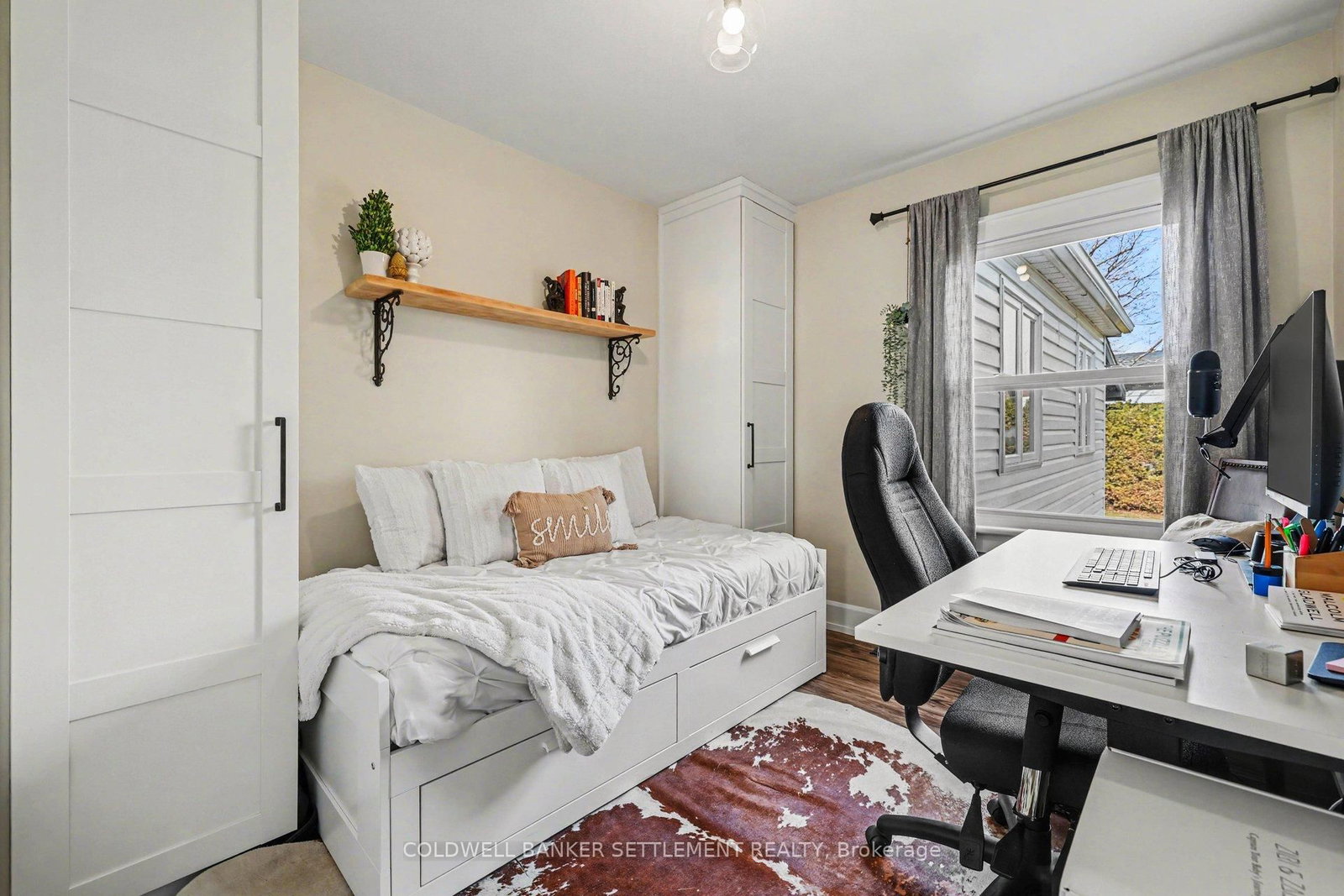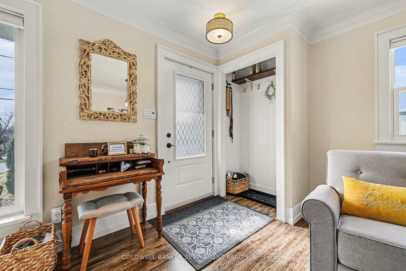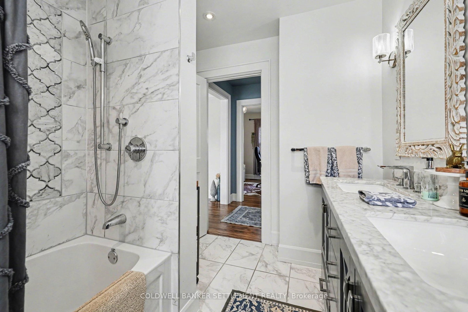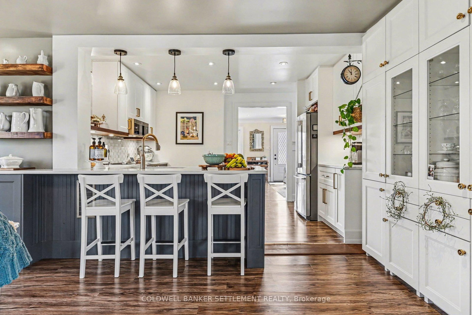 Tucked away on a quiet in-town street, this fully finished and tastefully upgraded bungalow offers the perfect blend of comfort, style, and functionality-just moments from all amenities while enjoying a peaceful, private setting. The Bungalow on 22 Broadview Avenue W has 3 bedrooms, 2 bathrooms, and is located on a 114.86 x 79.85 ft lot in the community of Smiths Falls . Situated on a desirable corner lot and bordered by a mature cedar hedge, the backyard provides exceptional privacy and a serene outdoor retreat complete with a patio, a charming 3-season sunroom overlooking the yard, and a storage shed with hydro. Inside, the home showcases a thoughtfully designed layout. The open concept dining and sitting area is anchored by a cozy gas fireplace, creating an inviting space for both everyday living and entertaining. The beautifully updated kitchen is truly a standout, featuring Corian countertops, a large breakfast bar, marble tile backsplash, elegant gold hardware, wood-accent open shelving, built-in cabinetry, and a dedicated coffee station. The kitchen flows seamlessly into the living area and opens directly to the sunroom, extending your living space outdoors. The main floor offers three well-sized bedrooms and a stylish 5-piece bathroom, providing comfortable accommodation for family or guests. The attached garage with interior entry adds convenience and functionality, complete with storage shelving and a workbench area for projects and organization. The fully finished lower level has been designed with versatility in mind, offering a spacious games area in the welcoming rec room with an artfully designed built-in bar and electric fireplace, a large office space, and a flexible room perfect for overnight guests. Additional highlights include abundant storage with custom built-ins and a barn door cupboard, a beautifully finished laundry room, and a 3-piece bathroom with shower. This is a rare opportunity to enjoy refined bungalow living in a quiet, in-town location-where thoughtful upgrades, flexible living spaces, and a private outdoor setting come together seamlessly.