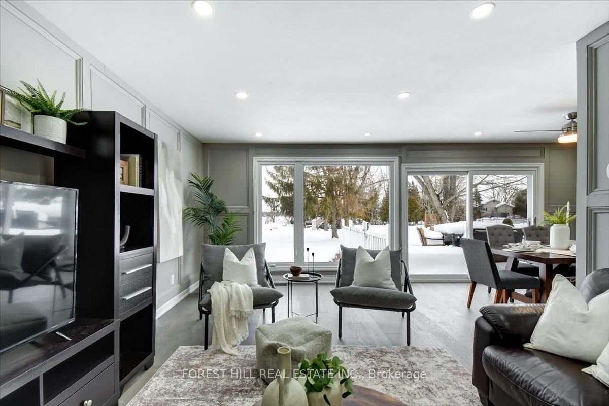 This Stunning and light filled home has many recent upgrades and designer finishes through-out. The Sidesplit on 1143 Connaught Drive has 4 bedrooms, 4 bathrooms, and is located on a 262.72 x 148.23 ft loton .50-1.99 acres in the community of Selwyn . Walk into the impressive grand foyer. Luxurious hardwood floors and wainscotting warms the open concept Living and Dining Rooms that have spectacular views of the Lake, Pool & treed lot as your back drop. The Chef inspired Kitchen Features a Waterfall feature with stone counters and custom cabinetry with eat-in kitchen and built-in pantry & desk and an impressive main floor Laundry Room/mudroom that you can access from the double car garage. Currently used as a Primary Bedroom with Ensuite, this main floor bonus room with fireplace can be a Den, Library or In-law Suite, offering many options. This open concept main floor is framed with picturesque windows that showcase the breathtaking views of the lake, creating a perfect backdrop for everyday living. Entertain on the back deck, perfect for hosting outdoor dinners or lounge around the inviting above ground built in pool. The Spacious back yard is designed for fun and has a fire pit and mature trees that provides a canopy. Walk upstairs to a generous bedroom with ensuite bathroom featuring a glass shower & double vanity sinks with lit mirrors. Two additional spacious bedrooms are on this level that share a full 4-piece bathroom with tiled shower/bath and luxury finishes. Downstairs the bright walkout basement has a comfortable, yet spacious rec. room that has room for a pool table, games room or theatre room and walks out to the beautifully landscaped backyard with interlocking brick. This spectacular home has great curb appeal and allot to offer incl. 386 Km of water access on the Trent Severn. Nearby shopping, restaurants, boating and water fun. Close to the Ennismore general store & Gas, Groceries, Bridgenorth, Lakefield and Peterborough Amenities and is just 1 1/2 hours from Toronto. Endless possibilities for this 3+2 Bedroom home or 5 Bedroom investment. A must see for a family home or a great investment potential.