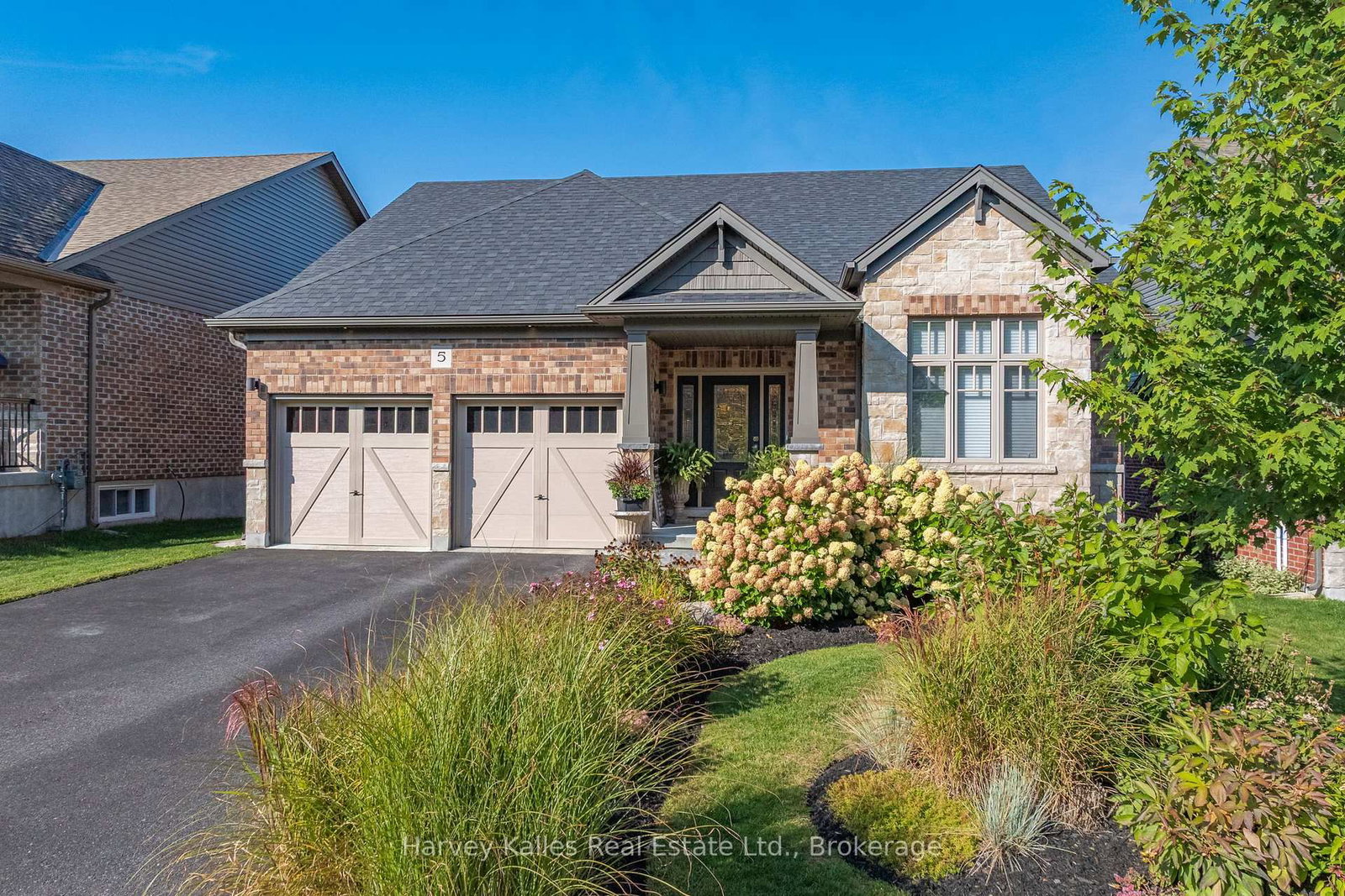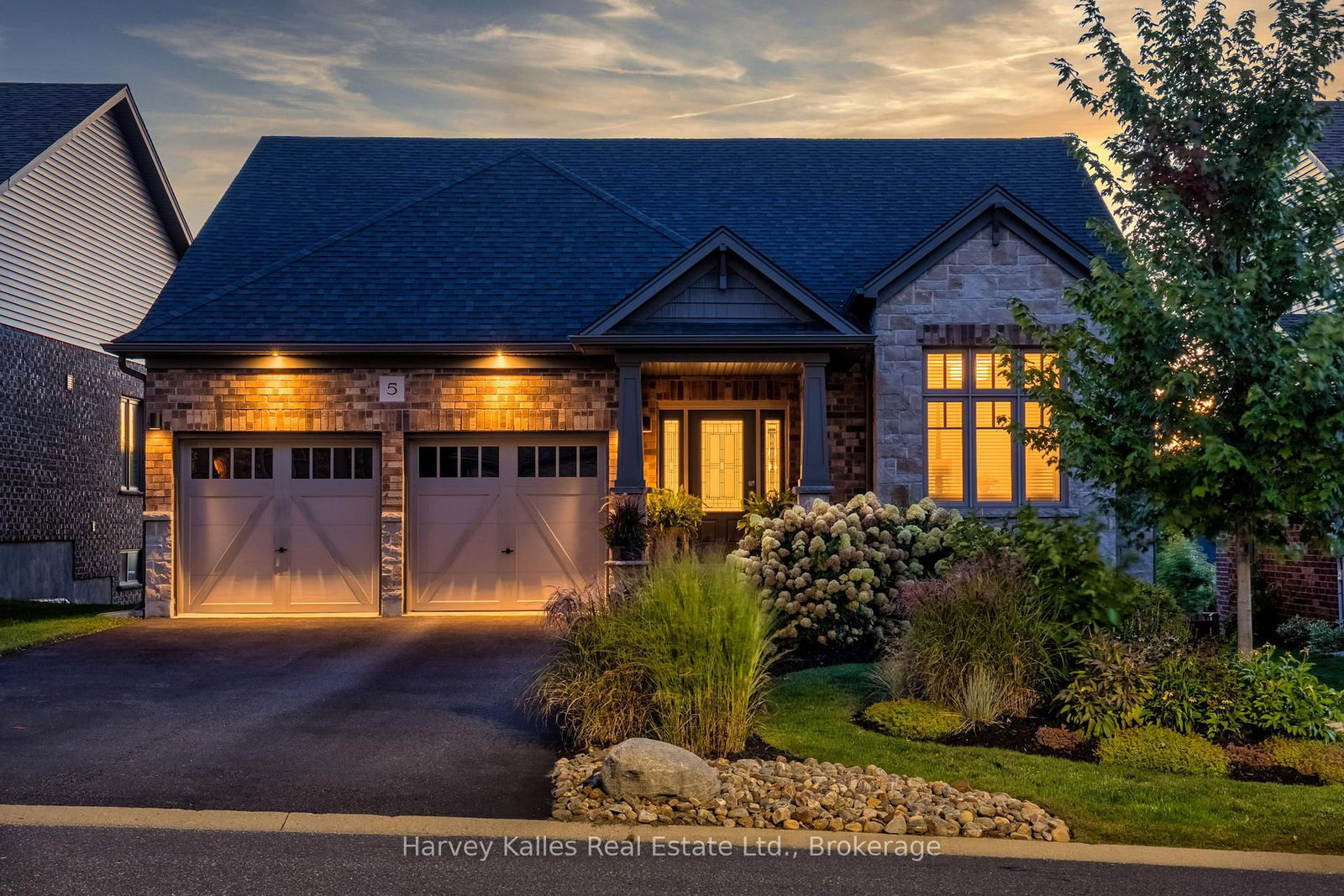 Situated in the highly sought-after Settlers Ridge community, this stunning 2700+sqft bungalow is the perfect blend of style, comfort, and sophistication. The Bungalow on 5 Braeside Crescent has 3 bedrooms, 3 bathrooms, and is located on a 125.6 x 50.5 ft loton < .50 acres in the community of Chaffey . With its family-friendly location close to a park, elementary school, hospital, and just minutes from highways and downtown Huntsville, convenience is at your doorstep. Step inside to discover an open-concept layout designed for both everyday living and effortless entertaining. The heart of the home is the show-stopping kitchen, featuring quartz countertops, a sprawling island, abundant storage, and top-of-the-line GE Café appliances that bring both beauty and performance. The living room exudes warmth with its gas fireplace, while the dining area ideal for hosting family and friends flows seamlessly to a custom deck with sleek glass railings, creating the ultimate indoor-outdoor connection.Freshly painted and finished with engineered hardwood flooring throughout the main level, this home radiates modern elegance. The primary suite is a true retreat with a walk-in closet and 4-piece ensuite, complemented by upgraded vanities and designer lighting. Motorized blinds add a touch of luxury and convenience to the bright and airy spaces.The lower level is equally impressive, boasting a spacious recreation room, bright bedroom, a versatile den or additional bedroom, and a stylish 3-piece bath. From here, walk out to a fabulous outdoor seating area that overlooks your backyard sanctuary. Fully fenced for privacy and beautifully landscaped with mature perennial gardens, a pergola, and a hot tub, this outdoor haven feels like your own private resort. Every detail of this home has been meticulously maintained and thoughtfully upgraded, offering a lifestyle that is as functional as it is luxurious. Move in and experience a sanctuary where every day feels like a getaway.