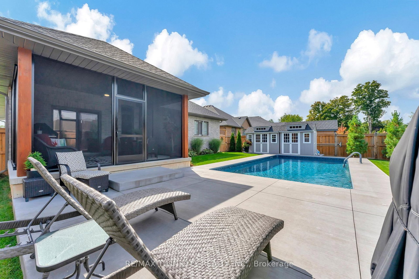 Welcome home to 11 Sycamore Dr. The Bungalow on 11 Sycamore Drive has 3 bedrooms, 3 bathrooms, and is located on a 154.77 x 57.09 ft loton < .50 acres in the community of Port Dover ., Port Dover. Executive bungalow with all the bells and whistles, including a heated salt water pool and screened in sunroom! Built in 2020 this 3+1 bed 3 bath home offers a seamless blend of luxury, comfort, and effortless living just minutes from the beach. Thoughtfully designed with over $222,000 in builder upgrades and more than $200,000 in additional homeowner enhancements, this home showcases impeccable attention to detail throughout. Recent upgrades include new concrete pad and sidewalk (from garage man door to driveway), additional storage shed, new winter pool cover (2025), and now municipal water is connected (2025). The bright, open-concept main floor features premium hardwood flooring, 9-foot California knockdown ceilings with elegant painted accents, and a modern, on-trend palette complemented by craftsman-style doors, trim, and baseboards. At the heart of the home is a stunning great room, complete with a gourmet kitchen boasting a large centre island, deBoer cabinetry, and Frigidaire Gallery appliances, flowing into a spacious living area anchored by a cozy gas fireplace. The primary suite offers a peaceful retreat with a walk-in closet and a luxurious ensuite featuring a custom double vanity and glass shower, while a second bedroom, versatile office or third bedroom, full bath, and convenient laundry with garage access complete the main level. The finished lower level expands your living space with a generous family room and home theatre area (including TV), a fourth bedroom, and an additional full bath, plus ample unfinished space ready for your personal touches-ideal for a gym, workshop, or wine cellar. Outdoors, enjoy a beautifully landscaped backyard oasis highlighted by a heated saltwater pool and a covered, screened-in porch perfect for year-round entertaining and relaxation-delivering the ultimate cottage-style lifestyle without ever leaving home.