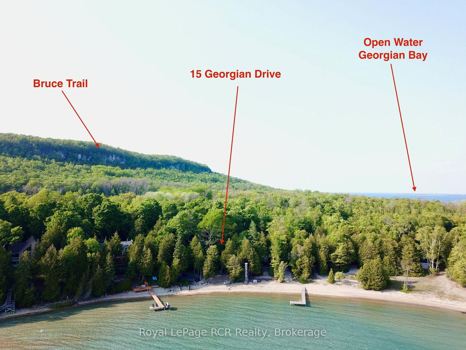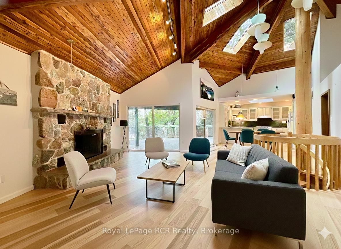 Architecturally UNIQUE, custom 4-SEASON WATERFRONT PROPERTY in EXCLUSIVE JACKSON COVE on Georgian Bay. The Bungalow-Raised on 15 Georgian Drive has 3 bedrooms, 3 bathrooms, and is located on a 228.5 x 85 ft loton .50-1.99 acres in the community of Northern Bruce Peninsula . This HEXAGON-INSPIRED Contemporary Design offers 4 bedrooms, 3 bathrooms, OPEN-CONCEPT LIVING SPACE featuring a CUSTOM VAULTED WOOD CEILING with skylights and simply stunning TIMBER FRAME structure. Natural Stone fireplace in full view of living room, dining room & kitchen areas. Updated MODERN KITCHEN with granite counters, breakfast bar & water views. MASTER with ENSUITE and WALKOUT to private patio. Lower Level walkout with Circular Staircase & Custom Tin Ceilings offers separate living space, including Family Room & 4th bedroom with water views, finished laundry room & 3pc bathroom. HUGE INSULATED STORAGE area with overhead door to waterside, 2,300+ sq ft of living space on two levels. Outside, this 3/4 ACRE property offers ELEVATED DECKING w/COVERED OUTDOOR LIVING SPACE, composite decking w/glass wall railings. BEAUTIFULLY LANDSCAPED w/stone walkways, many mature trees for AMAZING PRIVACY, and 94 FT OF PRIVATE GEORGIAN BAY SHORELINE in Jackson Cove! A CUSTOM HEXAGONAL WATERSIDE DECK w/cabana & HOT TUB. Incredible, crystal-clear waters protected from open Georgian Bay wave allow for seasonal BOAT DOCKING and A SAFE WATERFRONT for all types of WATER ACTIVITIES. Jackson Cove offers STUNNING NIAGARA ESCARPMENT VIEWS, walk to BRUCE TRAIL w/300ft high lookouts above the Cove ... simply no better location on the Bruce Peninsula! 10min drive to Lions Head (shopping, hospital, marina, school etc), 45min to Tobermory, 35 min to Sauble Beach and less than 3hrs from GTA & Southern Ontario. This is truly a SPECIAL WATERFRONT PROPERTY that MUST BE SEEN to truly appreciate.