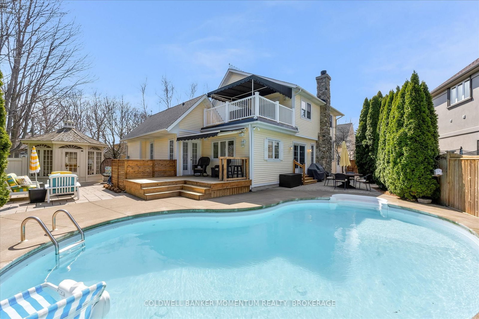 Welcome to 42 Sculler's Way, in Port Dalhousie's prestigious Regatta Heights. The 2-Storey on 42 Sculler's Way has 4 bedrooms, 4 bathrooms, and is located on a 116.41 x 58.99 ft lot in the community of Martindale Pond . Custom-built in 2002 by Pym & Cooper, this executive Victorian home sits on a 59' x 116' low-maintenance lot on a quiet cul-de-sac. A spacious covered veranda leads into a welcoming foyer and a great room featuring a wood-burning fireplace with Ellicottville stone and a hand-carved mantel. This space flows into the kitchen and dining area, where garden doors open to a large patio and inground pool-ideal for entertaining. The main floor features an elegant formal dining room, a home office, and a spacious primary suite with built-in storage and a newly renovated ensuite. This retreat offers direct access to the pool area. Upstairs, a stained-glass window of the Port Dalhousie Lighthouse lights the way to three generous bedrooms. One bedroom includes skylights and a private balcony overlooking the pool, with direct access to a four-piece bathroom. The basement adds significant living space with a large family room, gas fireplace, and two flexible rooms suitable for bedrooms, an office, or in-law accommodations, plus a four-piece bath and laundry area. With nearly 3,800 sq. ft. of finished space, the home is perfect for both family life and hosting guests. The fully fenced, treed backyard is a private oasis with a large patio, inground pool, and a three-season gazebo equipped with hydro and cable-perfect as a "she-shed" or reading retreat. The property includes an attached double-car garage and an interlock driveway with parking for four. Located minutes from the QEW, Fourth Avenue shopping, and Port Dalhousie's beach, marina, schools, and restaurants, this home offers an exceptional lakeside lifestyle.