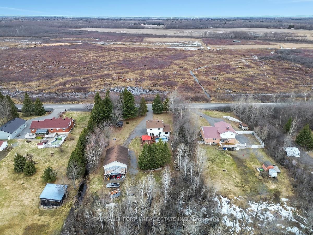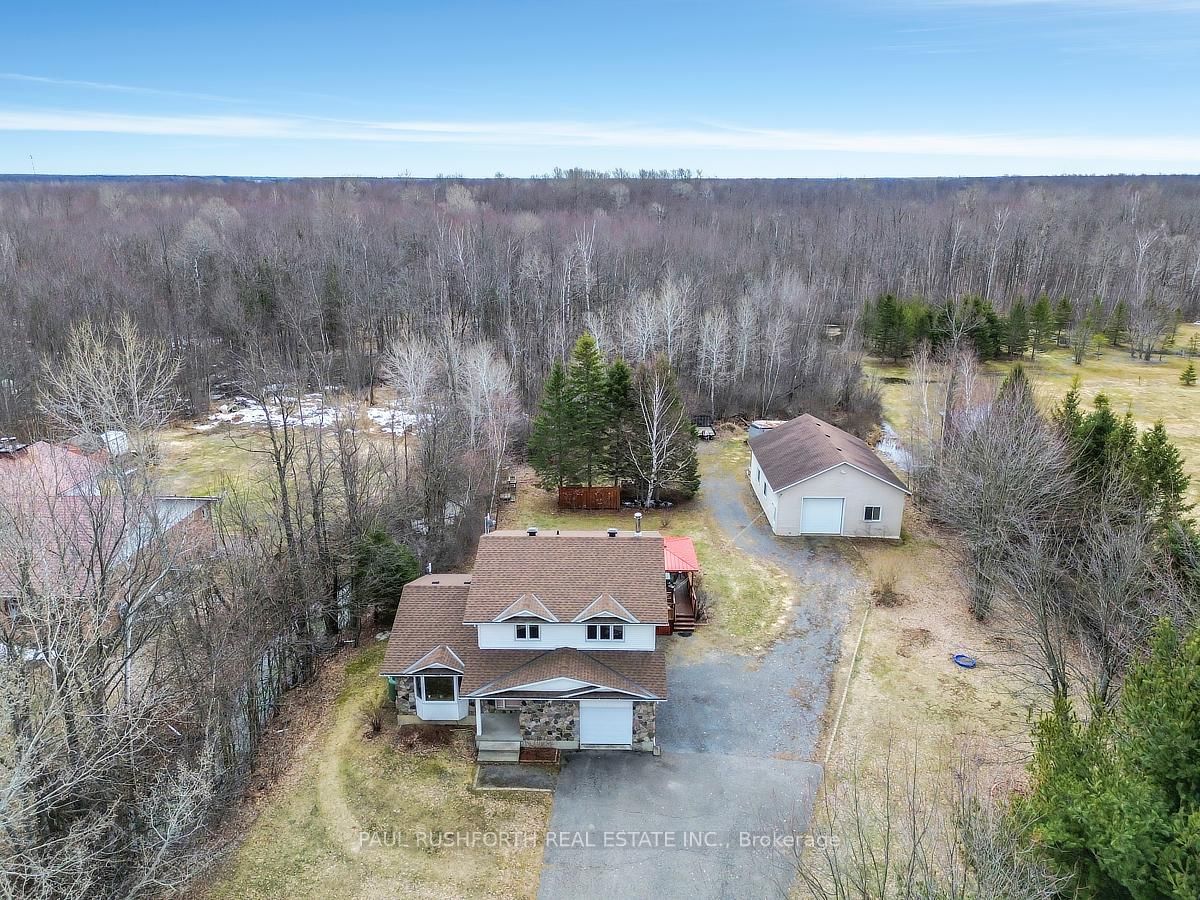 Set on a picturesque 1. The 2-Storey on 2378 Russland Road has 3 bedrooms, 3 bathrooms, and is located on a 499.6 x 155.74 ft lot in the community of Russell Twp .83-acre lot, this beautifully maintained two-storey home with a heated 30x40 detached garage/workshop (ICF built in 2012) offers the perfect blend of comfort, space, and serenity.Step inside to discover a thoughtfully updated interior featuring a stunning renovated kitchen with a large island and breakfast bar-ideal for gathering and entertaining. The adjacent eating area, currently enjoyed as a cozy reading nook, is anchored by a charming wood-burning fireplace and features a patio door that leads directly to the backyard-perfect for seamless indoor-outdoor living. A formal living and dining room with a large bay window fills the space with natural light, while a convenient main floor laundry closet adds everyday practicality.Upstairs, you'll find three spacious bedrooms, including a primary suite with an updated ensuite, along with a fully renovated main bathroom. The fully finished basement expands your living space with a generous rec room and abundant storage options.Outside, the lifestyle truly shines. Enjoy summer days on the expansive deck with an above-ground pool, unwind in the gazebo, or gather around the fire pit under the stars. The property also features a garden area complete with a rainwater watering tower, as well as private trails perfect for four-wheeling, walking, or snowshoeing.Car enthusiasts, hobbyists, or those seeking extra space will love the heated, two-storey detached garage, complete with radiant flooring, a finished upper level currently set up as a games room with a pool table and darts with motorized staircase lift. A large driveway provides easy access to both the home and garage, with 200 amp service in the house and 100 amp in the garage.Surrounded by nature and offering a peaceful, tranquil setting, this exceptional property is the perfect place to call home. Kitchen (2022), Furnace (2025), HWT (2020), Roof (2020), Windows & Patio door (2012), AC (2009), Pool (2015), Pool liner (2025), Pool Heater (2021).