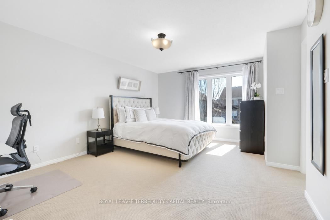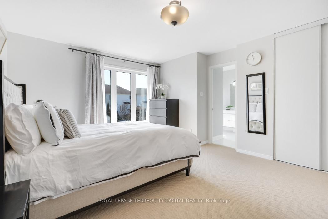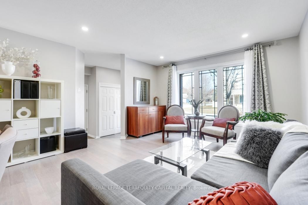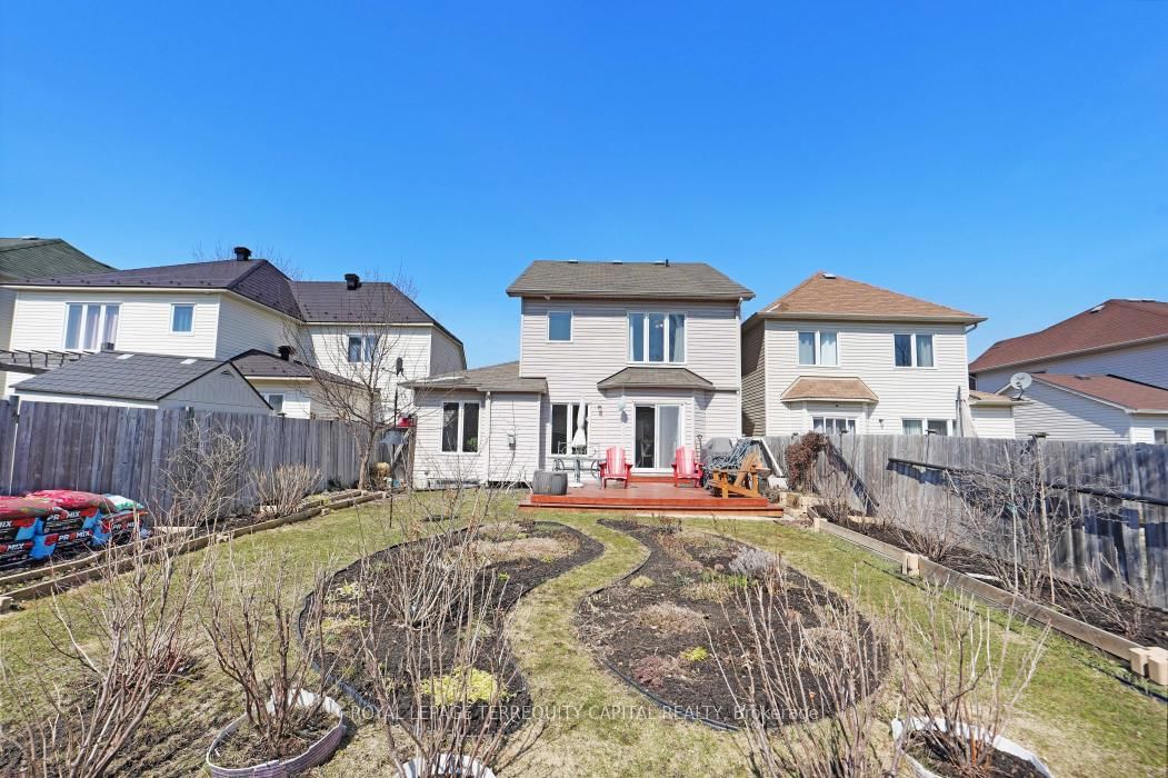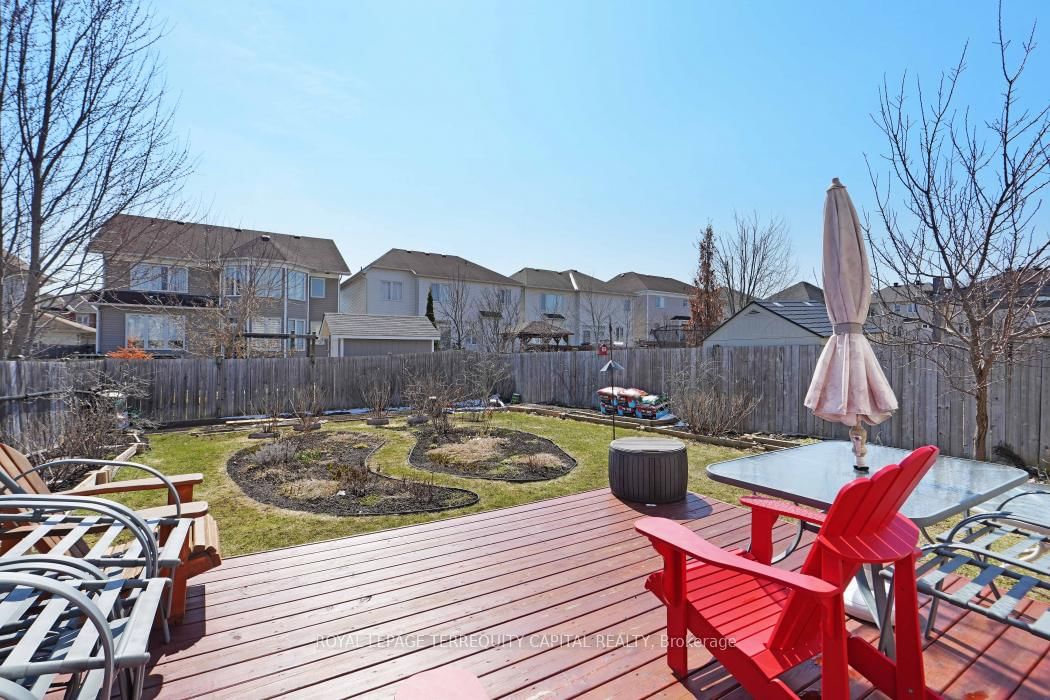 Bright, open-concept home in desirable Morgan's Grant offering approx. The 2-Storey on 1011 Goward Drive has 3 bedrooms, 3 bathrooms, and is located on a 113.39 x 36.09 ft lot in the community of Morgan's Grant/South March . 1,940 sq ft, close to schools, shopping, DND campus, recreation centre, and nature trails. Main floor features living/dining area and spacious family room with gas fireplace open to an updated kitchen with refaced cabinets, quartz countertops, new sink and faucet, island, and large pantry. Upstairs offers a generous primary bedroom with ensuite, two additional bedrooms, and a fully renovated main bath (both second-floor bathrooms updated).Numerous upgrades include furnace and heat pump (2025), central humidifier (2025), Samsung fridge (2026), LG washer/dryer (2020), updated flooring (2020), range hood (2023), new deck (2023), and electronic door lock (2026).Partially finished basement ready for your personal touch. Well maintain garden with flowers, blackberries, raspberries, black current and apricot tree. Move-in ready!