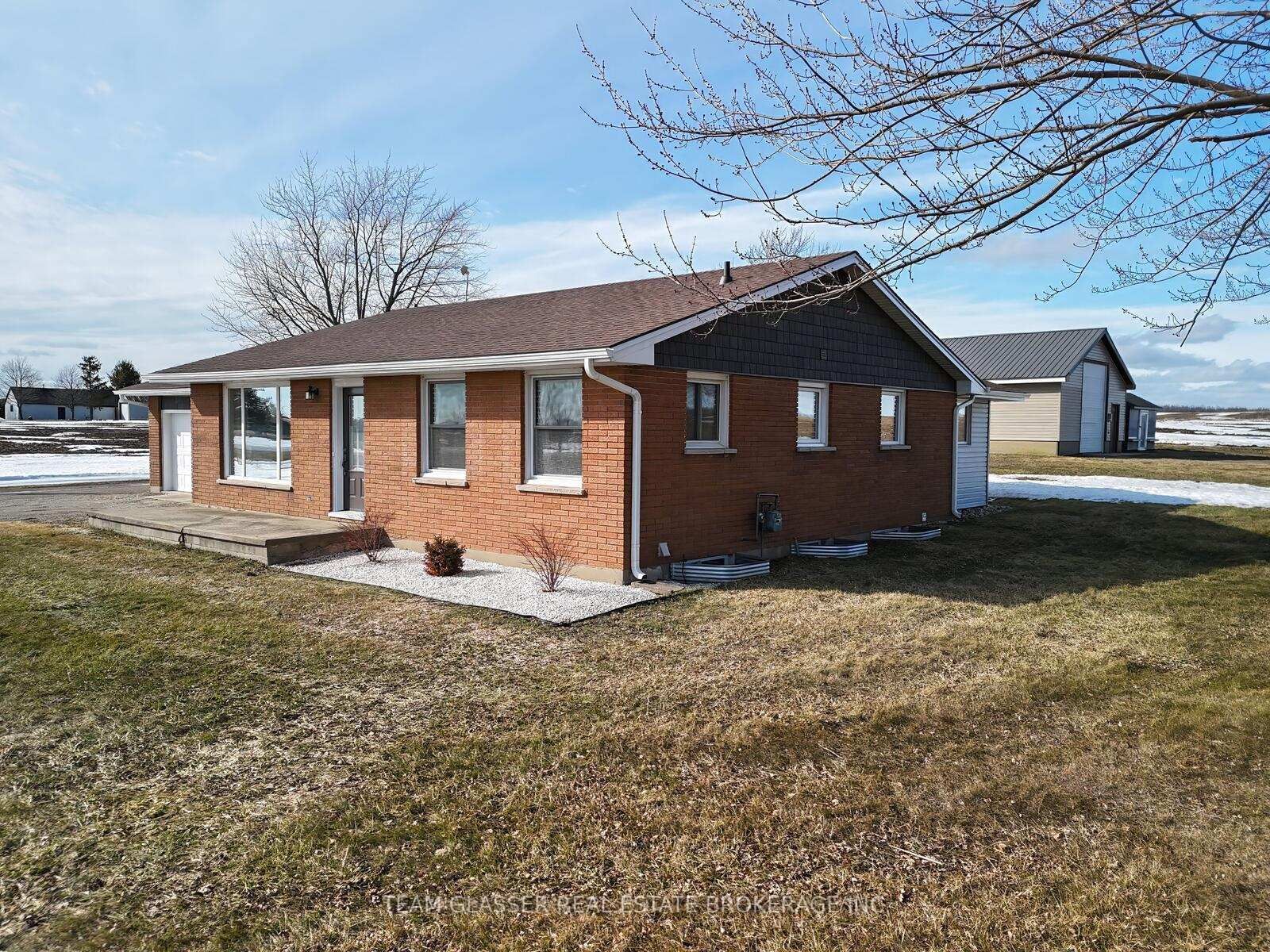 This impressive brick ranch, situated on nearly an acre and surrounded by peaceful farmland, features an attached double garage and a separate shop. The Bungalow on 49728 LYONS LINE Road has 3 bedrooms, 3 bathrooms, and is located on a 183 x 200 ft loton .50-1.99 acres in the community of Lyons .The main floor boasts a spacious country kitchen installed in 2019, complete with a large granite island, built-in oven, overhead range hood, and ample cupboard space. Patio doors lead from the kitchen to a patio overlooking the fields. The layout includes a bright living room, an oversized master bedroom with its own patio access, two additional bedrooms, a renovated four-piece bathroom with granite counters, a two-piece bath off the entry, and main-floor laundry. Key updates include shingles , windows and doors (2023), kitchen (2019), siding in the back of the house (2022) , soffit , fascia and eaves troughs (2022)as well as a furnace and central air system installed (2020).A separate entrance installed through the garage leads to a 2 bedroom granny flat, which was completely renovated from top to bottom in 2023. This unit features its own laundry, a new kitchen with dishwasher, and a four-piece bathroom.The exterior includes a 22x66 shop with two entries, including a 10x12 foot roll-up door. The main shop is heated with an overhead Propane furnace, and is equipped with built-in cupboards, a workbench, and 220-amp service.Don't miss this opportunity to own your private country oasis.