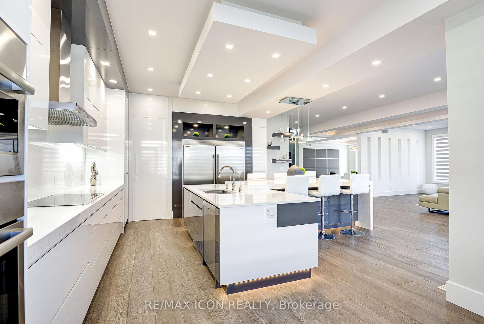 Experience the perfect blend of luxury, space, and lifestyle in this custom-built 2020 residence, offering over 6,400SF of beautifully finished living space on a premium 10,000+SF lot in coveted Waterloo West. The 2-Storey on 685 Meadowsweet Avenue has 5 bedrooms, 5 bathrooms, and is located on a 150.11 x 63.78 ft lot in the community of . Surrounded by approx. 700acres of conservation lands and hundreds of km of trails, this exceptional home is filled with natural light and offers a rare sense of openness and serenity.A grand 19ft foyer welcomes you with a striking staircase and glass railing, setting the tone for the elegance throughout. The main floor features a bright private office, a formal dining room for memorable gatherings, and a welcoming living room anchored by a gas fireplace covered in 5'x10' floor-to-ceiling porcelain tile feature from Spanish-renowned Porcelanosa. Expansive windows and ambient lighting create a sophisticated yet inviting atmosphere. At the heart of the home is a chef-inspired kitchen with floor-to-ceiling cabinetry, built-in appliances, a walk-in pantry, and 2 oversized quartz islands with waterfall edges and breakfast bar seating.Upstairs, 4 spacious bedrooms each have a walk-in closet. The primary suite spans approx. 400SF and includes a 250SF ensuite plus separate his-and-hers walk-in closets. 2 bedrooms share a Jack & Jill bath with a bathtub and built-in shower, while the remaining bathrooms offer glass-enclosed showers. A second-floor office adds flexibility as a potential 6th bedroom.The finished basement (1,600+SF) offers a warm rec room with an electric fireplace, an additional bedroom with walk-in-closet, a full bath with shower, 2 finished cold rooms, and 2 generous storage spaces. Outside, the fenced backyard lined with evergreens provides for a peaceful retreat with room for a pool, while the exposed concrete patio supports seamless indoor/outdoor living. A double-car garage in addition to driveway parking for 6 vehicles completes this remarkable home near schools, University of Waterloo, Boardwalk, tech hub, medical clinics, & more too.