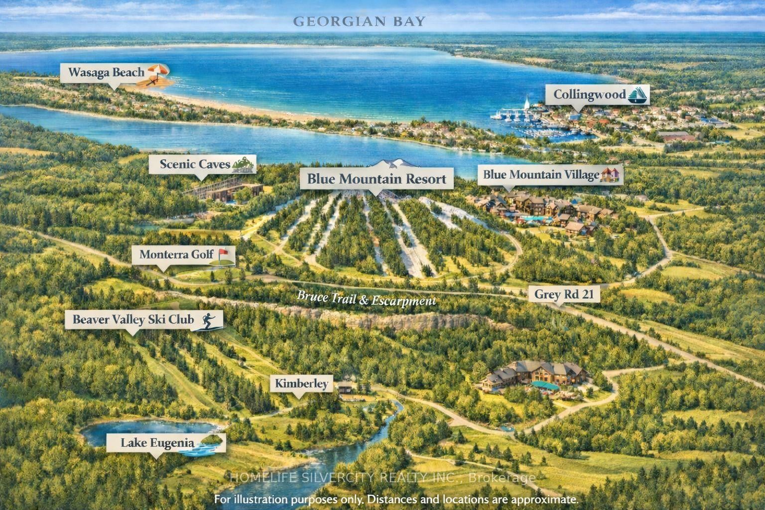 Luxury Nature Retreat | Beaver Valley Skiing | Forest Privacy | Income Potential . The Bungalow-Raised on 282 Bowles Bluff Road has 3 bedrooms, 2 bathrooms, and is located on a 227 x 199 ft lot in the community of Grey Highlands .Wake up to nothing but trees. Less than a 5-minute drive to the top of the Beaver Valley ski slopes. Step outside to adventure in every season. This beautifully maintained, fully furnished 4-bedroom Viceroy chalet sits on a stunning treed lot in one of Ontario's most desirable lifestyle corridors. This is where forest privacy, year-round recreation, and income potential come together in one remarkable property. The open-concept main floor features soaring cathedral ceilings, a classic wood-burning fireplace, and expansive windows framing uninterrupted forest views. Three spacious bedrooms on the main floor, a 4-piece bathroom, comfortable family room, functional kitchen, and convenient main-floor laundry make everyday living effortless. The bright lower level offers a fourth bedroom, recreation room, second family room, 3-piece bathroom, and generous storage for all your gear. Two decks extend the living space outdoors, perfect for morning coffee among the trees, summer BBQs, cozy firepit nights under the stars, and simply exhaling from the week. Turnkey investment opportunity with strong guest ratings, established hosting history, and income generation potential. Beyond your doorstep, Grey Highlands delivers year-round adventure. Hike or bike the legendary Bruce Trail. Explore the beauty of Eugenia Falls. Ski and snowboard at Beaver Valley Ski Club or Blue Mountain. This chalet offers the demand, location, and layout guests dream about...every single month of the year. Additional Features & Inclusions: Fully furnished turnkey opportunity. New A/C (2024) and new furnace (rental, 2024). Driveway gravel updated (2022). Registered with the Grey Highlands Short-Term Rental Program. Smart features include app-monitored propane tank and water cistern, smart thermostat, exterior lights and cameras, and smart doorbell. Alarm-ready home.
