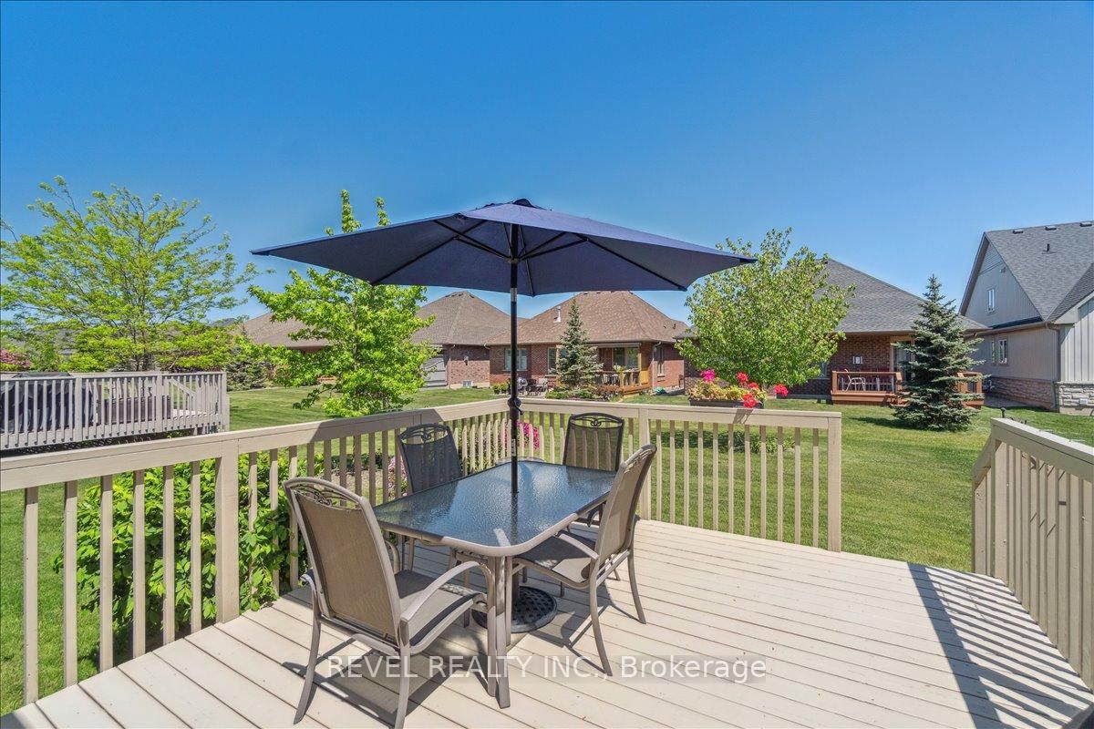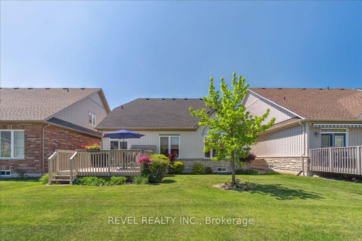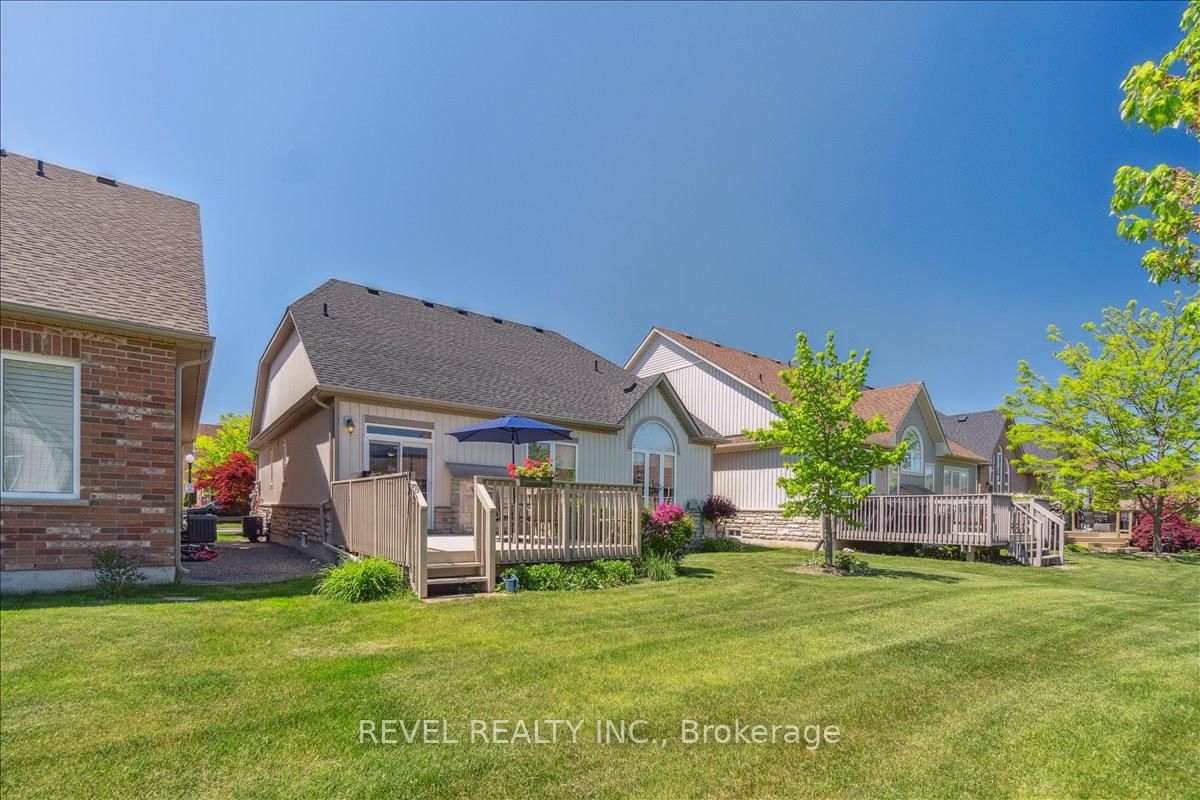 Welcome to this exceptional 1,370 sq ft bungalow featuring 2 bedrooms, located in one of Niagara's premier active adult lifestyle communities by Luchetta Homes. The Bungalow on 68 Galloway Trail has 2 bedrooms, 2 bathrooms, and is located on a 129 x 46 ft lot in the community of Hwy 406/Welland . Ideally situated near the Welland River & Canal, this home offers both convenience and a picturesque setting. Great curb appeal on this 46 x 130 ft lot, complete with a double car driveway and meticulously manicured landscaping. Step inside to a spacious foyer that flows seamlessly into the kitchen, offering ample space for all your culinary needs. The kitchen is beautifully appointed with granite countertops, a center island, decorative backsplash, latte cabinetry, stainless steel appliances, pot lights, and an open-concept layout overlooking the dining and living areas with a cozy fireplace. The spacious primary bedroom is inviting, featuring high ceilings, a large walk-in closet, and a 3-piece ensuite with a glass shower and granite vanity. The second bedroom offers direct access to a 4-pc bathroom, ideal for guests. This home has also been recently painted and features newer flooring in the bedrooms, adding a fresh, modern touch throughout. The main floor includes a generous laundry room with direct access to the garage for added convenience. The lower level offers a blank canvas, providing ample space for customization and additional storage to suit your needs. Step outside to a tranquil backyard retreat with a deck, perfect for relaxing and enjoying the peaceful surroundings. Residents of this exceptional community enjoy access to a variety of amenities, with a monthly fee of $300 that includes grass cutting, snow removal, Clubhouse with indoor pool, hot tub, sauna, outdoor tennis courts, library, and gym, along with grass cutting, snow removal, and a monitored alarm system. Updates include: A/C & Furnace (2021), Roof (2019), Water Softener (2022).