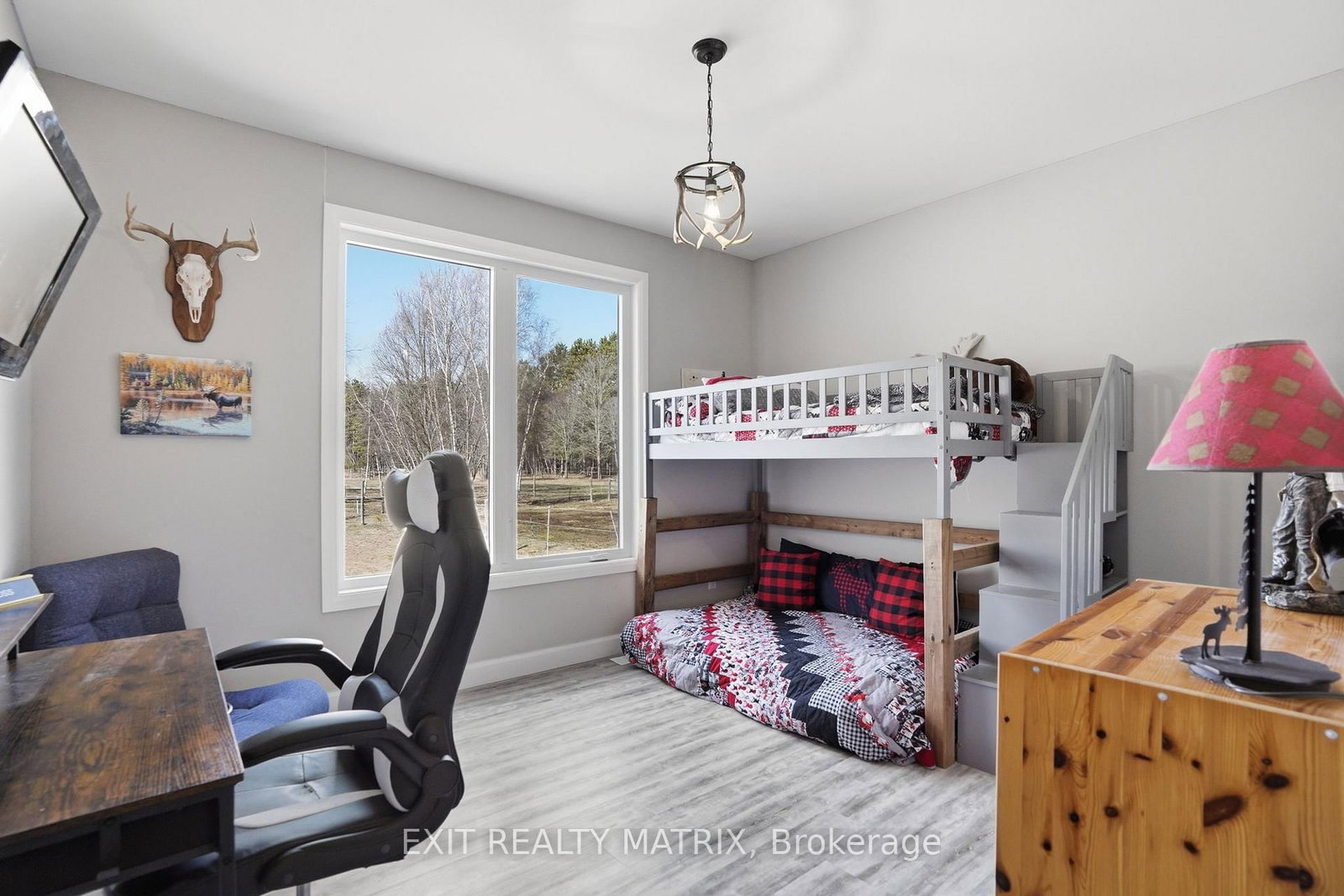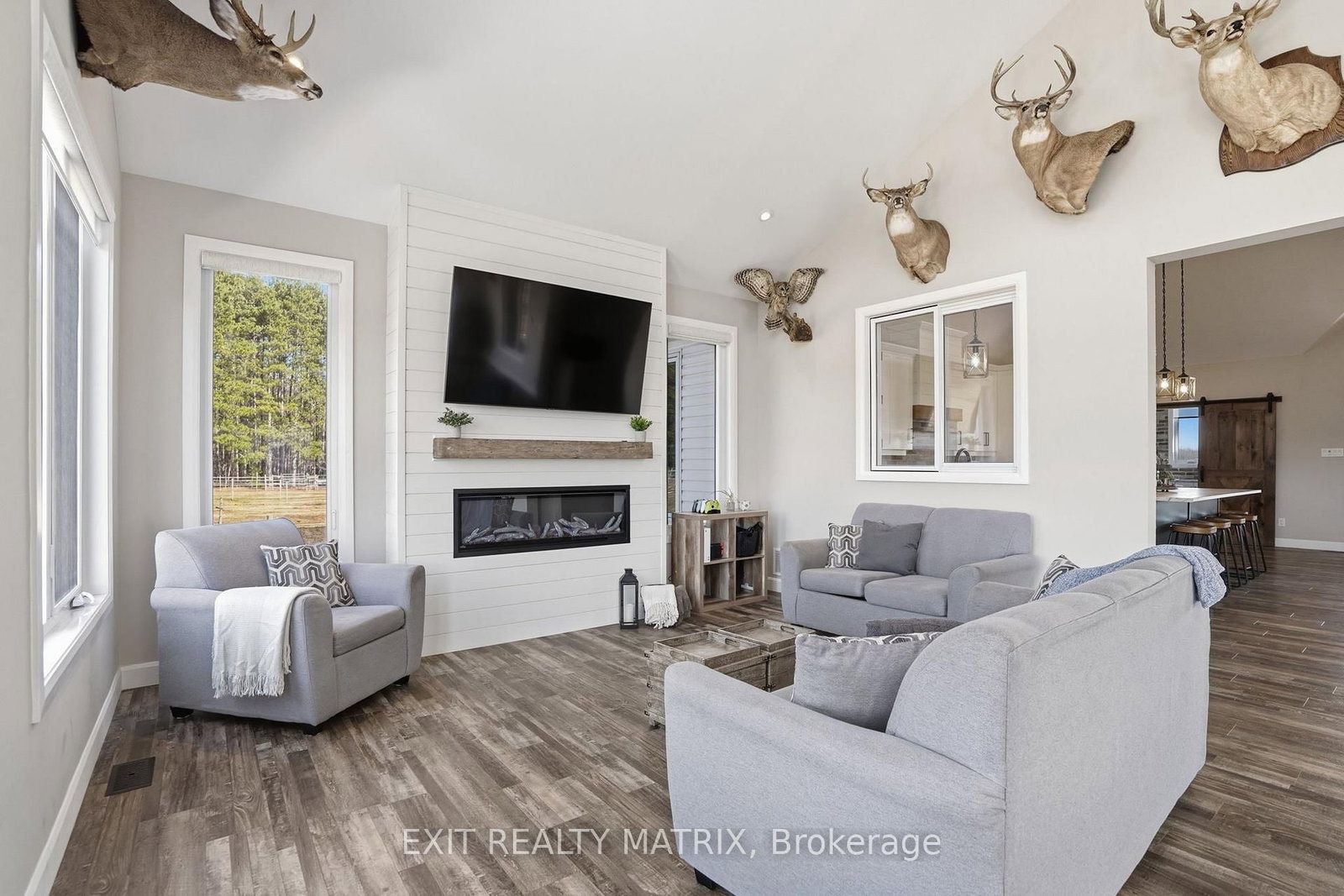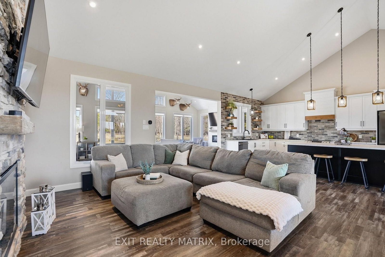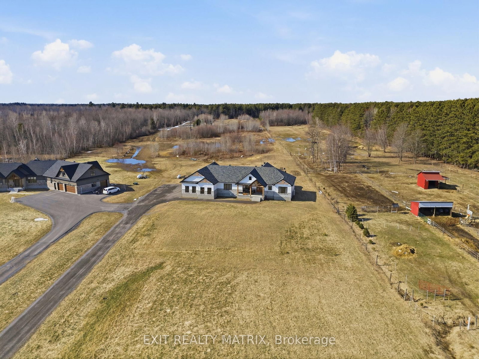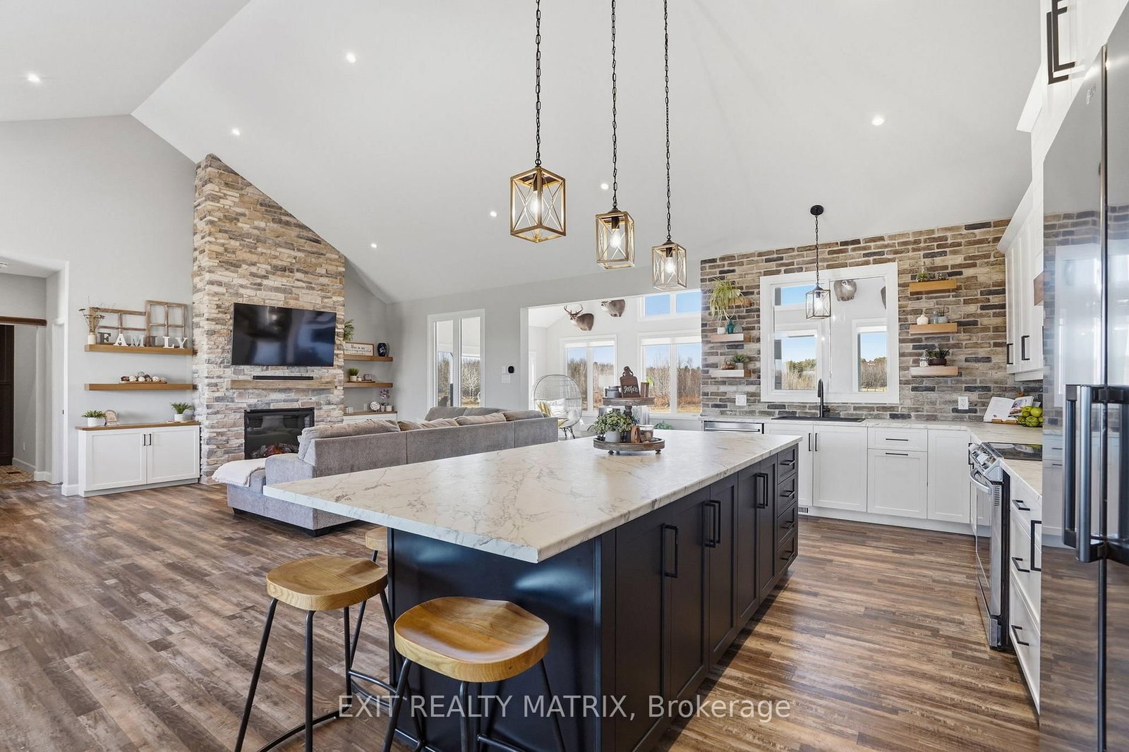 OPEN HOUSE SUN Apr 12, 10-12pm. The Bungalow on 1584 Calypso Street has 3 bedrooms, 3 bathrooms, and is located in the community of The Nation Municipality . Set on just over 10 acres and backing directly onto the breathtaking Larose Forest, this newly built bungalow offers the perfect blend of luxury, privacy, and lifestyle. Located in a peaceful country setting just minutes from all amenities and only a 5-minute drive to the highway, this remarkable property also features a private pond, nearby ATV and snowmobile trails, and approximately 6 acres of tiled drainage. The home's grand curb appeal is highlighted by a stunning rustic front porch with warm wood accents and a welcoming sitting area. Step through the double doors into a spacious, elegant foyer that immediately impresses. The main level showcases a bright, open-concept design ideal for both everyday living and entertaining. The kitchen is a true showpiece, featuring a large center island with seating for six, an eye-catching accent wall, and a walk-in pantry hidden behind a barn door-complete with additional cabinetry, counter space, and its own sink. The dining area is filled with natural light from oversized windows, while the living room boasts a statement fireplace with custom rustic built-ins. A beautiful sunroom with a wall of windows and a cozy family room with a second fireplace provide multiple inviting living spaces. The primary suite offers a luxurious retreat with a walk-in closet and modern 5-piece ensuite. Two additional bedrooms each feature walk-in closets and share a stylish 4-piece bathroom. A functional laundry room with ample cabinetry and a mudroom with walk-in closet complete the main floor. The fully finished lower level is bright and spacious, offering radiant in-floor heating, a dedicated office space, two additional bedrooms with walk-in closets, a 3-piece bathroom, and a rough-in for a future kitchen-ideal for multi-generational living. The oversized 3-car garage includes a propane heater, Generac generator, abundant storage, and a bonus room. A rare opportunity to own a truly stunning country estate.