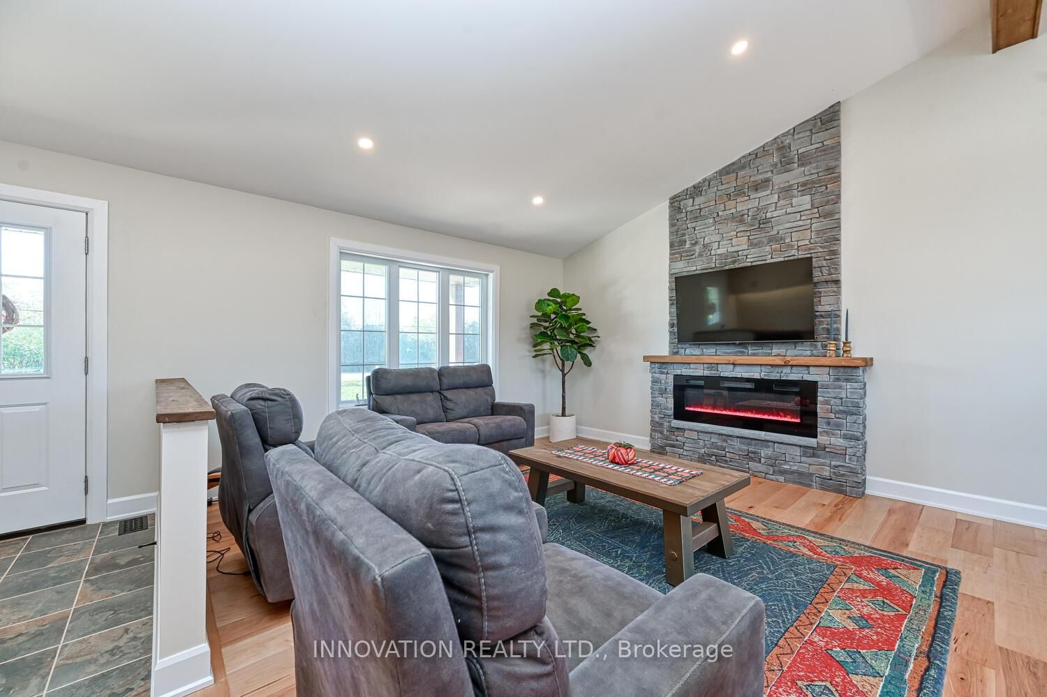 • Living Room: Electric Fireplace, hardwood floor, Open Concept
