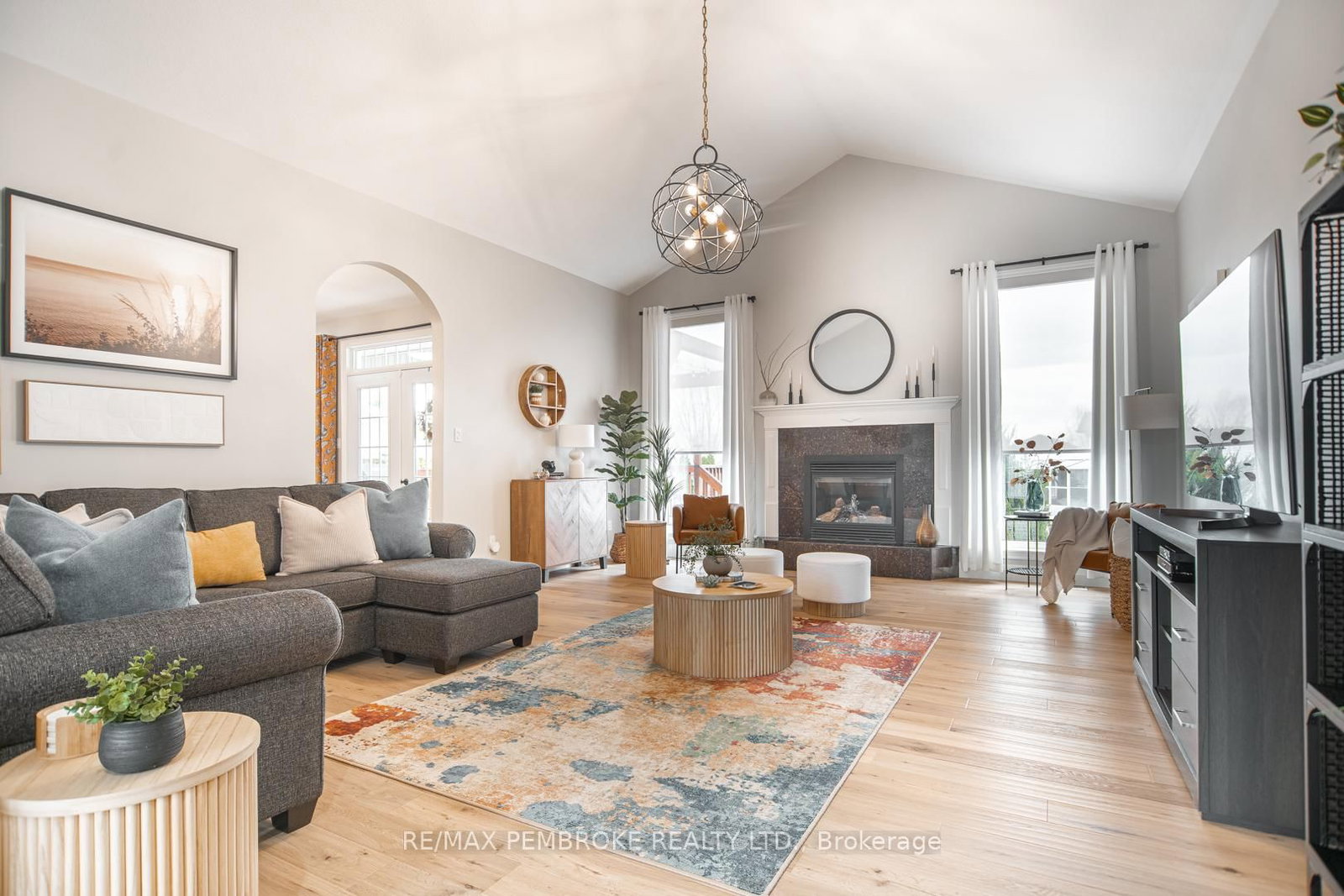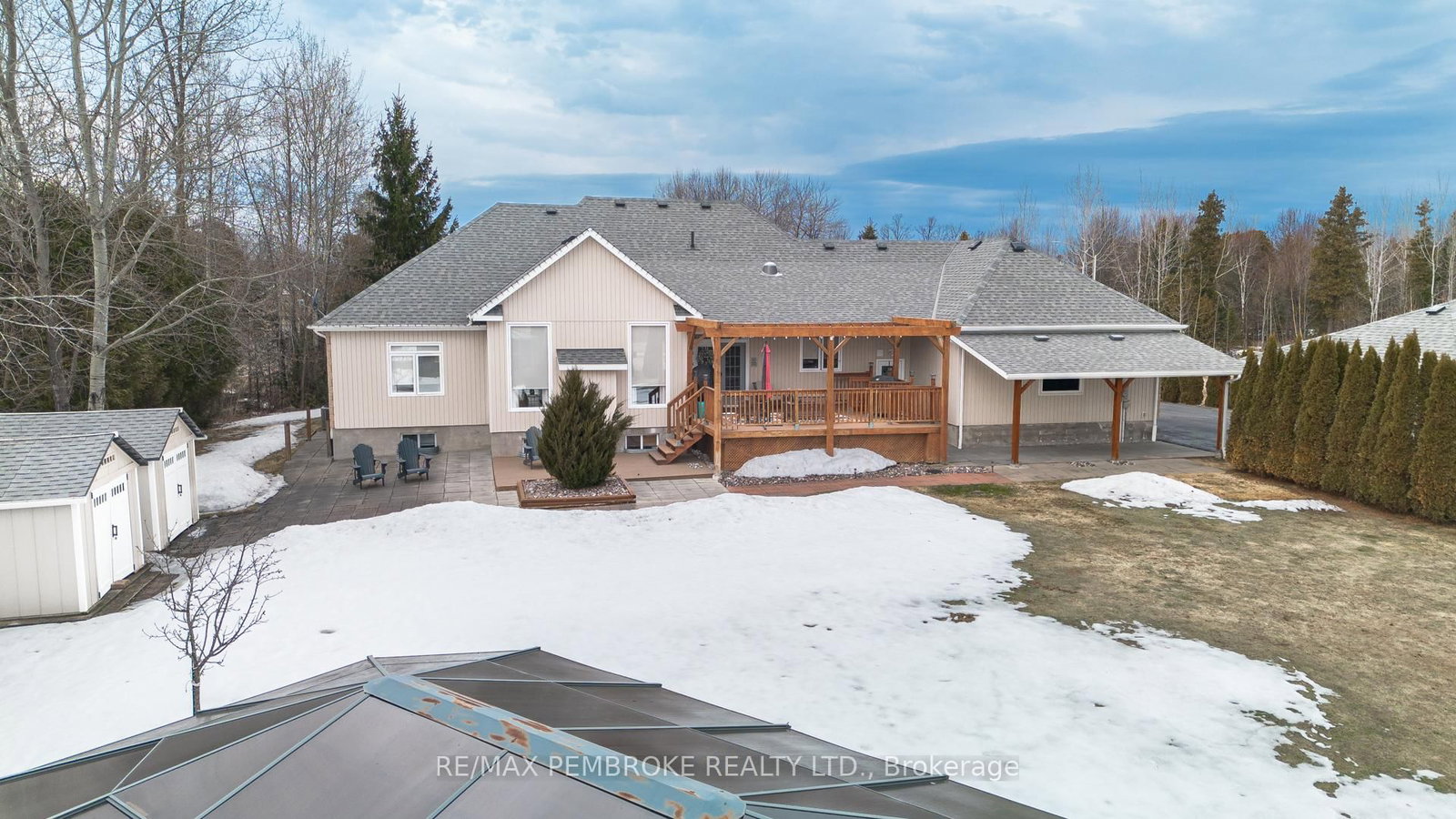 Stunning executive 3+1 bedroom, 3 bathroom home set in a prestigious neighbourhood ideally located between Petawawa and Pembroke, offering breathtaking views of the Ottawa River and deeded water access-perfect for kayaking, paddleboarding, and seadooing. The Bungalow on 20 Mallard Street has 3 bedrooms, 3 bathrooms, and is located on a 242.78 x 91.86 ft lot in the community of Laurentian Valley . This stately, meticulously maintained home boasts impressive high ceilings. The spectacular living room offers a gas fireplace and vaulted ceiling that creates a warm and inviting focal point. The bright open kitchen features remote-controlled blinds (also in living room) quartz counters, all appliances and flows seamlessly into the main living space-ideal for both everyday living and entertaining.The spacious primary suite offers a private retreat complete with a walk through closet and ensuite bath. The main bathroom has been tastefully updated and includes a jet tub/shower combo.The finished lower level expands your living space with a fourth bedroom, additional bathroom, large family room, theatre room and a dedicated gym area-perfect for growing families, guests, or multi-functional living. Car enthusiasts and hobbyists will appreciate the attached insulated triple car garage with hot and cold water, along with a convenient double carport. Step outside to a large back deck or hang out in the gazebo, perfect for relaxing or hosting, surrounded by a beautifully maintained yard featuring a patio and full irrigation system installed in 2024.This immaculate home has been lovingly cared for and extensively updated, including shingles on the house (2021), carport shingles (2025), water softener (2022), hot water tank (2022), duct cleaning (2022), well pump (2024), gas furnace (2024), and updated main floor window panes (2022), along with new lighting and fresh paint throughout. A rare opportunity to own a turn-key home with upscale features, exceptional maintenance, and deeded access to the Ottawa River in one of the area's most sought-after communities.