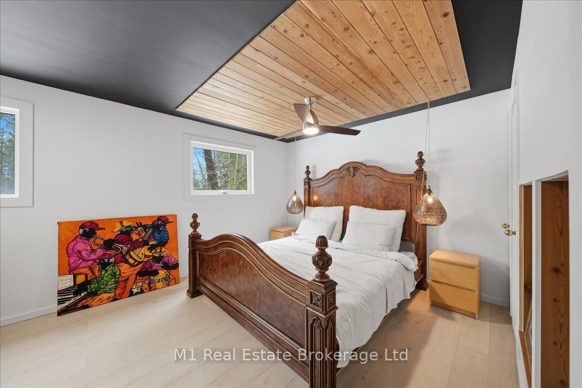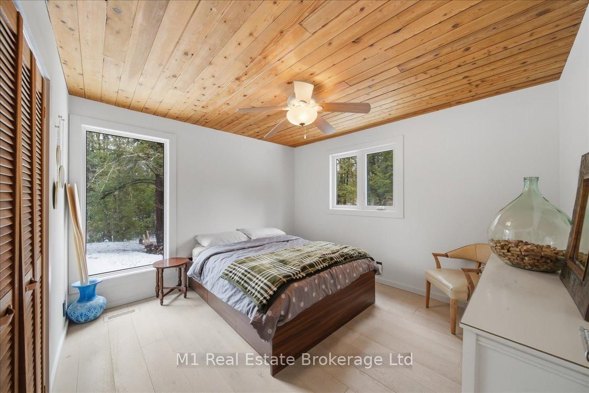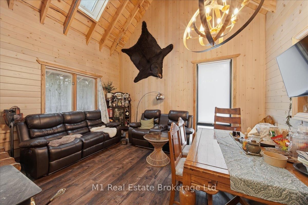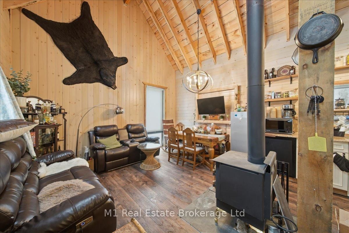 Tucked away in a serene, private setting on just under 2 acres, this beautifully renovated artistic retreat offers a rare blend of character, creativity and versatility. The 1 1/2 Storey on 1460 Peterson Road has 3 bedrooms, 2 bathrooms, and is located on a 177 x 577.14 ft lot in the community of Draper . The main house has been thoughtfully updated, showcasing a seamless fusion of modern finishes and timeless design with 2 stylish bedrooms and a bathroom. Sunlight pours through expansive windows, illuminating open-concept living spaces, curated details, and inspired touches that make every room feel like a work of art. At the heart of the home, a stylish kitchen flows effortlessly into the inviting living and dining areas - perfect for both quiet evenings and vibrant gatherings. This turn key home recently had 250k in upgrades ie, new flooring, new kitchen, exterior landscaping with granite patios/walkways, a brand new drilled well and new oversized septic, the property is close to snowmobile trails, public beach at Prospect Lake and only 10 minutes to all the amenities in Bracebridge. Adding to the property is a second driveway that accesses the property's secondary cabin that has its own kitchen, bathroom, bedroom and parking that would be fantastic for family/friends or extra rental income. Surrounded by lush greenery and natural beauty, the property provides an exceptional sense of seculsion without sacrificing convenience. Whether you're seeking a peaceful escape, a creative sanctuary, or a multi- functional living opportunity, this is a one-of-a-kind property that delivers endless potential.