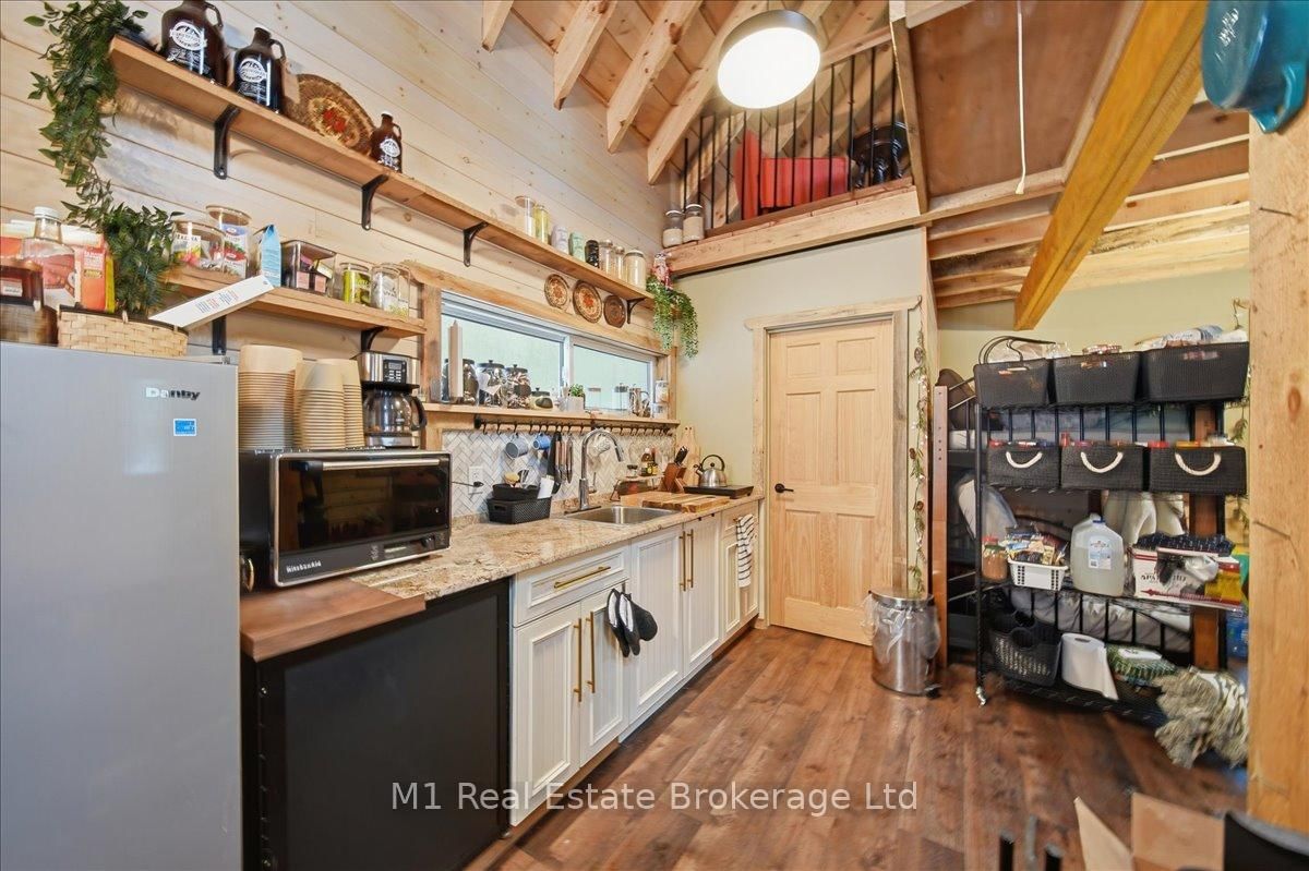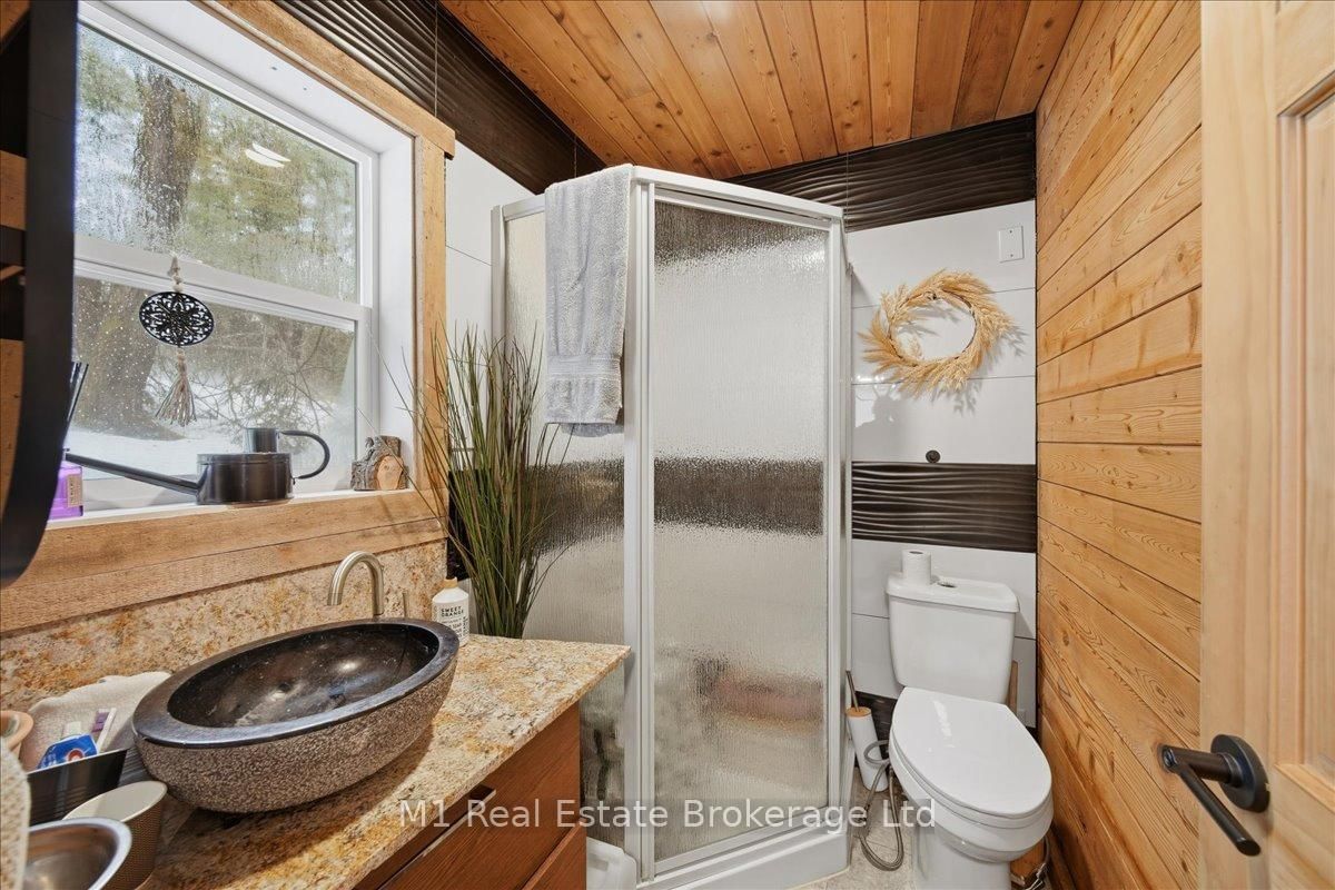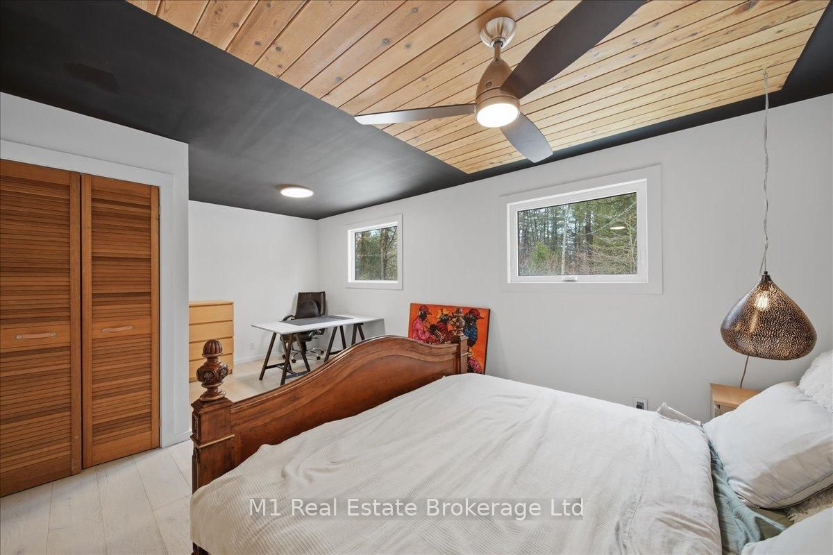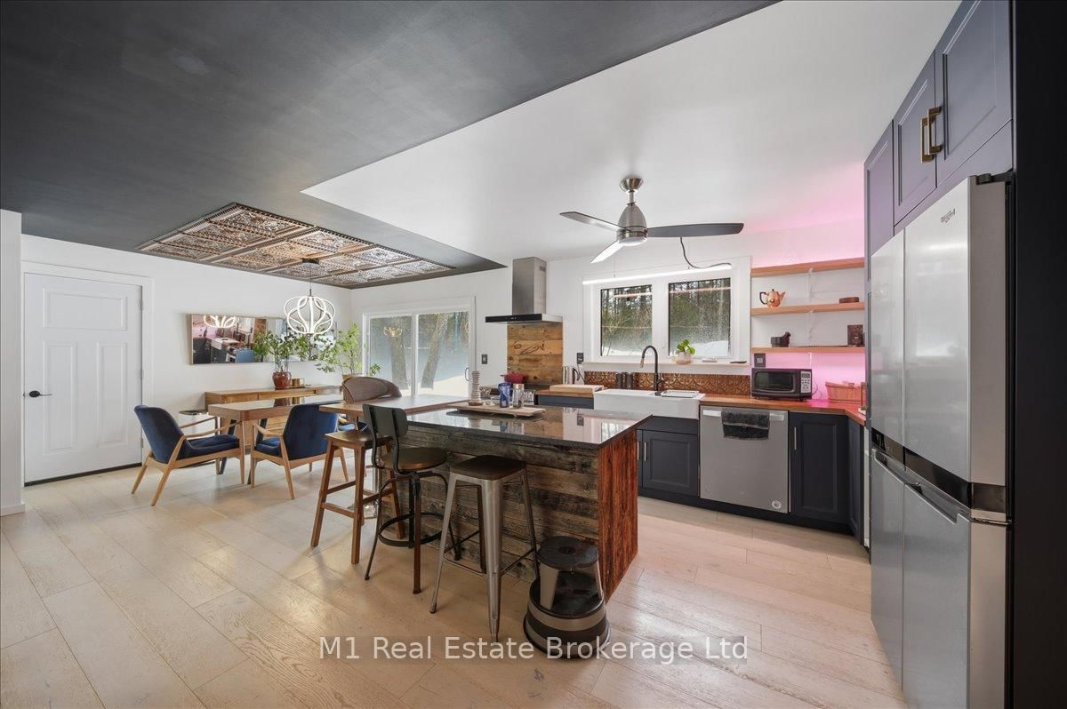 Tucked away in a serene, private setting on just under 2 acres, this beautifully renovated artistic retreat offers a rare blend of character, creativity and versatility. The 1 1/2 Storey on 1460 Peterson Road has 3 bedrooms, 2 bathrooms, and is located on a 177 x 577.14 ft lot in the community of Draper . The main house has been thoughtfully updated, showcasing a seamless fusion of modern finishes and timeless design with 2 stylish bedrooms and a bathroom. Sunlight pours through expansive windows, illuminating open-concept living spaces, curated details, and inspired touches that make every room feel like a work of art. At the heart of the home, a stylish kitchen flows effortlessly into the inviting living and dining areas - perfect for both quiet evenings and vibrant gatherings. This turn key home recently had 250k in upgrades ie, new flooring, new kitchen, exterior landscaping with granite patios/walkways, a brand new drilled well and new oversized septic, the property is close to snowmobile trails, public beach at Prospect Lake and only 10 minutes to all the amenities in Bracebridge. Adding to the property is a second driveway that accesses the property's secondary cabin that has its own kitchen, bathroom, bedroom and parking that would be fantastic for family/friends or extra rental income. Surrounded by lush greenery and natural beauty, the property provides an exceptional sense of seculsion without sacrificing convenience. Whether you're seeking a peaceful escape, a creative sanctuary, or a multi- functional living opportunity, this is a one-of-a-kind property that delivers endless potential.