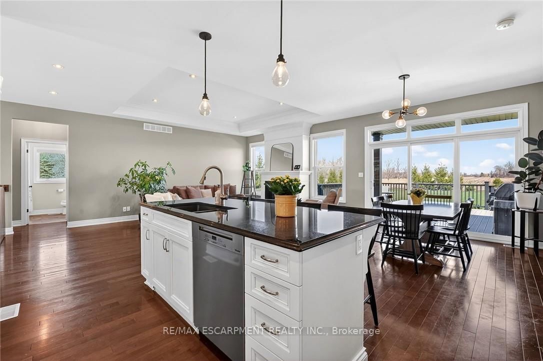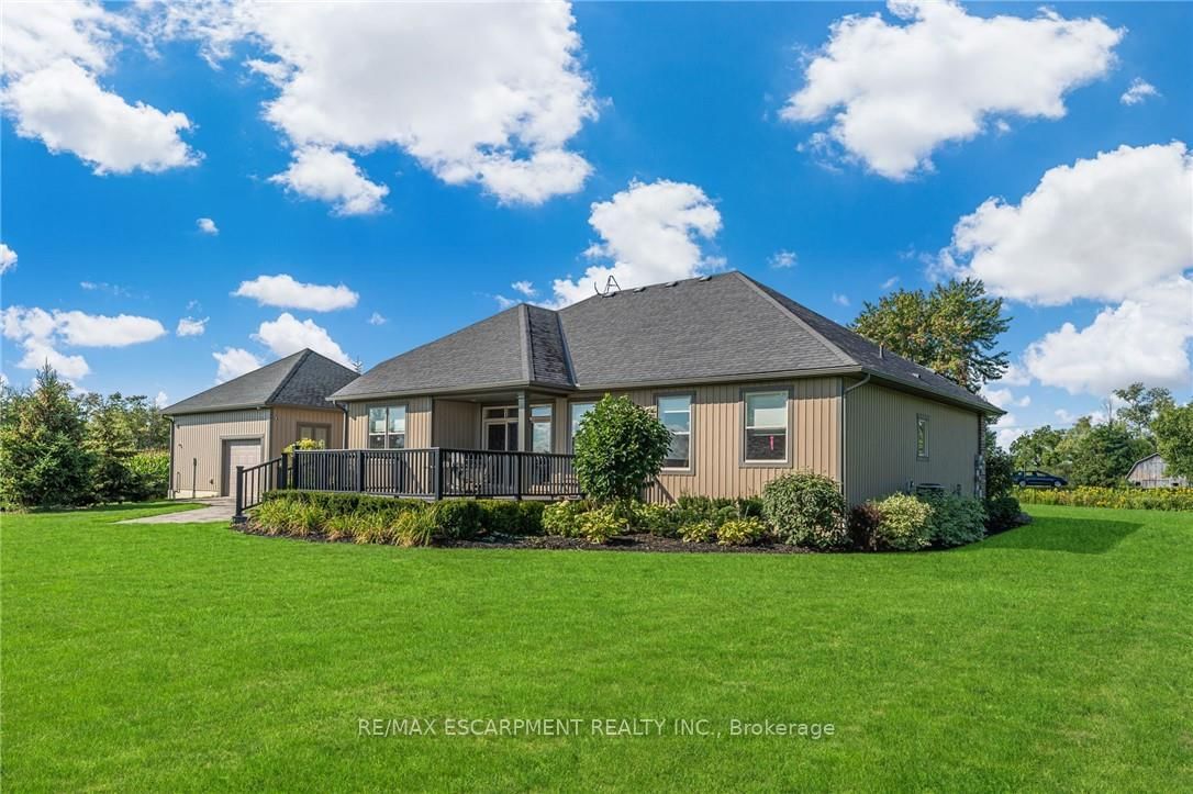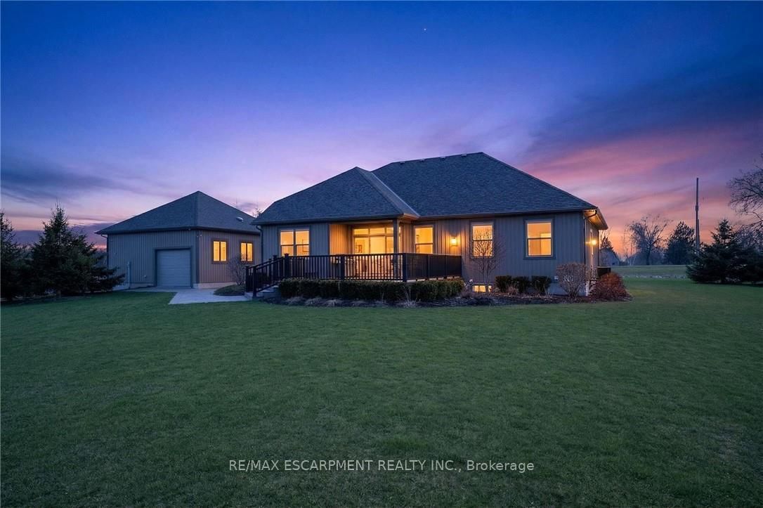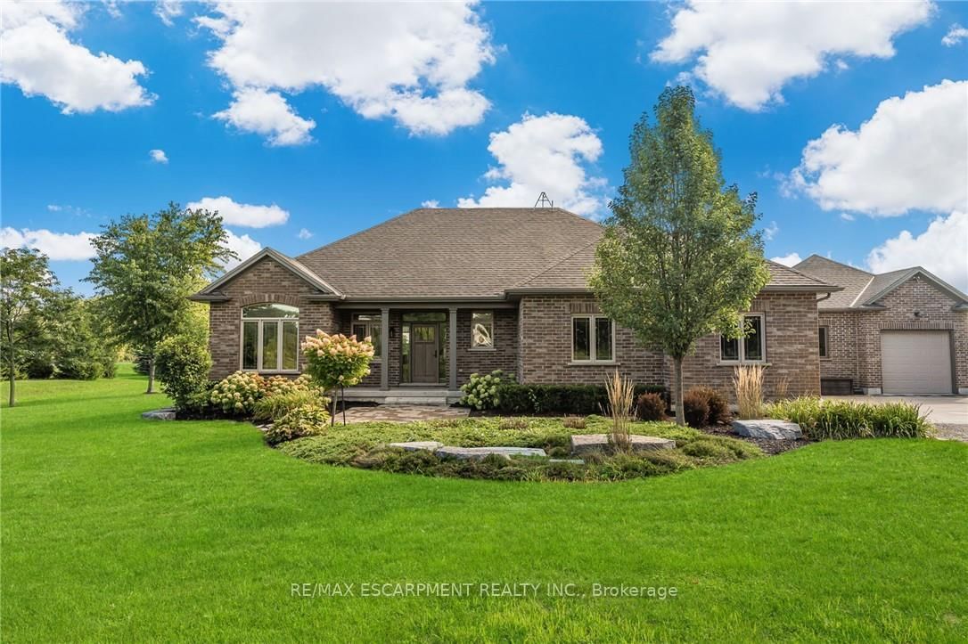 There are homes you walk into, and then there are properties that stop you before you even reach the front door. The Bungalow on 342 Hutchinson Road has 3 bedrooms, 4 bathrooms, and is located on a 327.97 x 206.13 ft loton .50-1.99 acres in the community of Dunnville . This 1,617 sqft bungalow showcases a timeless brick façade w/ over 3,000 sqft finished living space on a mature1.5-acre country lot. A rare 24'x24' detached shop w/ spray foam insulation & in-floor heat delivers the bonus space buyers search years to find. Properties like this aren't easily replicated - everything is already here. Inside, hardwood flooring runs throughout the main level, anchored by a kitchen designed for those who love to cook & entertain. Featuring a gas cooktop, wall oven, granite countertops, ceiling-height white cabinetry w/ under-cabinet lighting, &a large island - this space is as functional as it is striking. The living room offers a gas fireplace & classic white mantel, complemented by a tray ceiling w/ crown moulding. The dining area leads to a covered composite deck w/sweeping views of open farmland. The primary suite is complete w/ a custom walk-in closet & a glass-enclosed ensuite featuring a rain head shower, spray bar, built-in bench, & quartz vanity. 2 additional bedrooms - including one w/ a vaulted ceiling & arched window - are served by a stylish 4-piece bath w/ quartz counters. A mudroom w/built-in storage & a 2-piece powder room adds everyday convenience. The lower level deserves its own spotlight. A sprawling rec room w/ pot lights & a fully equipped wet bar creates the ultimate entertaining space. A separate lounge w/ a stacked stone gas fireplace offers a cozy retreat. W/ a fourth bedroom, 3-piece bath w/ glass shower, spacious laundry room w/ custom cabinetry & oversized sink, & ample storage, this level functions as a complete second living space. Outdoors, the composite deck offers covered & open-air living, stepping down to interlock walkways & a beautifully maintained lot framed by mature trees & uninterrupted farmland views. This is a one-of-a-kind property that truly needs to be experienced in person.
