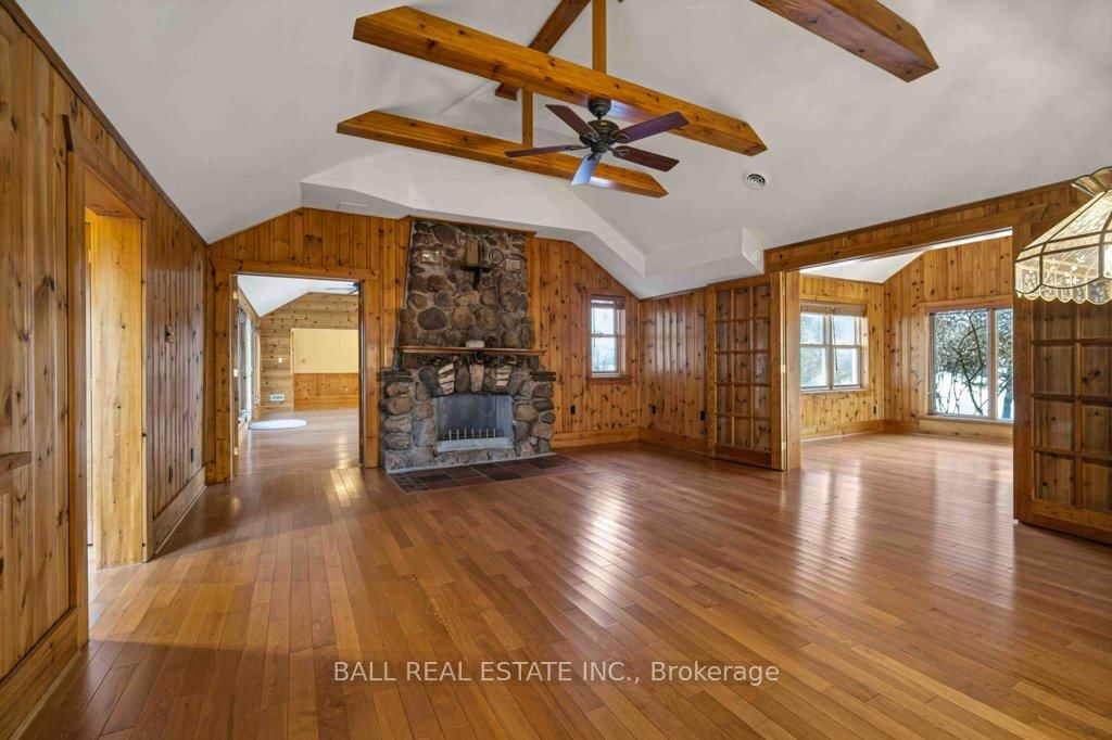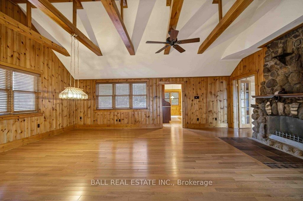 | The Ultimate Waterfront Retreat on Belmont Lake | Experience the rare harmony of luxury and lakefront living with this stunning Belmont Lake estate. The Bungalow on 16 Fire Route 33 null has 2 bedrooms, 2 bathrooms, and is located on a 178.34 x 171.4 ft lot in the community of Belmont-Methuen . Boasting a staggering 170+ feet of north-westerly frontage, this property offers front-row seats to the region's most breathtaking sunsets. Whether you're wading into the crystalline waters via custom stone stairs or cruising by boat to the local sandbar and the iconic Belmont Lake Brewery, the lifestyle here is unparalleled. Designed with meticulous craftsmanship, this 2,000+ sq. ft. bungalow features an expansive, all-one-level layout. The interior strikes a sophisticated balance between rustic charm and modern elegance, showcasing vaulted beamed ceilings, rich hardwood floors, and a grand stone fireplace that anchors the living space. The intelligent floor plan separates the primary living areas from a dedicated bedroom wing for ultimate privacy. Currently configured as a spacious two-bedroom, two-bathroom home, the flexible den offers an easy transition into a third bedroom if desired. Outside, the level lot leads to a detached double garage featuring a finished studio loft, perfect for a creative workspace or a guest bunkie. Located just 10 minutes from town amenities and 45 minutes from Peterborough, this home offers the peace of the cottage with the convenience of a primary residence. Complete with forced-air propane heat, central air, and a drilled well, this is quality you can feel in a setting you'll never want to leave.