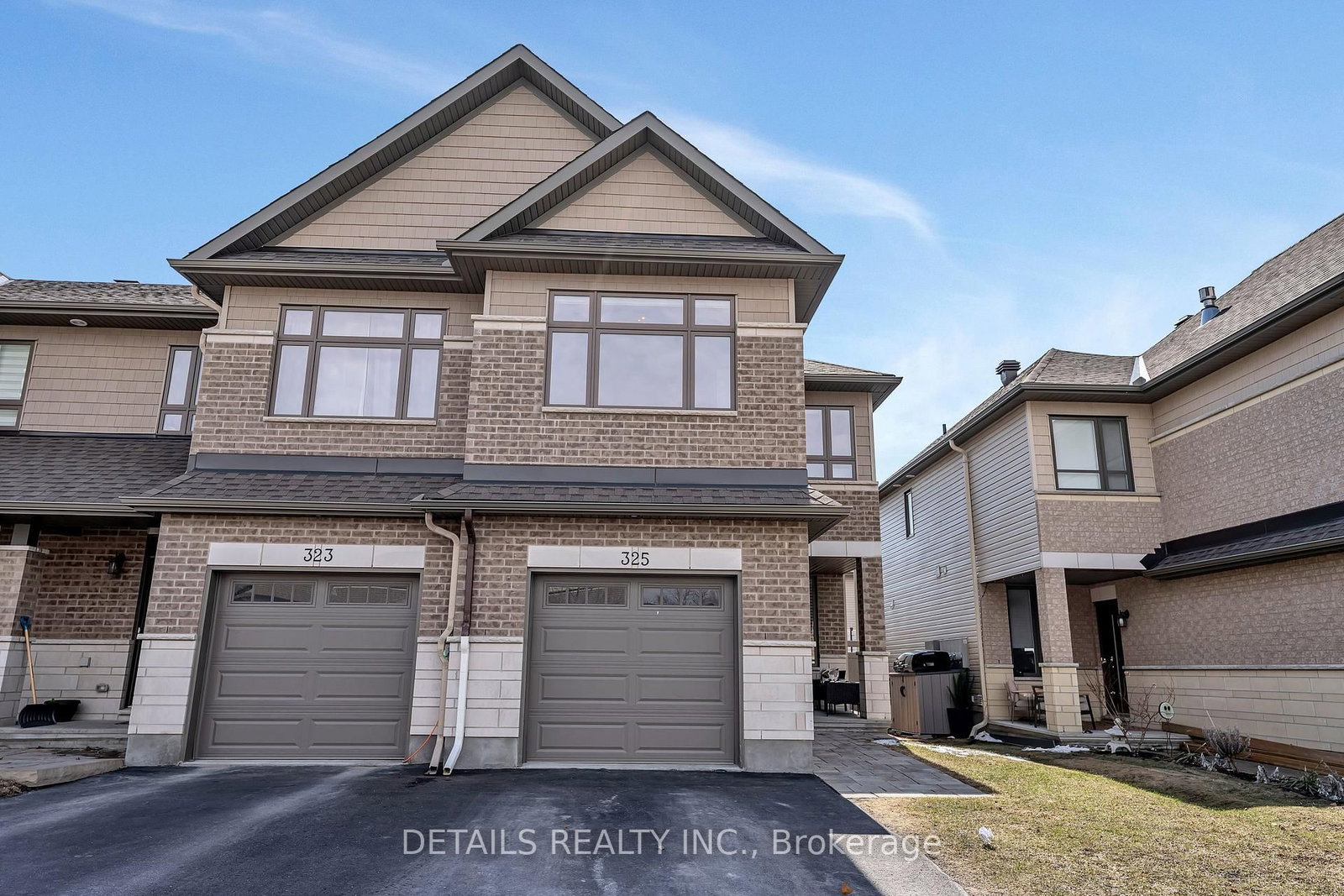 Impressive Beckwith model end-unit 4-bedroom townhome offering over 2,000 sq ft of living space. The 2-Storey on 325 Proud Walk has 4 bedrooms, 4 bathrooms, and is located on a 100.89 x 24.31 ft lot in the community of Stittsville (South) . Ideally positioned with no direct front-facing neighbors, this home provides added privacy and extra parking options. The main floor showcases a beautifully designed kitchen featuring quartz countertops, an oversized island with breakfast bar, and ample prep and storage space-perfect for both everyday living and entertaining. The open-concept layout flows seamlessly into the spacious living and dining areas, filled with natural light and ideal for hosting family and friends. Upstairs, the primary bedroom is a true retreat with double-door entry, a generous walk-in closet, and a large ensuite bathroom. Three additional well-sized bedrooms are located on the second floor, including one with vaulted ceilings that adds character and charm. The convenience of second-floor laundry enhances everyday functionality. The fully finished basement expands your living space with a comfortable family room featuring a cozy fireplace, a full bathroom, and a versatile flex room currently used as a fifth bedroom-perfect for a home office, gym, guest space, or additional storage. Located close to William Bradley Park, walking paths, schools, and local amenities, this home offers exceptional space, functionality, and a fantastic location-an ideal opportunity for growing families or anyone seeking flexible living space in a desirable community.
