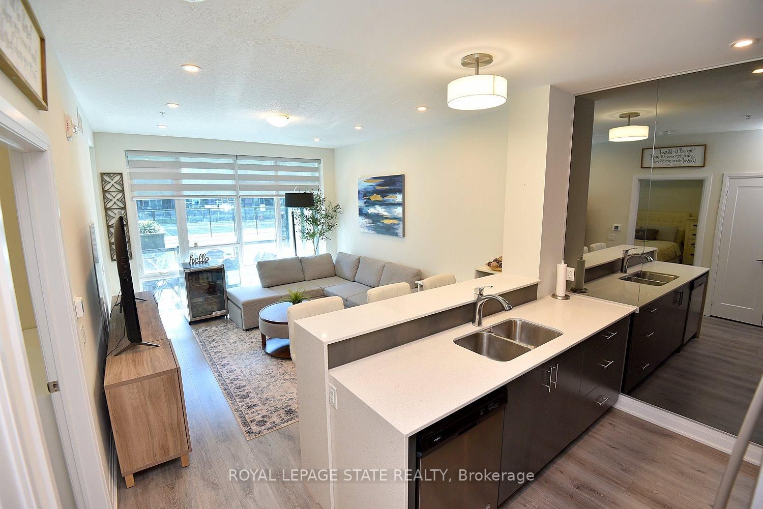 Welcome to 16 Concord Place, one of the most sought-after destinations in Grimsby On The Lake! This luxury 1 Bedroom + Den, main floor unit in the coveted AquaZul development, leaves a lasting impression and confidently displays pride of ownership! Featuring an open concept layout, the interior of this suite provides a custom mirrored wall in the Kitchen, beautiful Quartz counter tops with Breakfast Bar, wide plank Flooring, floor to ceiling Windows, large walk-in Closet & Ensuite privilege! Enjoy the added ease of having in-suite Laundry and relaxing or entertaining on your massive walkout Terrace, allowing quick access to the walking Path and Pool! Complete with a full 4-piece Bathroom and Pot lighting throughout, this unit is move in ready! Be a part of this fabulous community and enjoy the full resort style inspired amenities of Party room, Games & Media room, full Gym with stunning Lake views, a storage Locker, and underground Parking. The 1 Storey/Apt on 145-16 Concord Place has 1 bedrooms, 1 bathrooms, and is located in the community of Grimsby Beach . Sit back, relax, and entertain in the Courtyard offering BBQ's, outdoor Pool & Lounge area. Take advantage of this great location that puts you just steps from trendy Restaurants, Cafes, Boutique Shopping, walking Trails, and easy access to the QEW; ideal for commuters and weekend adventurers alike!