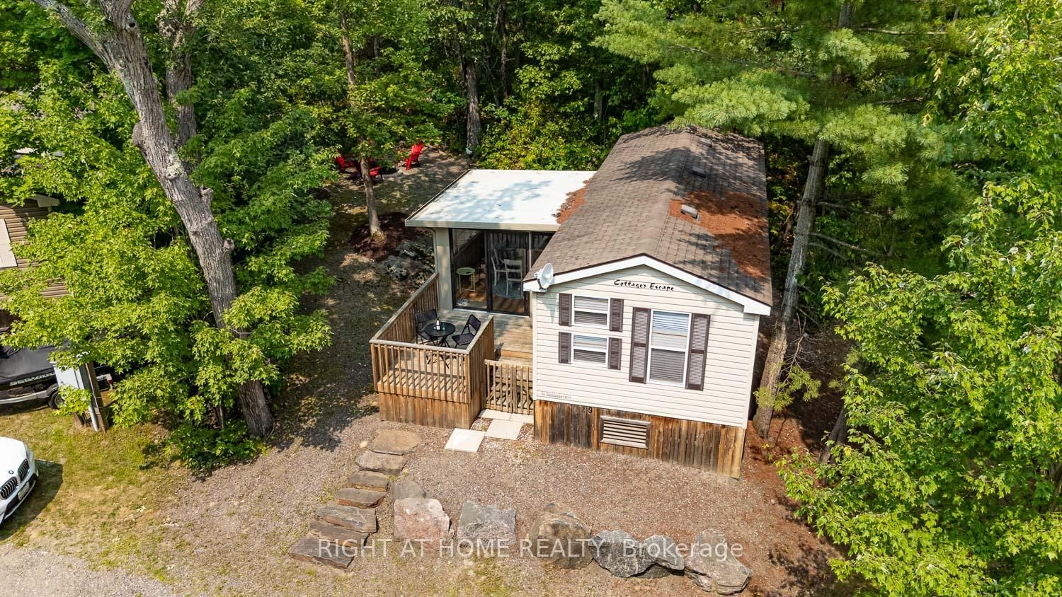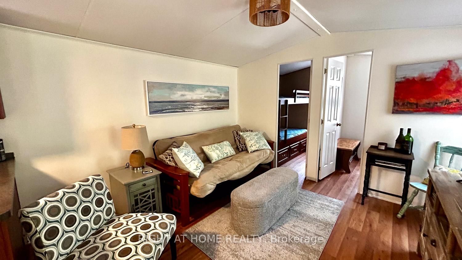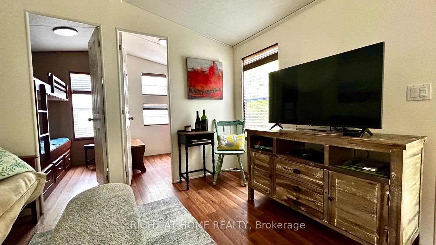 ~ PRICED TO SELL! MOTIVATED! ~ RESORT FEES PAID FOR 2026! There is no better alternative to owning a TURNKEY cabin by the lake than becoming an owner at Lantern Bay Resort, a waterfront, family/pet-friendly seasonal cottage resort in Gravenhurst. The Bungalow on 29 Maple Ridge-1336 South Morrison Lake Road has 3 bedrooms, 1 bathrooms, and is located in the community of Wood (Gravenhurst) . Just imagine: a cozy cabin built in 2010 with 3 bedrooms and sunroom (used as dining area), a front + back deck, and located on a rustic lot with partial water views. PRIVACY GALORE! A true "cabin in the woods" vibe surrounds you. The cabin itself has been freshened up with a lighter colour palette, stylish furniture and accessories, new lighting w/ dimmers, and new LVP flooring in the sunroom with a DRICORE subfloor, and much more. Lantern Bay is one of 8 resorts in the Great Blue family with amenities that include (2) heated pools, a community pavilion, a multi-sports court, playground, fitness centre, laundry, pickleball court, private beach, non-motorized watercraft, and organized events throughout the season. The seasonal fee of $10,450 + HST includes ALL AMENITIES (a 5-min walk from path across road) + EVENTS, plus lot rental, water, unlimited hydro, sewer, and grounds keeping from May 1 to October 31. BOAT SLIPS available for an additional seasonal fee. Inside, you will have everything you need to kickstart cabin life because most of the furniture (some antiques), accessories, and equipment are INCLUDED. And by the way, this is not one of those cabins from summer camp: you have a propane-powered furnace, electric-powered central air, and a nicely appointed kitchen. The flooring is a commercial grade, non-slip vinyl that can handle serious wear and tear. The 3rd bedroom (a former bedroom w/ kiddie bunk beds) has been converted to an office but if you need more sleeping room, the futon couch folds down to a comfy double bed. If you think living the cottage country dream in Muskoka is not possible, book a showing and tour at Lantern Bay Resort and you'll quickly discover how POSSIBLE (and AFFORDABLE) it can be.