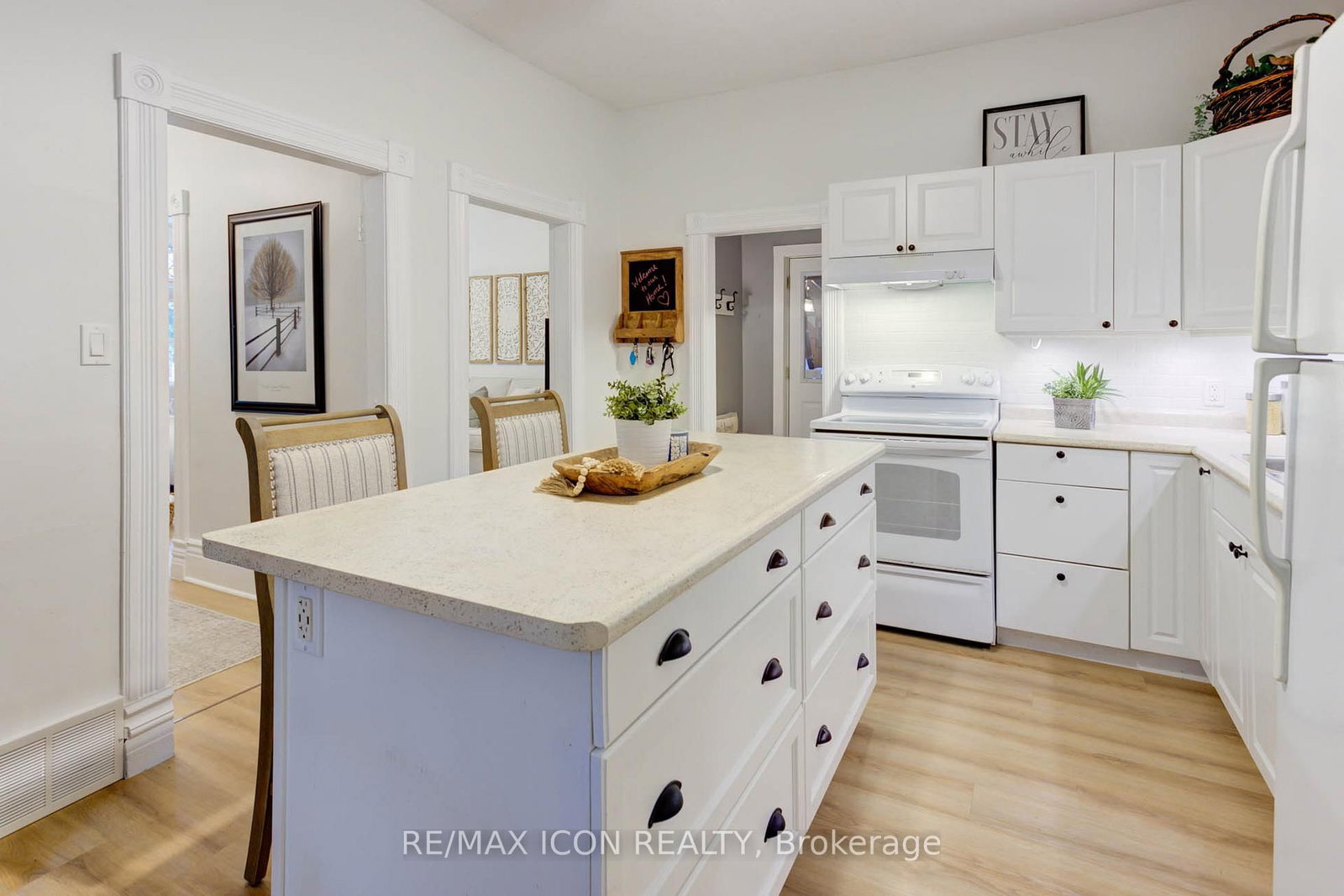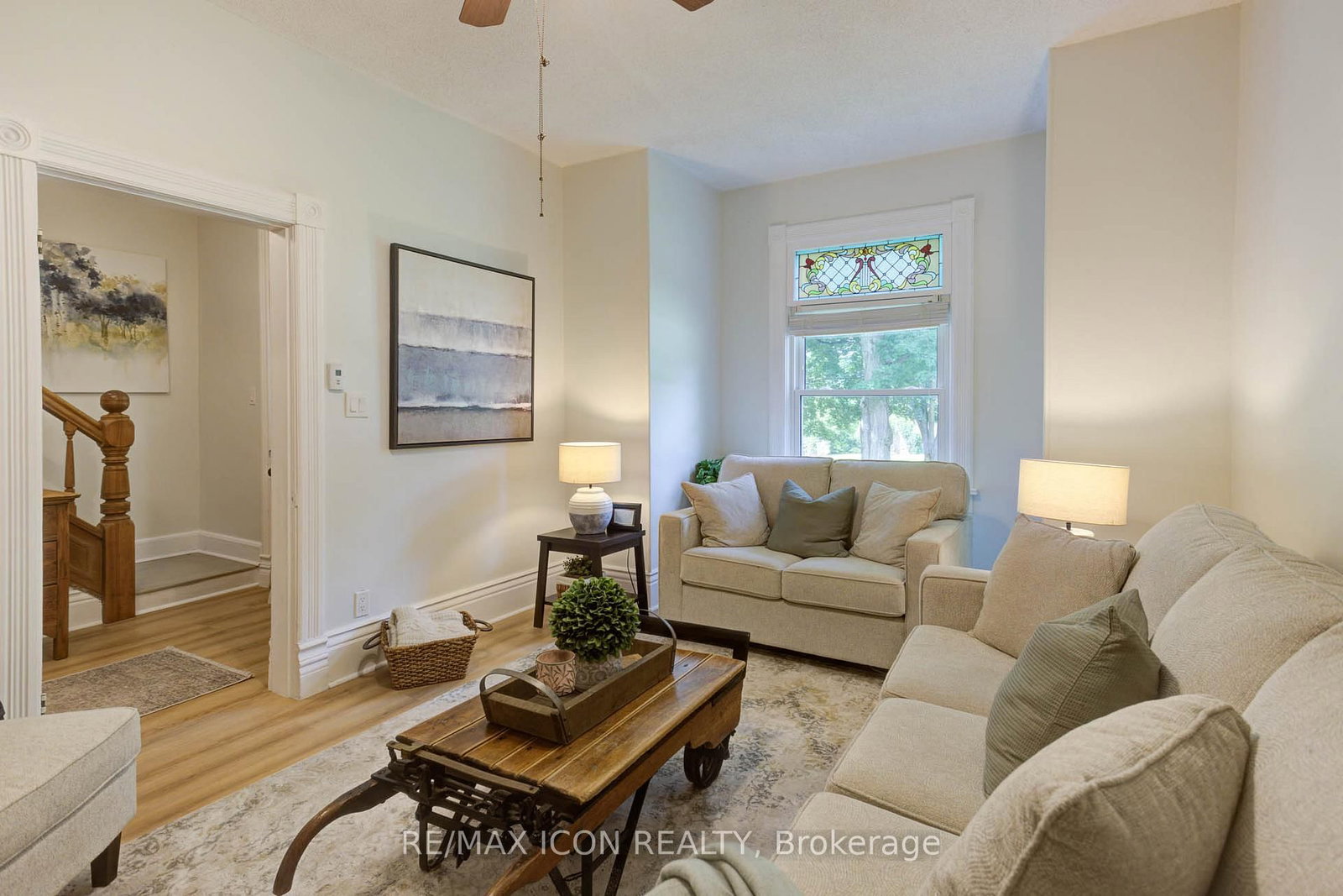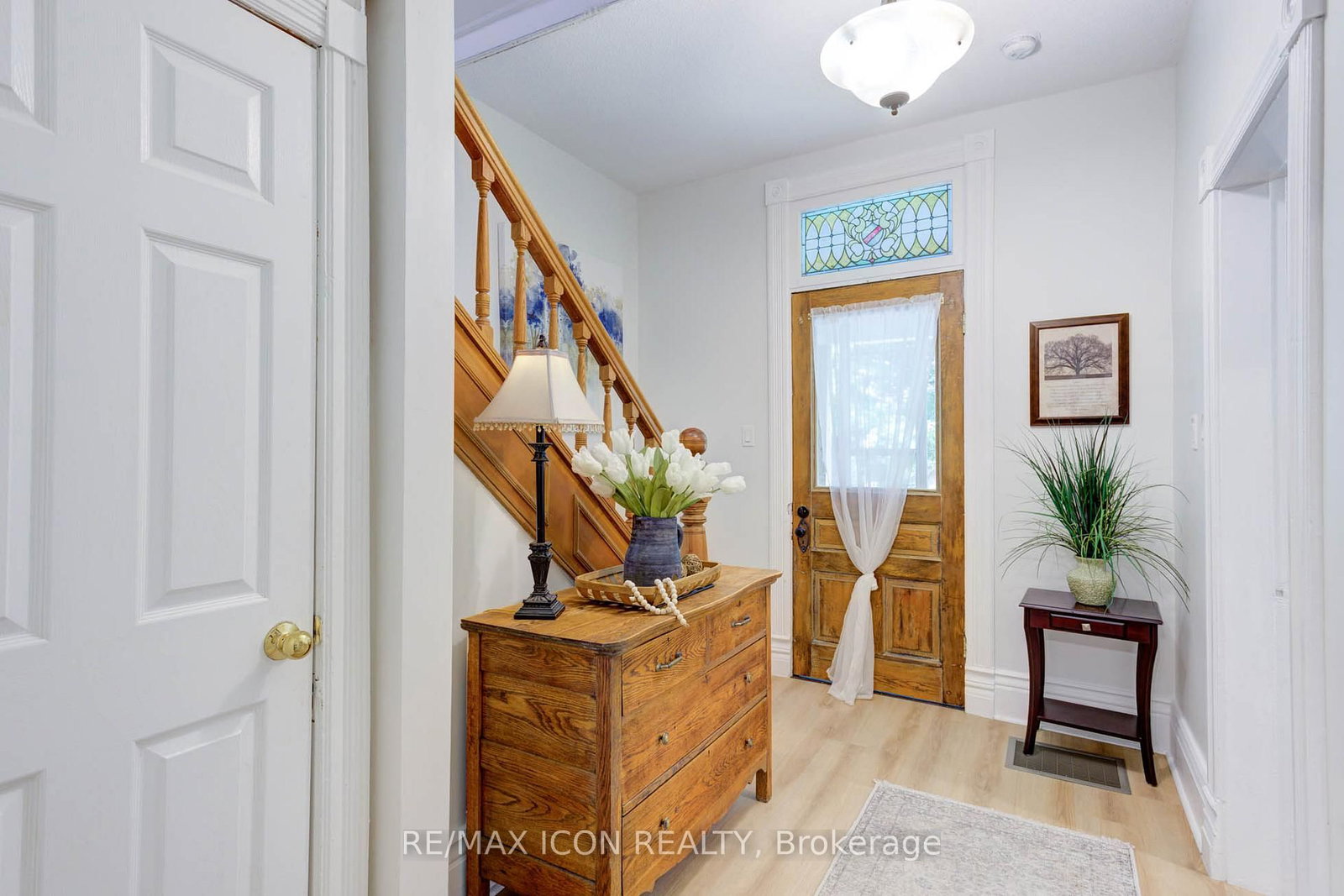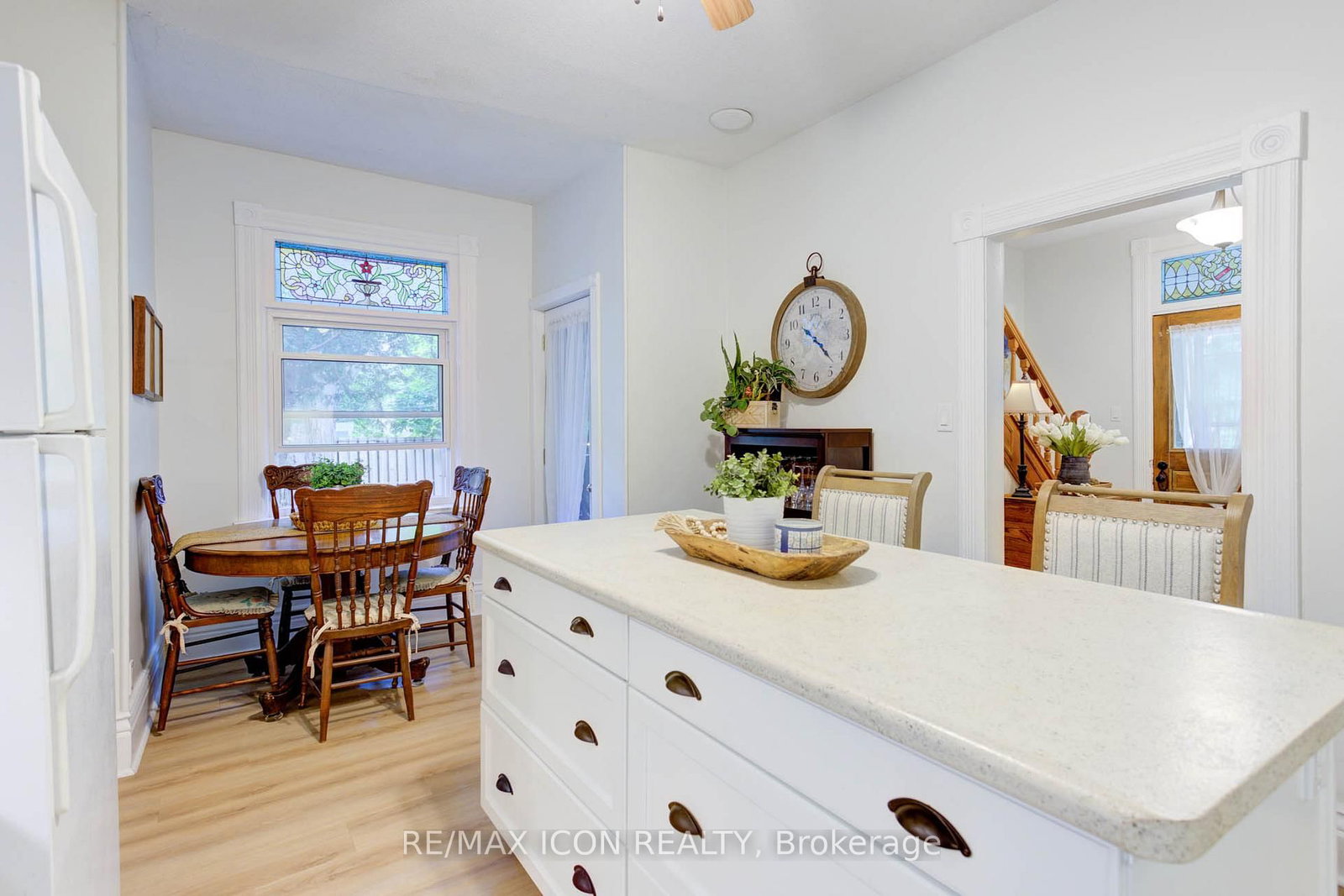 Classic curb appeal meets everyday comfort in this inviting two-storey, turn-of-the-century home, set on a spacious corner lot with a wrap-around porch and mature maple trees. The 2-Storey on 280 Fergus Street N has 3 bedrooms, 3 bathrooms, and is located on < .50 acres in the community of Mount Forest . Inside, you'll appreciate the original stained glass windows and woodwork, paired seamlessly with updated luxury vinyl plank flooring and a stylish 4-piece bathroom featuring a tiled tub surround and warm wood accents. The kitchen is both functional and welcoming, centred around a generous island finished with classic stainless steel cup pulls-perfect for everyday living and gathering. Offering 3 bedrooms and 3 bathrooms, this home has been well cared for and updated to provide comfort and peace of mind. The outdoor space is equally appealing, with a large yard shaded by established trees and plenty of room to relax or entertain. The double car garage offers great space for vehicles, hobbies, or storage. Important note: this is a semi-detached home, attached to a small neighbouring cottage-style residence. Located in the heart of Mount Forest, you'll enjoy the warmth of a close-knit community with the convenience of being just under an hour to Waterloo, Guelph, and Orangeville.Recent updates include: garage roof (2023), house roof (2015), garage side door (2021), second-floor 4-piece bathroom (2021), main floor bathroom with laundry (2024), and water softener (2024).A wonderful opportunity to enjoy character, space, and modern updates-all in a welcoming small-town setting.