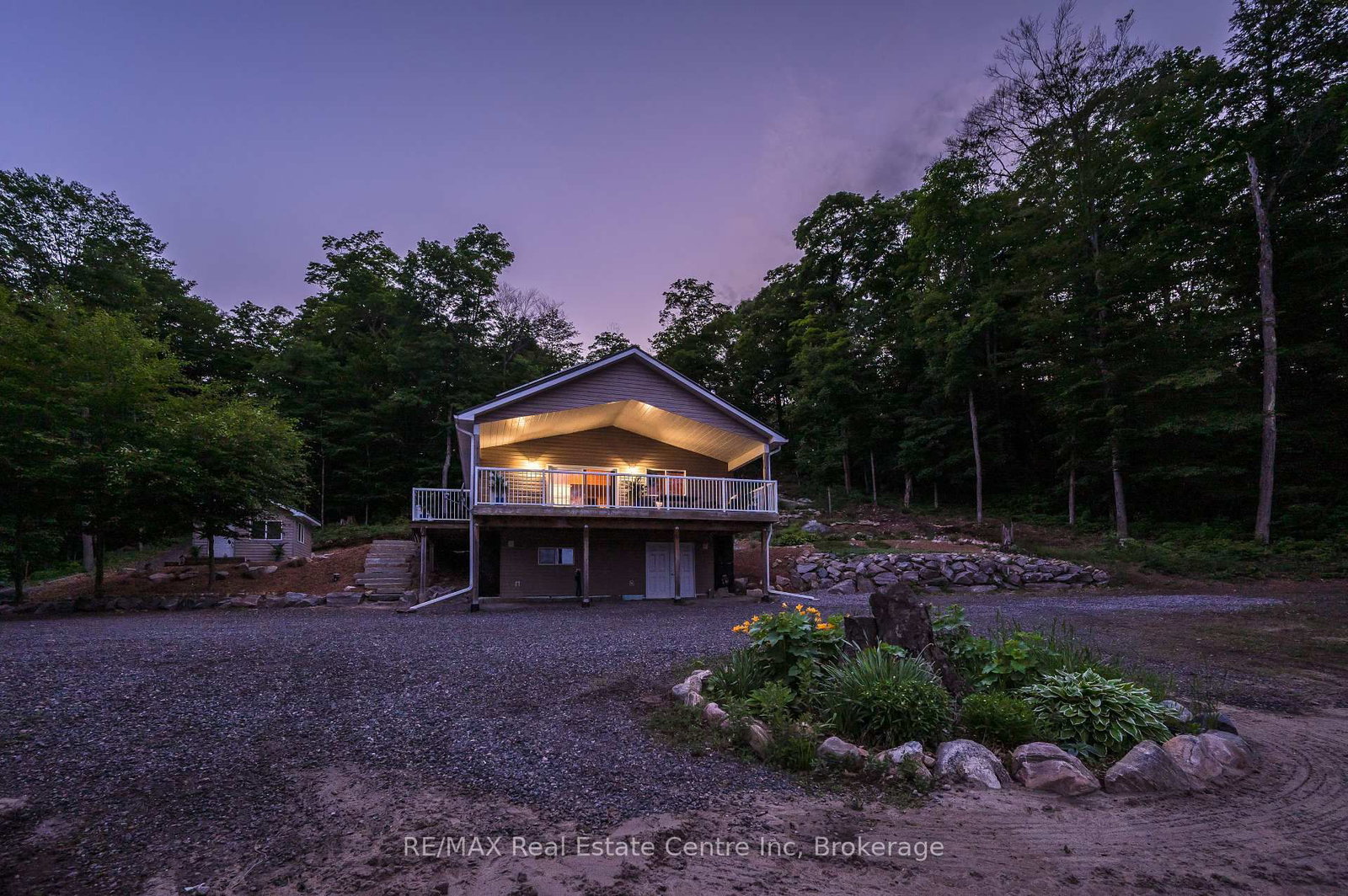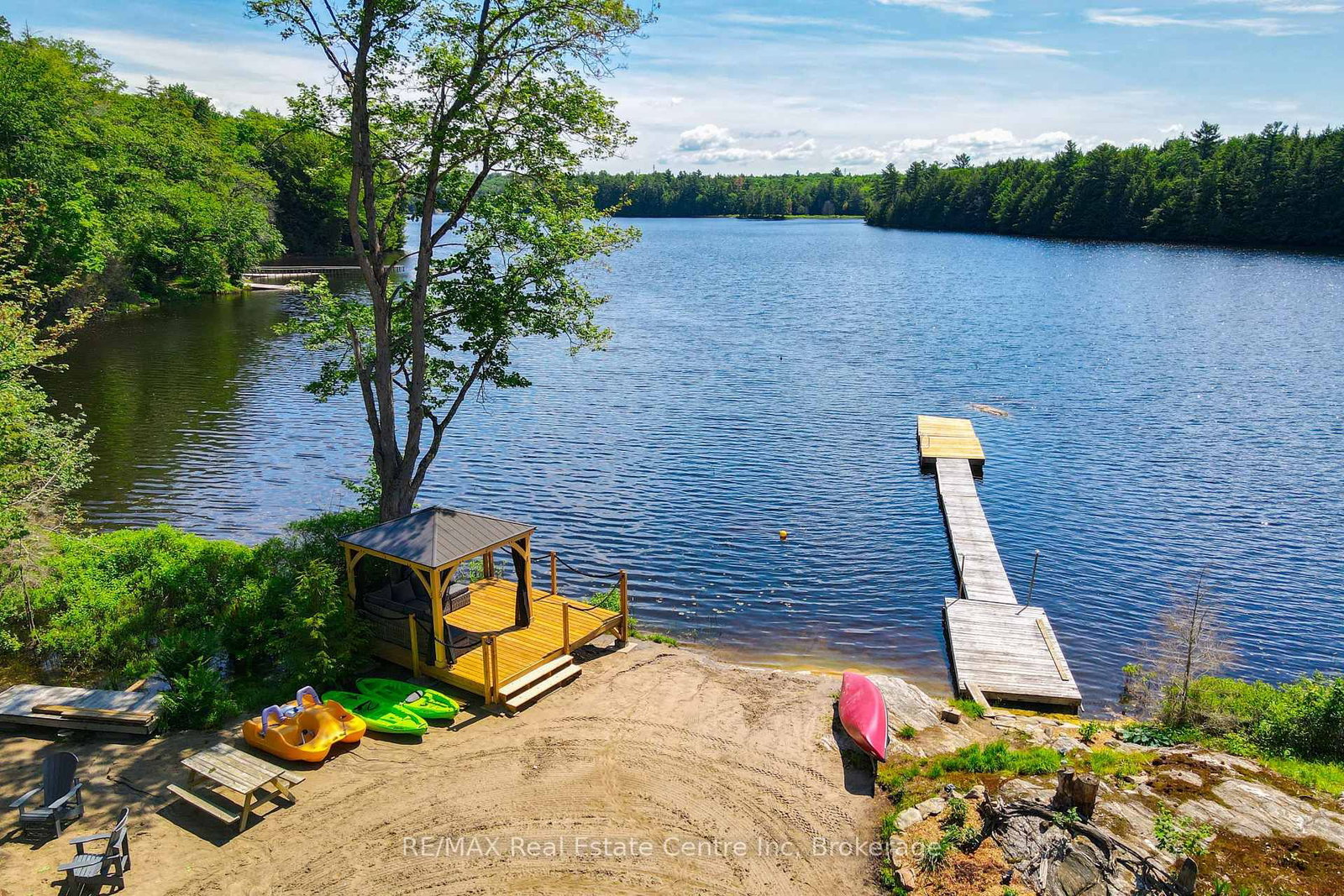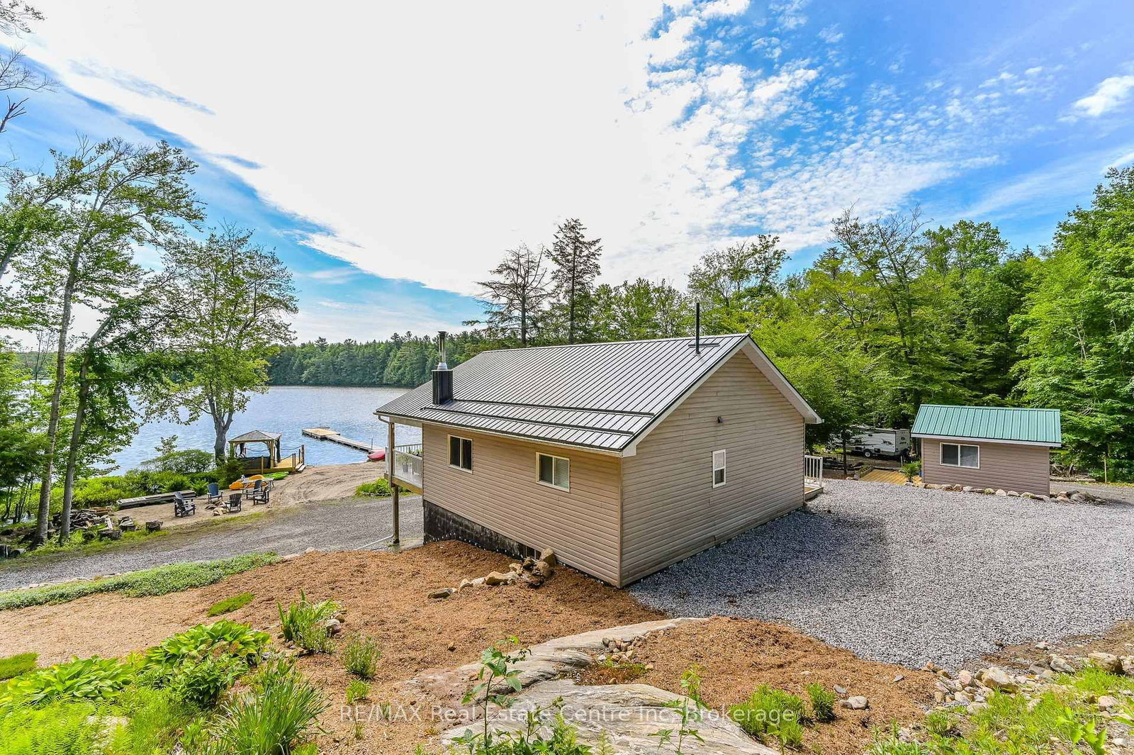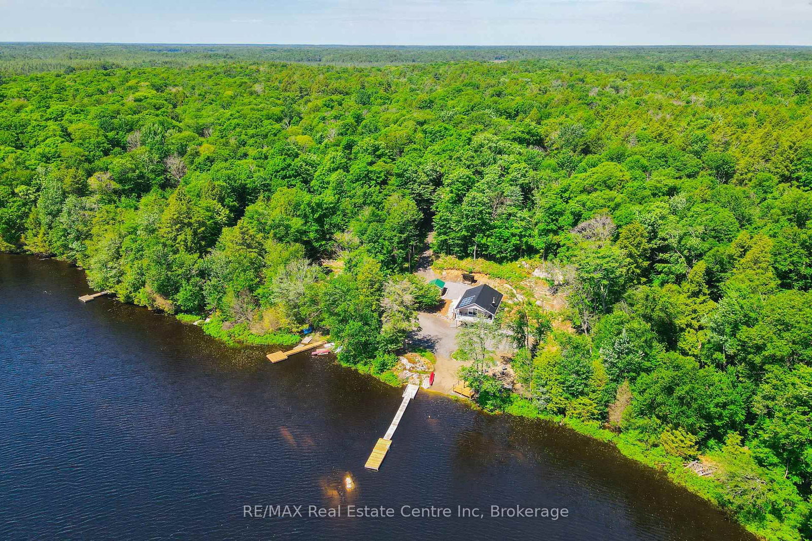 Welcome to Bloor Lake House (currently listed on Airbnb and has a full summer of rentals, if the buyer wants to assume them ($3000 per week) a fully renovated lakefront retreat, offering the same natural beauty and lifestyle the Muskoka area is known for with added privacy and tranquility. The Bungalow on 22 South Crane Lake Road has 2 bedrooms, 1 bathrooms, and is located on a 896 x 210 ft loton 2-4.99 acres in the community of Archipelago South . Set on 3.3 acres, with private tree lined laneway with gated secure entrance and ample parking, this property was completely renovated four years ago and combines modern systems with classic cottage character. The main cottage features open-concept living with vaulted pine ceilings, updated wood finishes, wood stove, large covered front porch with full lake view, and a bright kitchen with quartz countertops, white cabinetry, gas range, and excellent counter space for cooking and serving. Sleeping accommodations include space for up to 11 people between the cottage and a separate heated bunkie, making it ideal for families and guests.The property is situated on a private lake shared by only four cottages, with no public access, and the views are open and expansive. Outside you'll find expansive perennial gardens, lakeside firepit, enclosed wood storage, and lockable ATV or gardening storage. The waterfront includes a lakeside screened in gazebo with seating, private dock and swim platform, and a gradual entry sandy beach which allows for motor boat launch and opportunities for swimming, canoeing, kayaking, and excellent fishing for small and largemouth bass, sunfish, and crappie. A nearby waterfall offers portage access into the lower Crane Lake, adding to the recreational appeal. Recent upgrades include a wrapped foundation, solar power with lithium batteries, and a whole-home propane generator, ensuring efficient and reliable service in all seasons.With 3.3 acres of land, updated interiors, exceptional waterfront, and no short-term rental restrictions in the area, this lake house is well-suited as a year-round residence, seasonal getaway, or rental investment.
