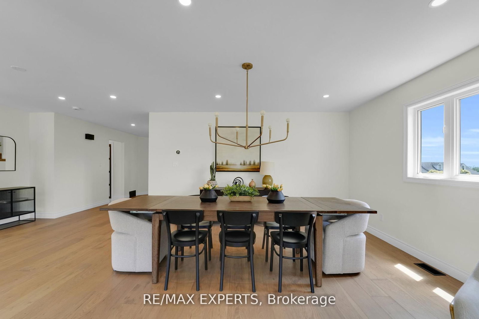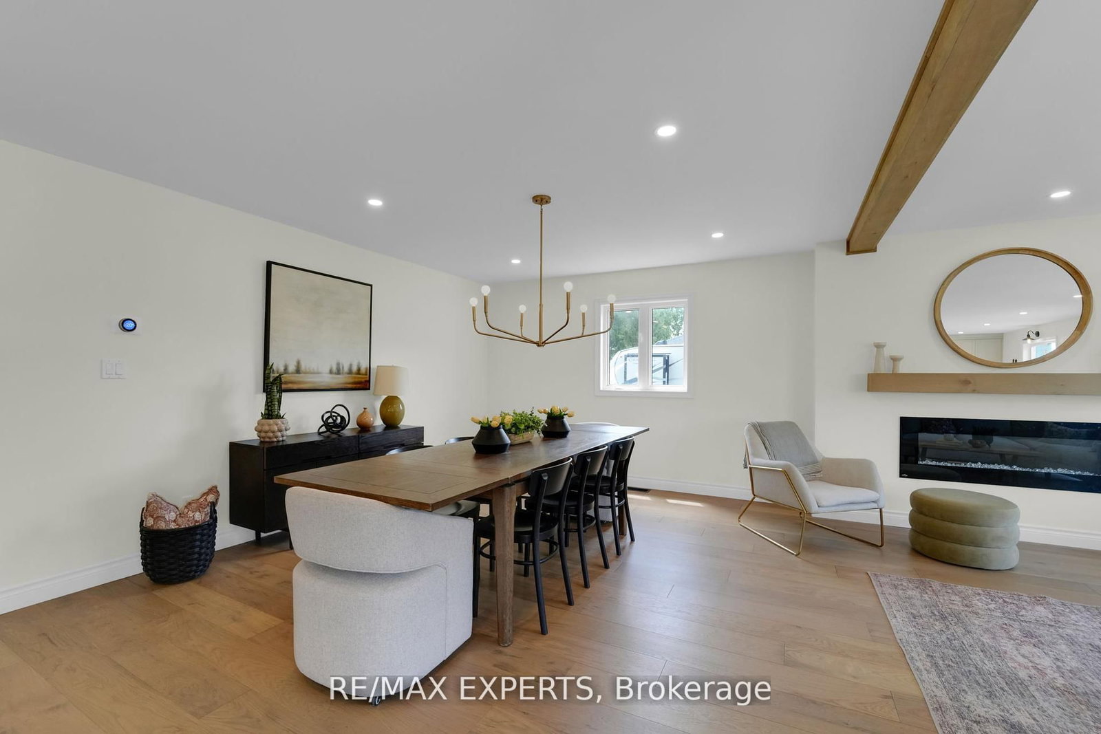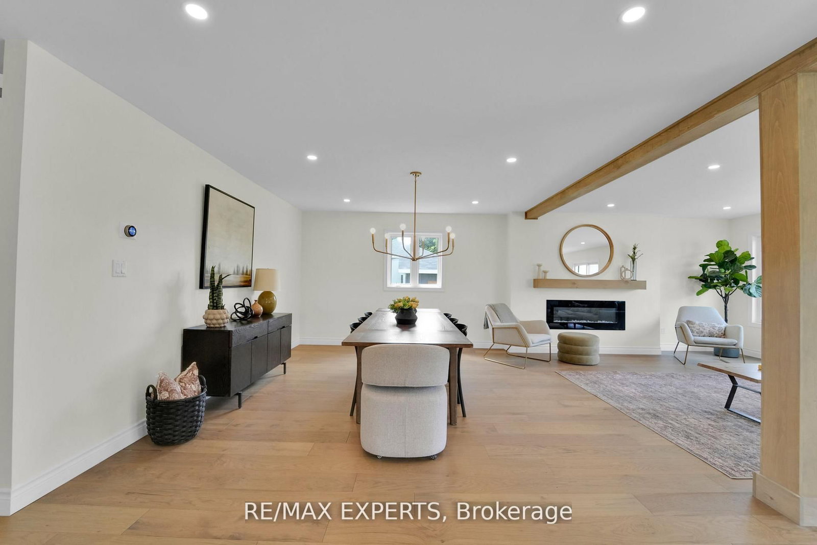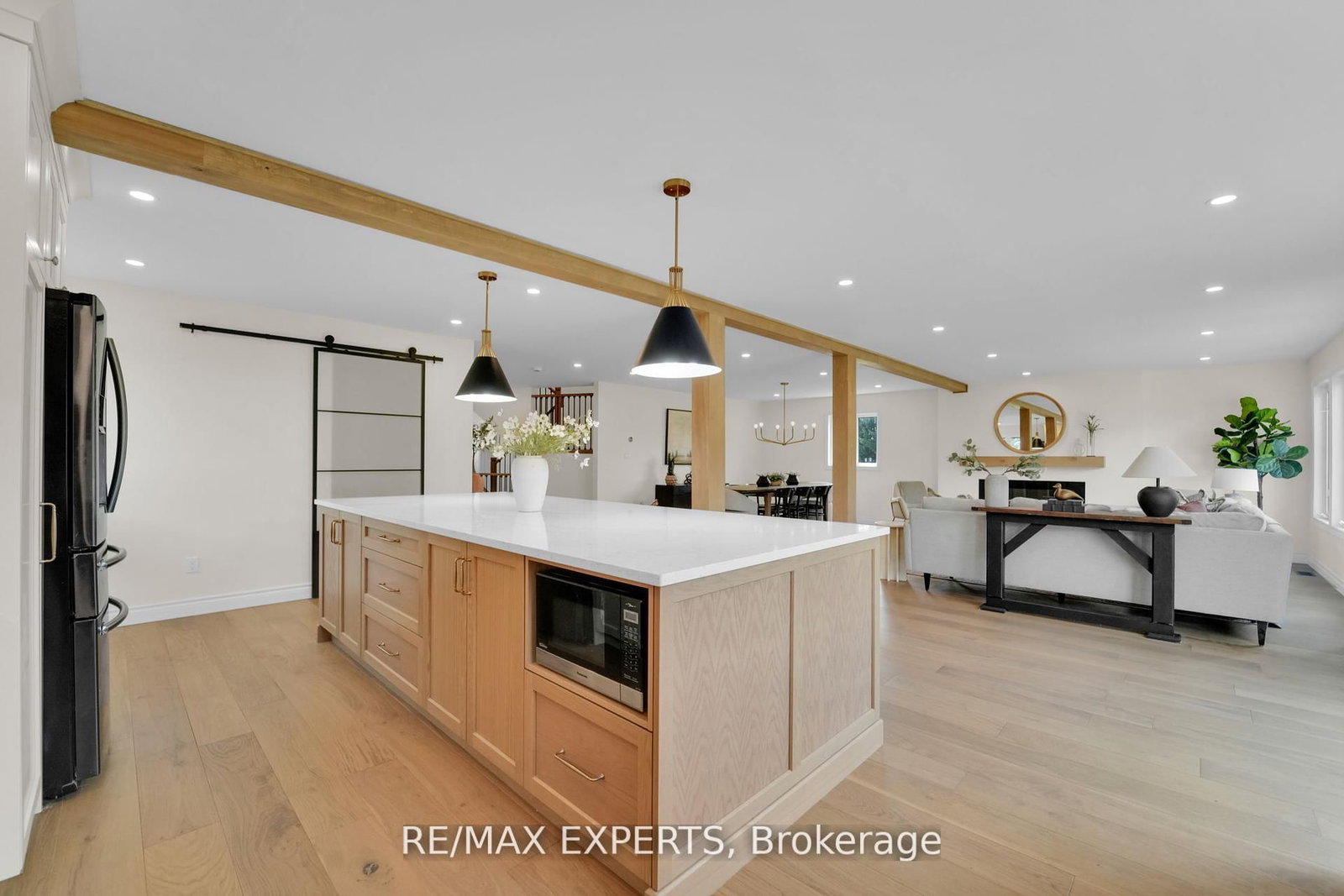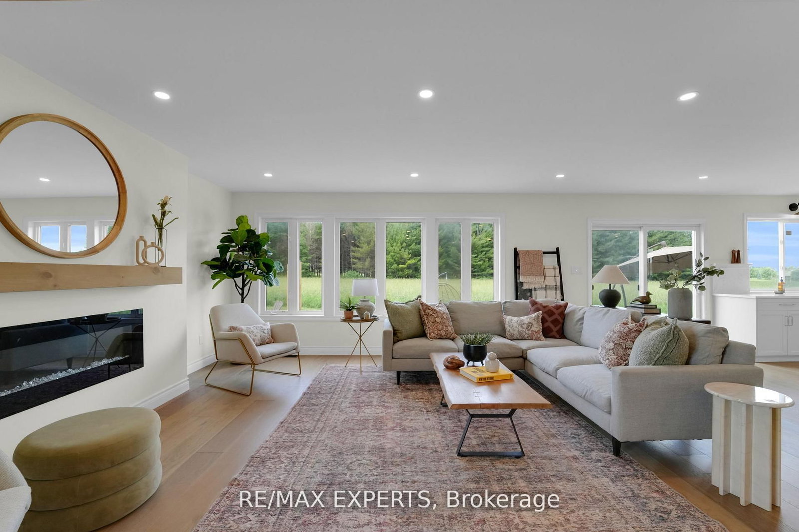 Welcome to 46 Scenic Drive! Where timeless craftsmanship meets modern country elegance in the heart of Drayton. The 2-Storey on 46 Scenic Drive has 6 bedrooms, 5 bathrooms, and is located on a 150 x 100 ft lot in the community of Rural Mapleton . Situated on a stunning 100x150 ft lot, this newly renovated custom home offers approx. 5,300 sq ft of beautifully finished living space across three levels. The open-concept main floor is enhanced by engineered hardwood, pot lights, and a striking exposed wooden beam that ties the space together. The designer kitchen is a showstopper featuring quartz countertops, custom cabinetry, an oversized centre island, a uniquely crafted hood, and a walk-in pantry for optimal functionality. Large picture windows flood the home with natural light and frame peaceful views of the lush backyard. With 7 bedrooms and 5 bathrooms, this home blends comfort and sophistication effortlessly. The oak staircase with sleek iron spindles leads to a second floor that boasts a luxurious primary retreat with a spa-like ensuite, double vanities, freestanding tub, glass shower, and his & her closets. The fully finished basement includes pot lights, a spacious bedroom with ensuite, and a custom wet bar with a gleaming granite countertop, perfect for entertaining. Step outside to your stamped concrete patio with outdoor fire-pit, or unwind on the charming front veranda. Located in Drayton, a close-knit community known for its scenic beauty and small-town charm, this home is a true masterpiece of luxury living.
