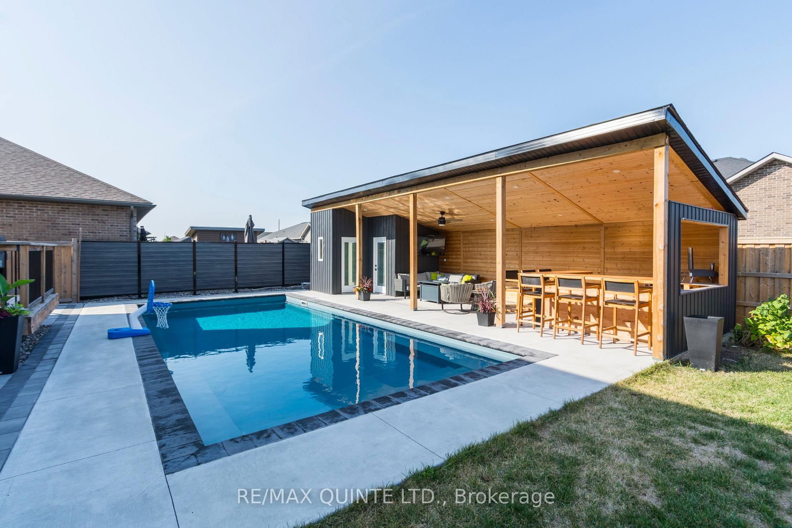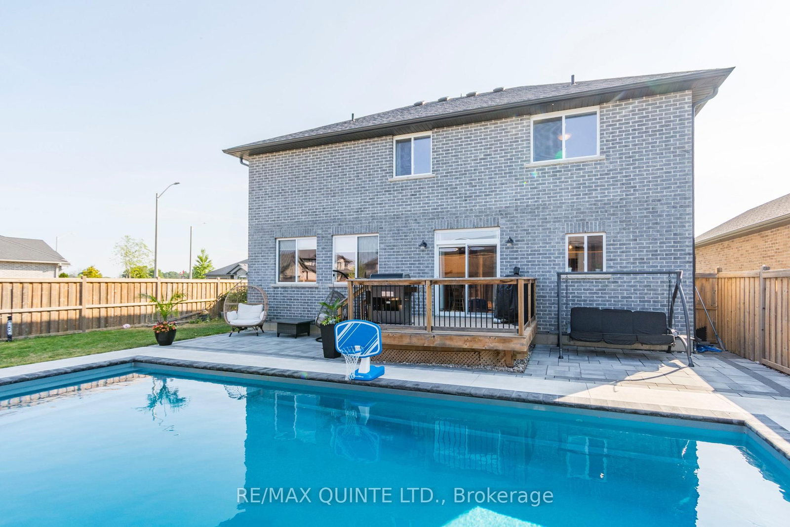 Welcome to your own private oasis! This stunning custom-built 2-storey home by Duvanco Homes offers luxury living inside and out. The 2-Storey on 104 Hampton Ridge Drive has 4 bedrooms, 4 bathrooms, and is located on a 111 x 61 ft lot in the community of Thurlow Ward . Situated on a desirable corner lot, the fully fenced backyard is designed for entertaining, featuring an in-ground 16x36 ft fiberglass heated saltwater pool, covered outdoor bar, and spacious lounge area-perfect for relaxing or hosting guests.Inside, enjoy three finished levels of thoughtfully designed living space. The open-concept main floor boasts a modern kitchen with quartz countertops, custom cabinetry, under-cabinet lighting, and a large centre island. A private front office with French doors provides an ideal work-from-home setup.The upper level offers four generously sized bedrooms, including a luxurious primary suite complete with a 5-piece ensuite featuring a glass shower, soaker tub, double vanity, and walk-in closet.The fully finished basement extends the living space with a recreation room, exercise area, 3-piece bath, and a fifth bedroom-ideal for guests or extended family.Located in the highly sought-after Settlers Ridge community, close to parks, trails, schools, and all amenities, with quick access to Highway 401. A rare opportunity to own a turn-key home with resort-style outdoor living.