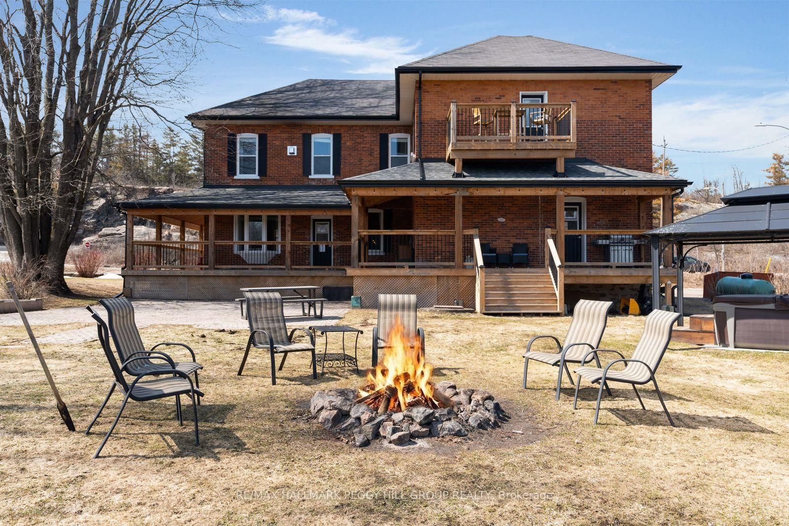 BEAUTIFUL WATERFRONT PROPERTY WITH OVER 5000 SQFT, 3 KITCHENS, 7 BEDROOMS, 7 BATHROOMS, 380 FT OF SHORELINE, ON OVER AN ACRE WITH CC5 ZONING! This is not just a home, it is a property built for a much larger vision! Set on over an acre with Highway 11 access nearby for commuters and boating routes leading toward Sparrow Lake and the Trent Severn Waterway, this stately all-brick century home offers exceptional flexibility for residential or commercial use, with the scale to support guest accommodation, multigenerational living, or business ventures. The 2-Storey on 1002 Cowbell Lane has 7 bedrooms, 7 bathrooms, and is located on a 119.22 x 380 ft loton .50-1.99 acres in the community of Morrison . Black shutters, plenty of windows, mature perennial gardens, and a newer wraparound deck give the exterior plenty of appeal, while the waterfront setting adds multiple outdoor deck areas, a volleyball court, a horseshoe pit, a newer dock, and ample parking. Original woodwork, 10 foot ceilings, and 3 fireplaces give the main living areas the kind of character newer homes cannot replicate, while updated finishes add a more modern layer to the home's classic appeal. The main kitchen features granite countertops, stainless steel appliances, upgraded cabinetry, and a large island, while 3 kitchens in total expand the options for extended family, shared living, or potential income-producing use. Upper level bedroom and bathroom capacity includes a mix of ensuite, semi-ensuite, and main bath access. Additional updates include fresh paint, plumbing upgrades, baths, laundry room, some window replacements, copper wiring, a 400 amp panel, exterior improvements including all decks and docks, and removal of the heritage designation for added freedom moving forward. This #HomeToStay really has it all!