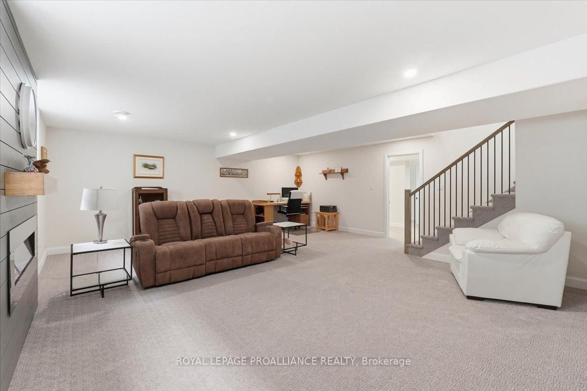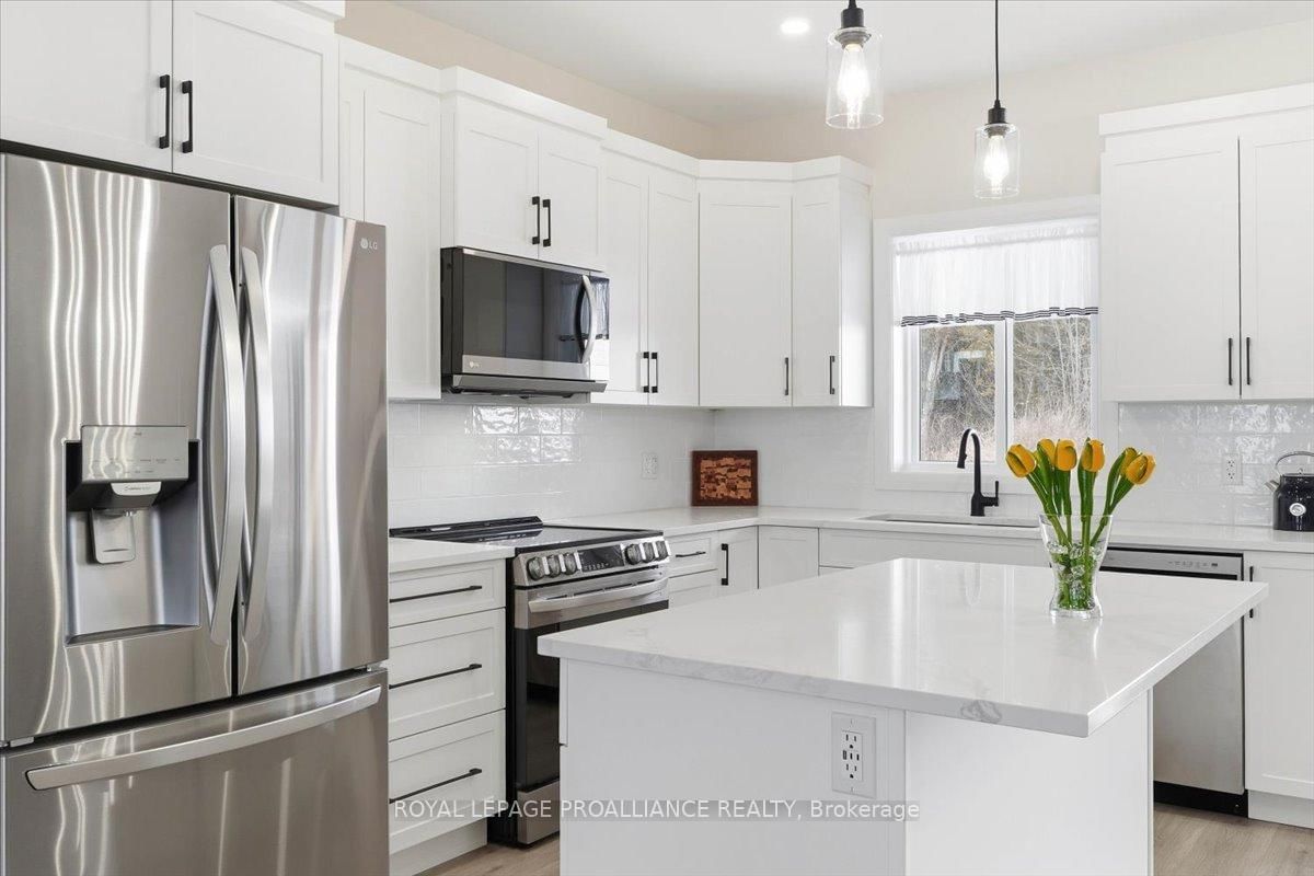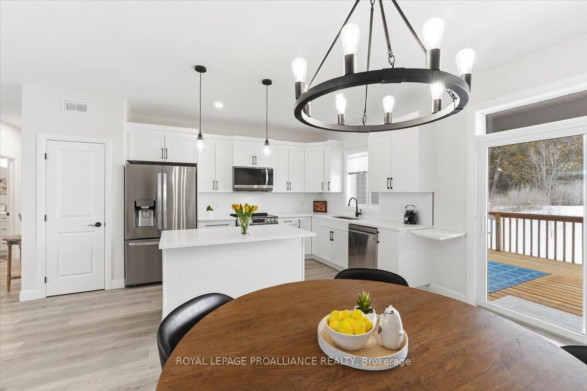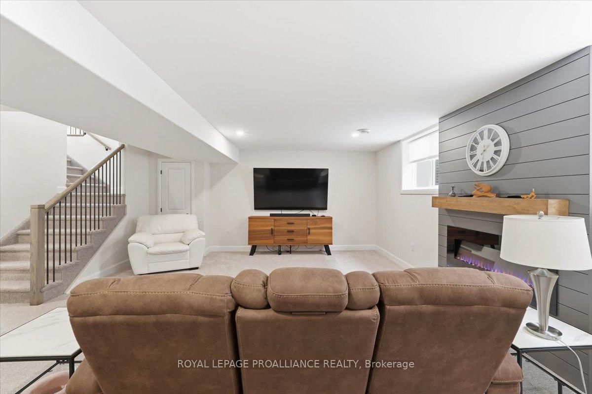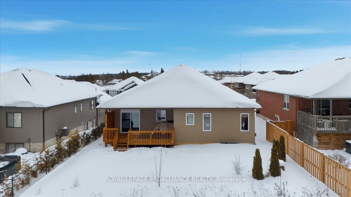Welcome to 34 Rosewood Drive! This beautifully maintained 2. The Bungalow on 34 Rosewood Drive has 3 bedrooms, 3 bathrooms, and is located on a 108 x 49 ft lot in the community of Frankford Ward .5-year-old bungalow is located in the desirable Rosewood Acres subdivision. Offering over 2,800 sq. ft. of finished living space, this home is thoughtfully designed for both everyday comfort and entertaining.The main floor features three bedrooms and two full bathrooms, including a spacious primary bedroom with walk-in closet and a private en-suite showcasing a spacious ceramic shower. The classic white kitchen is finished with quartz countertops, a centre island, pantry, and flows seamlessly into the dining area with access to an oversized (12x19) covered deck-perfect for indoor/outdoor living.The living room is warm and inviting with a cozy fireplace, while the near fully finished lower level adds exceptional versatility with two additional bedrooms, a full bathroom, and a generous recreation room complete with a second fireplace.Additional highlights include a double car garage, paved driveway, and professionally landscaped yard featuring an interlock walkway leading to the front door and retaining stone flower beds. This home shows to perfection and remains covered under Tarion warranty.A fantastic opportunity to own a move-in-ready home in a sought-after neighbourhood. Frankford offers all amenities and is only15 minutes to Trenton. Don't forget to check out the floor plan and 3D virtual tour