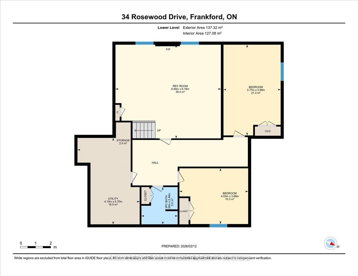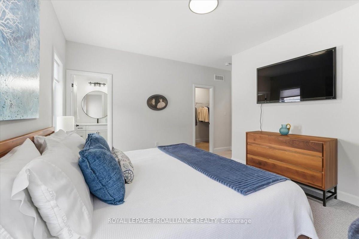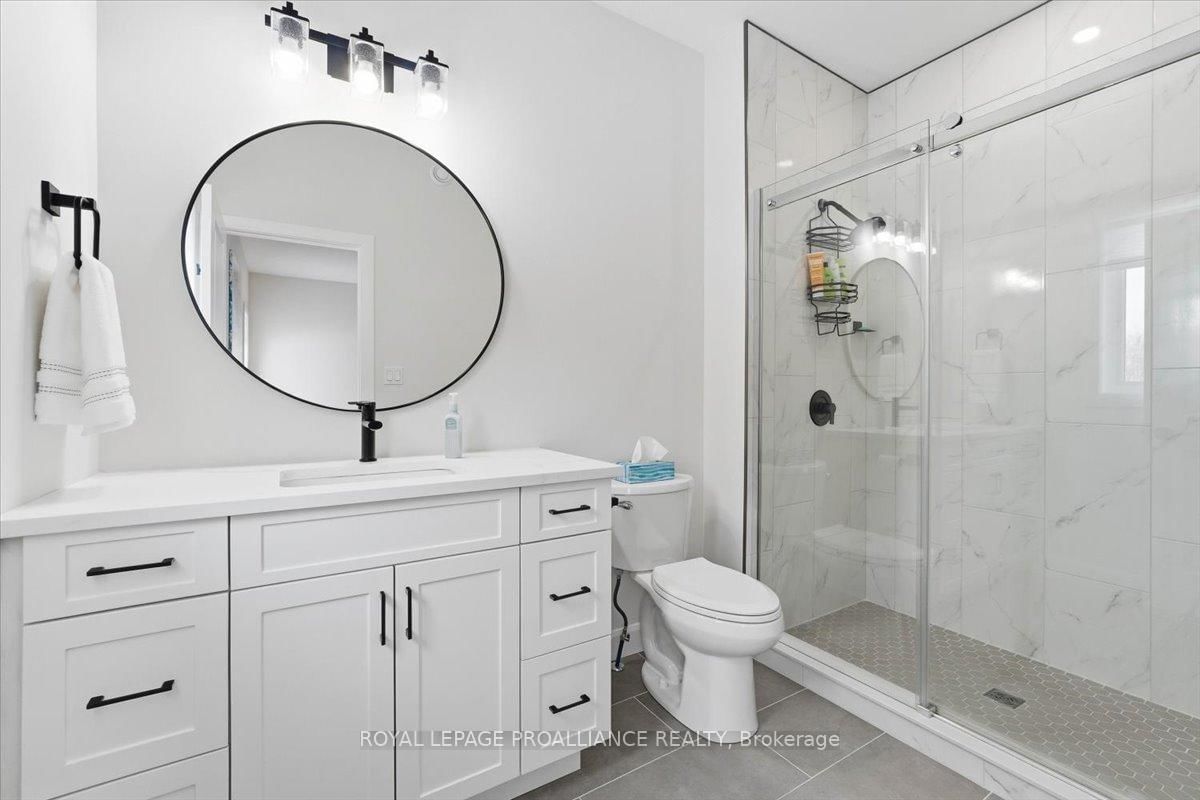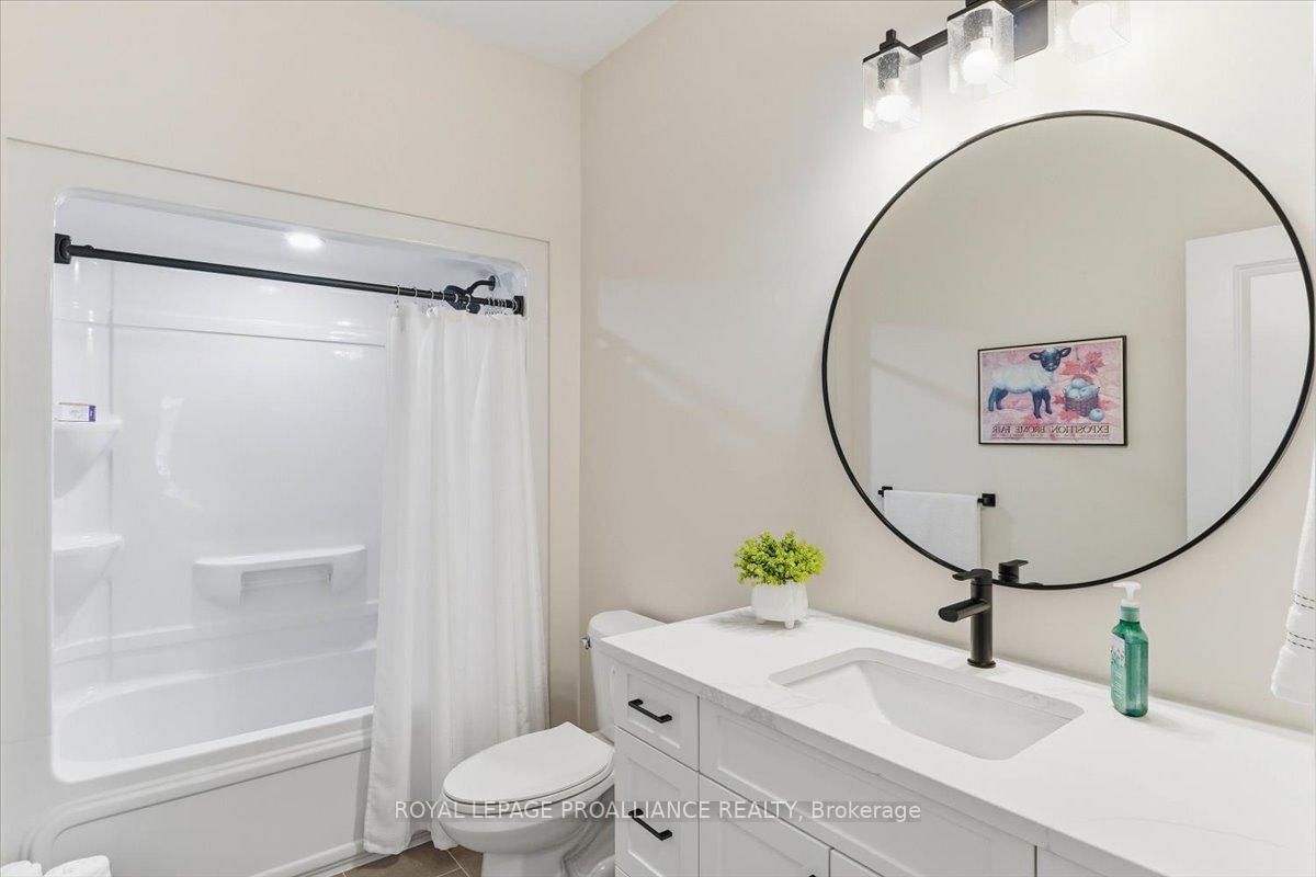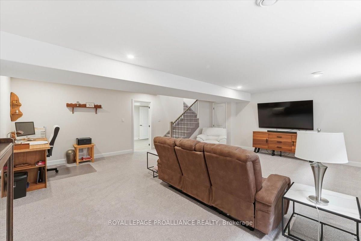 Welcome to 34 Rosewood Drive! This beautifully maintained 2. The Bungalow on 34 Rosewood Drive has 3 bedrooms, 3 bathrooms, and is located on a 108 x 49 ft lot in the community of Frankford Ward .5-year-old bungalow is located in the desirable Rosewood Acres subdivision. Offering over 2,800 sq. ft. of finished living space, this home is thoughtfully designed for both everyday comfort and entertaining.The main floor features three bedrooms and two full bathrooms, including a spacious primary bedroom with walk-in closet and a private en-suite showcasing a spacious ceramic shower. The classic white kitchen is finished with quartz countertops, a centre island, pantry, and flows seamlessly into the dining area with access to an oversized (12x19) covered deck-perfect for indoor/outdoor living.The living room is warm and inviting with a cozy fireplace, while the near fully finished lower level adds exceptional versatility with two additional bedrooms, a full bathroom, and a generous recreation room complete with a second fireplace.Additional highlights include a double car garage, paved driveway, and professionally landscaped yard featuring an interlock walkway leading to the front door and retaining stone flower beds. This home shows to perfection and remains covered under Tarion warranty.A fantastic opportunity to own a move-in-ready home in a sought-after neighbourhood. Frankford offers all amenities and is only15 minutes to Trenton. Don't forget to check out the floor plan and 3D virtual tour