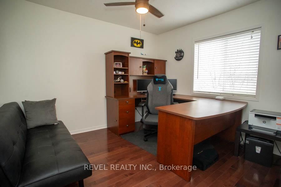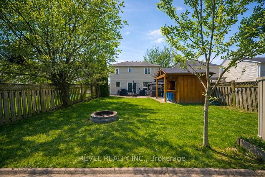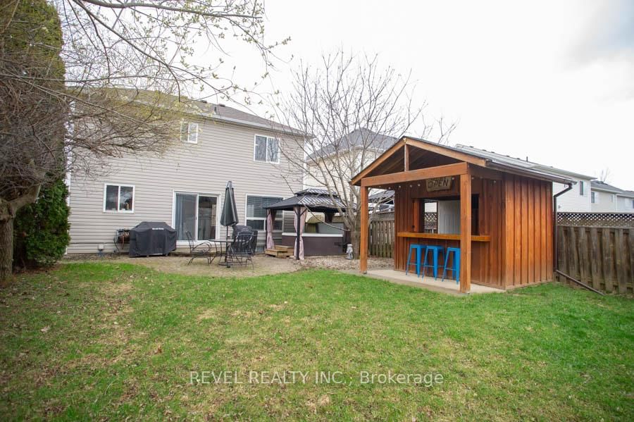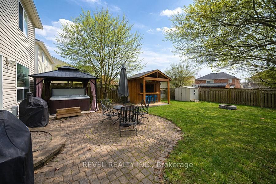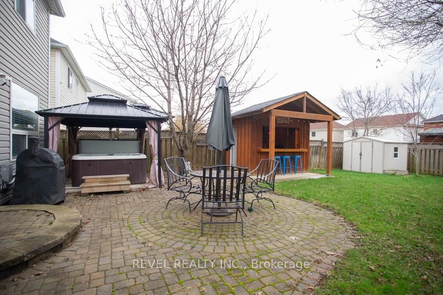 Welcome to 47 Stowe Terrace, a bright and beautifully maintained two-storey home located in the sought-after West Brant community. The 2-Storey on 47 Stowe Terrace has 3 bedrooms, 3 bathrooms, and is located on a 115.85 x 41.47 ft loton < .50 acres in the community of . Offering 1,772 square feet of finished living space, this detached home blends comfort, functionality, and thoughtful updates throughout, all while being just minutes from parks, schools, trails, shopping, and everyday amenities.The main floor offers a warm and inviting layout with hardwood flooring flowing through the dining and living areas. The spacious dining room is perfect for hosting, comfortably accommodating family gatherings, while the living room features a natural gas fireplace that creates a cozy focal point. The kitchen has been tastefully updated from its original design and showcases cherry cabinetry with crown moulding, granite countertops, a tile backsplash, built-in wine rack, and smart stainless steel appliances. A convenient powder room just off the foyer completes this level.Upstairs, you'll find three well-appointed bedrooms, all with hardwood flooring. The primary suite offers a comfortable retreat with a walk-in closet, dedicated space for a home office. Two additional bedrooms are bright and spacious with large windows, and a 4-piece bathroom completes the second level.The finished basement extends your living space with a recreation room, a 3-piece bathroom, and a laundry area.Outside, the backyard is designed for both relaxation and entertaining, complete with a gazebo, hot tub, and a bar/shed setup. Additional exterior features include in-ground sprinklers, a widened driveway, and BBQ gas line. Major updates such as the furnace and A/C (2022), roof (2014), and fresh paint throughout (2026) provide peace of mind and enhance the home's overall appeal.This is a fantastic opportunity to own a move-in ready home in one of Brantford's most desirable neighbourhoods.