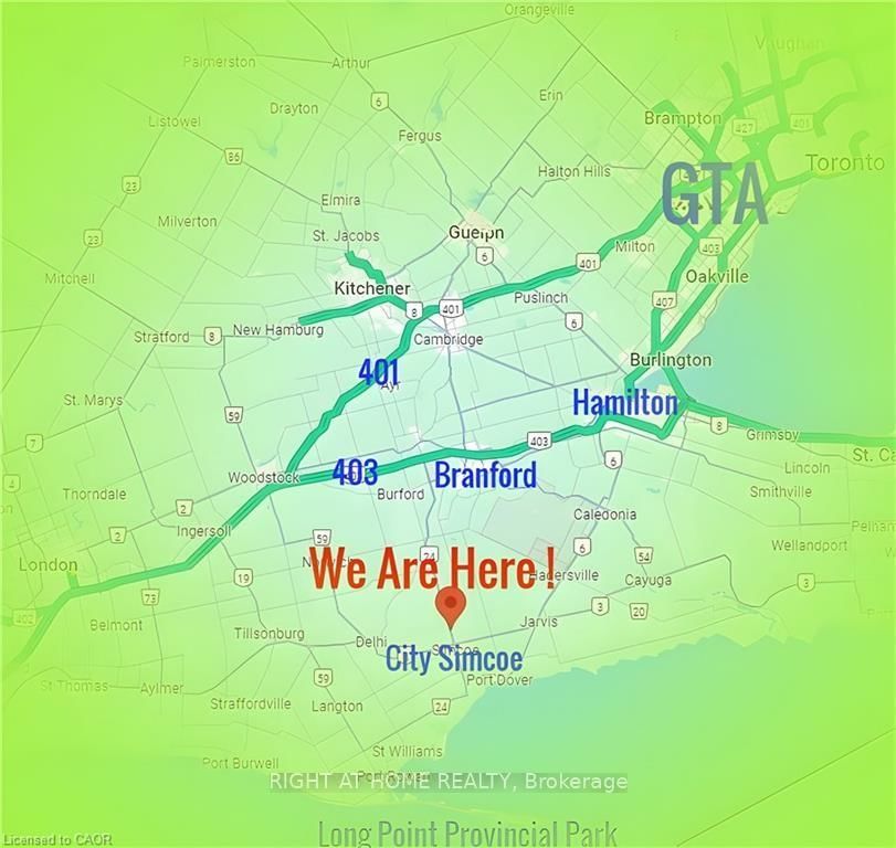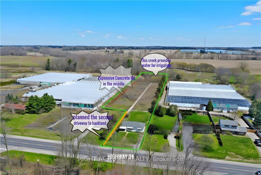Prime 2-acre investment opportunity located on high-exposure Highway 24 in Waterford, just minutes to Simcoe, ~30 minutes to Brantford, and under 1 hour to Hamilton. The Bungalow on 2474 Highway 24 null W has 3 bedrooms, 2 bathrooms, and is located on a 681 x 70 ft lot in the community of Townsend . This level, fully fenced parcel offers excellent accessibility with a wide concrete driveway and strong future potential for an additional farm access .Featuring fertile sandy loam soil and a scenic creek at the rear, the property is well-suited for a variety of income-generating uses, including greenhouse operations, nursery/garden center, hobby farm, landscaping yard, contractor shop, or agri-related business. Ample space to construct outbuildings such as workshops, barns, or greenhouses. Full services available: natural gas, hydro, and high-speed internet-ideal for both residential and commercial-style rural operations. Zoning and location provide strong appeal for live/work setups and small business expansion. Improved with a 3-bedroom, 2-bath bungalow (approx. 1,012 sq ft main level) plus a bright basement with large windows. Significant renovations already completed (approx. 85%), including electrical updates, wall improvements, and new pump system. Property sold "as is," offering value-add potential for investors or end users. Rare opportunity to secure a versatile rural asset with excellent exposure, infrastructure, and multiple income streams.