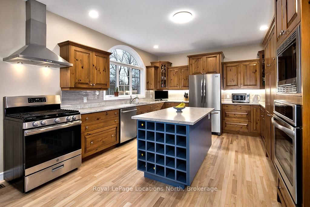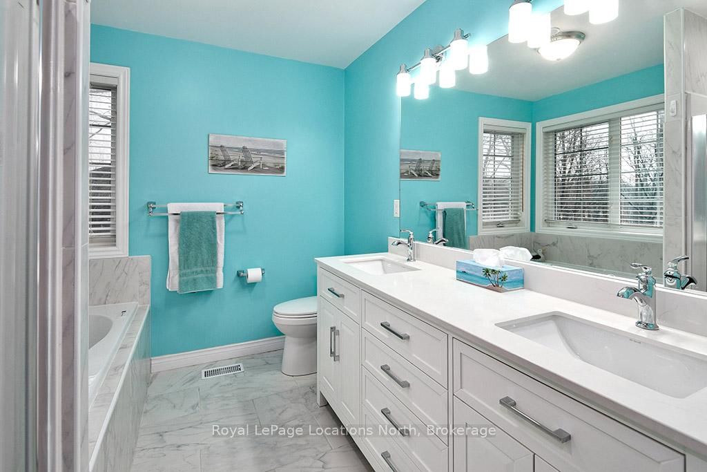 Where Every Season Beckons - And Every Detail Delivers. The 2-Storey on 120 Wards Road has 4 bedrooms, 4 bathrooms, and is located on a 208 x 75 ft lot in the community of Blue Mountains . Perfectly positioned between Collingwood and Thornbury, this exceptional family home places you minutes from The Peaks, Alpine, and Craigleith ski clubs, steps to the Georgian Trail, and just across the road from Georgian Bay Public Access. Bike the Georgian Trail into town in summer, snowshoe through the forest in winter, paddle at sunrise in fall - this is four-season living at its finest. Set on a lush, private lot over 200 feet deep, surrounded by mature trees and protected land with ski hills framing the distance, this dead-end road retreat offers rare tranquility without sacrificing convenience. Charming gardens and a welcoming front porch set the tone - your morning coffee has never had a better backdrop. Inside, soaring cathedral ceilings anchor a generous great room that flows seamlessly into the eat-in dining area and chef's kitchen, complete with warm, wooden cabinetry and ample prep space for entertaining after a day on the slopes or trails. A 2-piece powder room, laundry, and oversized double garage complete the main level. Upstairs, the primary suite is a true sanctuary - featuring a recently updated spa-inspired ensuite with soaker tub, glass shower, and double vanity, plus a private walk-out balcony. Two additional bedrooms share a 4-piece bath, while a second primary suite with its own ensuite offers ideal flexibility for in-laws, teens, or guests craving their own retreat. The lower level rounds out the package with a dedicated gym area, two versatile bonus rooms perfect as a den, office, or second living space, and generous storage throughout. Too many upgrades to list - highlights include furnace/AC (2019), whole-home generator (2023), large, new back deck (2024), updated appliances, refined finishes, and more. This home has been thoughtfully maintained and improved for true turn-key living.This is more than a home - it's a lifestyle address.