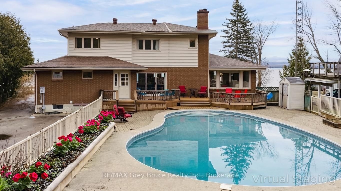 YOU AREN'T GOING TO WANT TO MISS THIS ONE! Situated on a quiet street in a highly sought-after neighbourhood just outside the city limits, this distinguished 4 + 2 bedroom, 4-bathroom residence offers exceptional 180-degree views of Georgian Bay and a refined blend of comfort, functionality, and lifestyle appeal. The 2-Storey on 122 Cottage Lane has 6 bedrooms, 4 bathrooms, and is located on a 120 x 120 ft loton .50-1.99 acres in the community of Georgian Bluffs . The well-appointed layout is designed to accommodate both family living and entertaining, featuring generous principal rooms, a double car garage, and a spacious lower level with excellent potential for an in-law suite. The outdoor space is equally impressive, showcasing a beautifully updated inground pool and a substantial 20 X 27 detached shop, ideal for additional storage, hobbies, or workspace. Recent mechanical upgrades, including a new furnace and air conditioning system installed in 2025, provide added confidence and efficiency. This is a rare opportunity to acquire a turnkey property in a prime location offering both seasonal privacy and panoramic waterfront views.