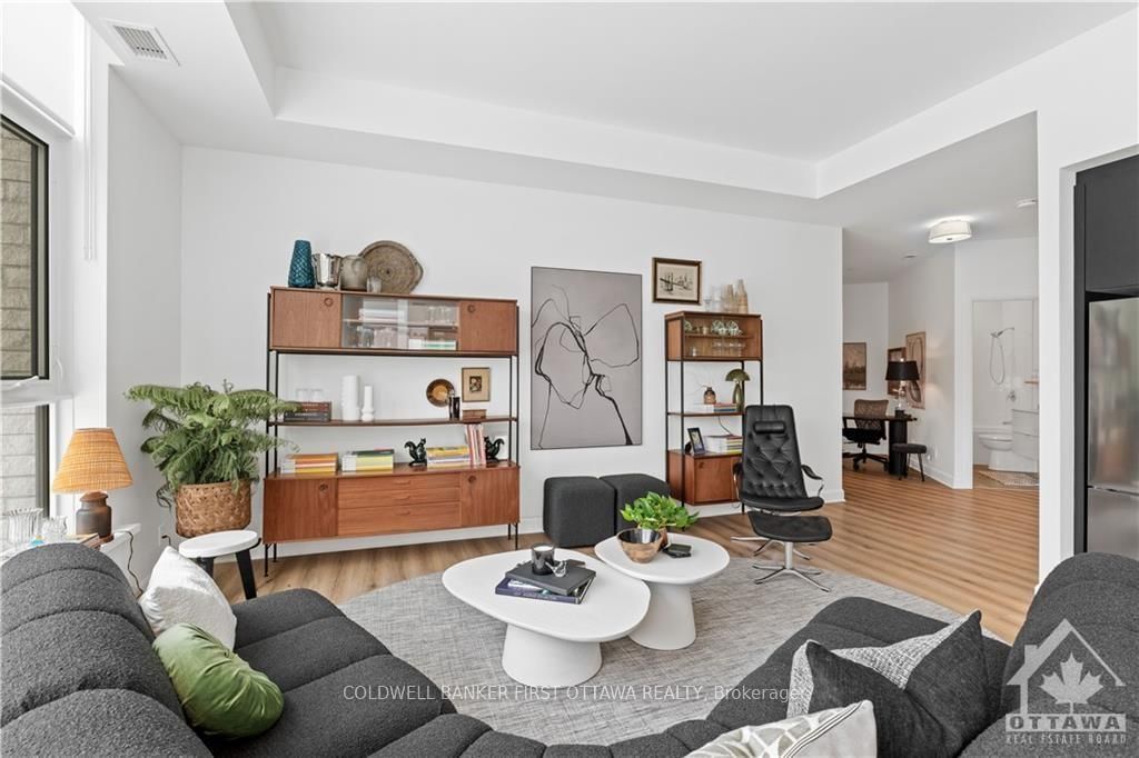 A location unlike any other in Canada's Capital City. The Apartment on 402-115 ECHO Drive has 2 bedrooms, 2 bathrooms, and is located in the community of Ottawa East . Situated directly along the famed Rideau Canal, ECHO offers discerning residents a stylish, sophisticated lifestyle without compromise. This 4TH floor residence offers 2 bedrooms, 2 bathrooms across 940SF of refined living space plus a large 112SF balcony. All residences are dressed to the highest standards and feature expansive windows, Irpinia cabinetry and window coverings. Residents benefit from underground parking with EV charging, keyless entry and unlimited WIFI while building amenities include a gym, social lounge and a one of kind rooftop patio with unparalleled Canal and City views. Pet friendly, smoke free building. Parking and storage available at an extra cost. It's time to LOVE where you LIVE. AVAIALBLE JUNE 1. Photos are of the model unit.