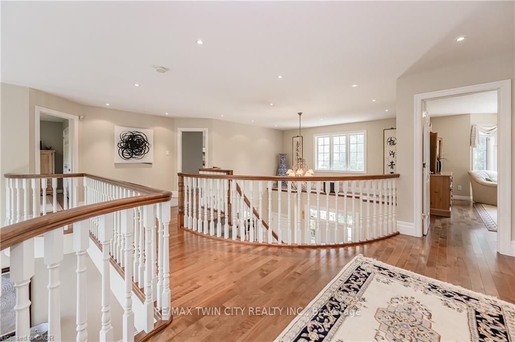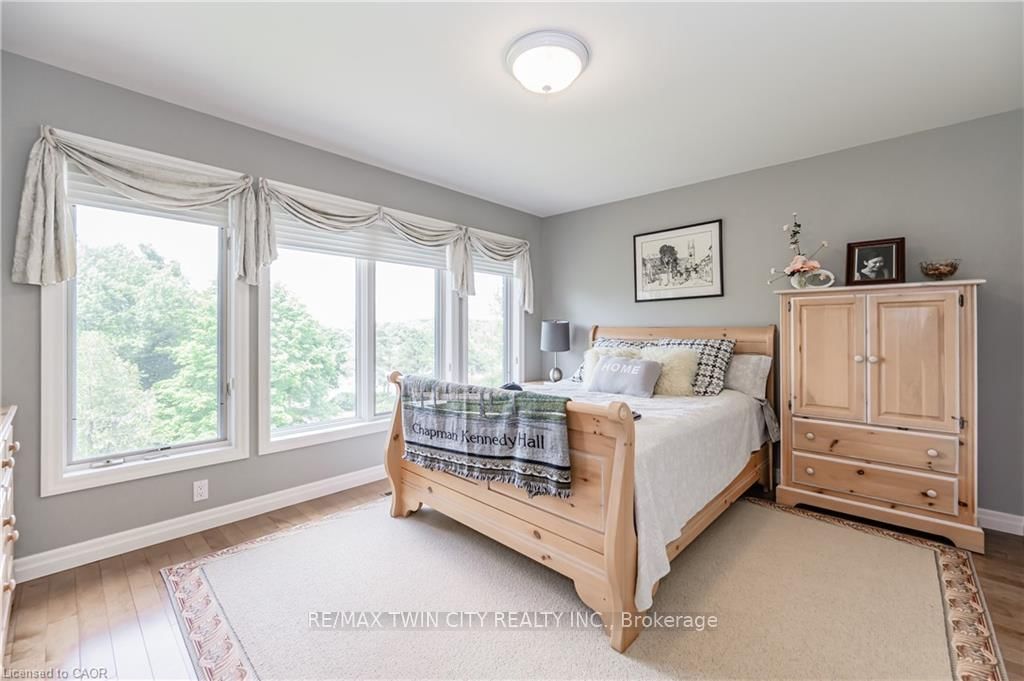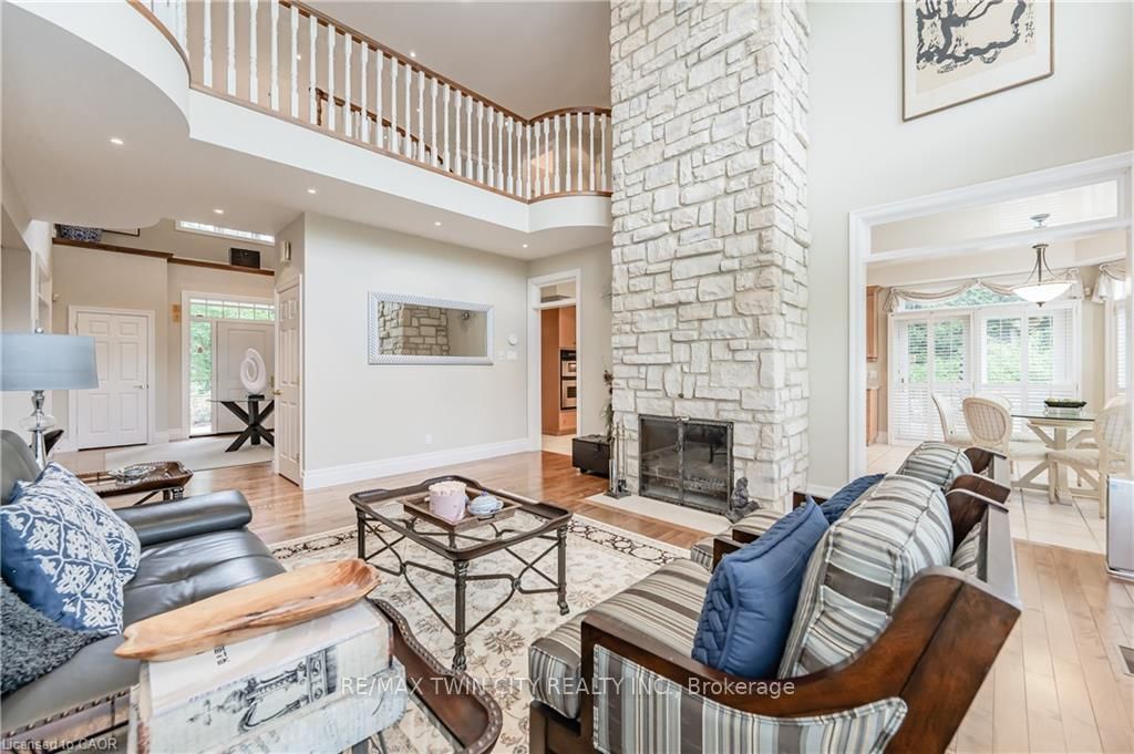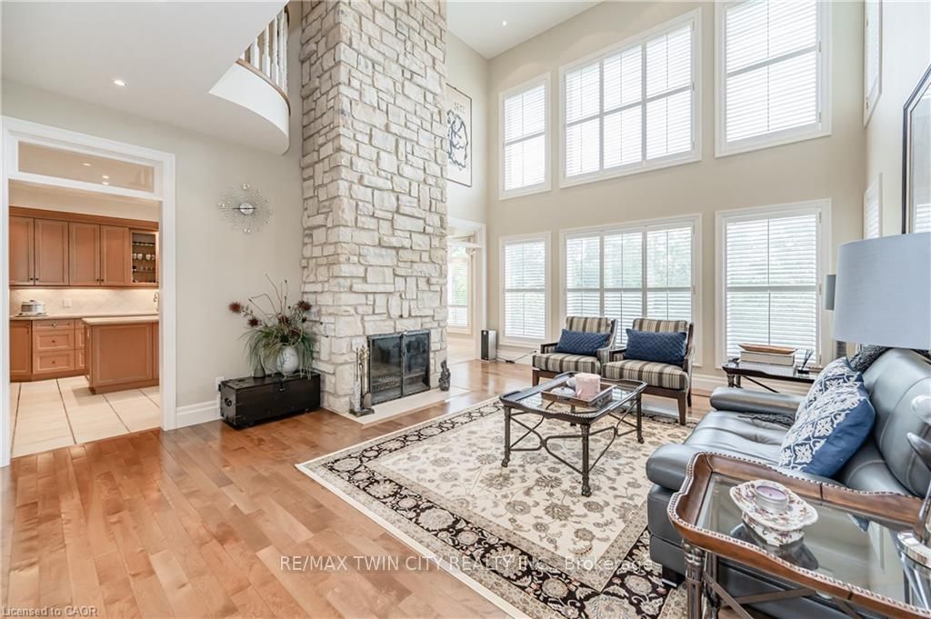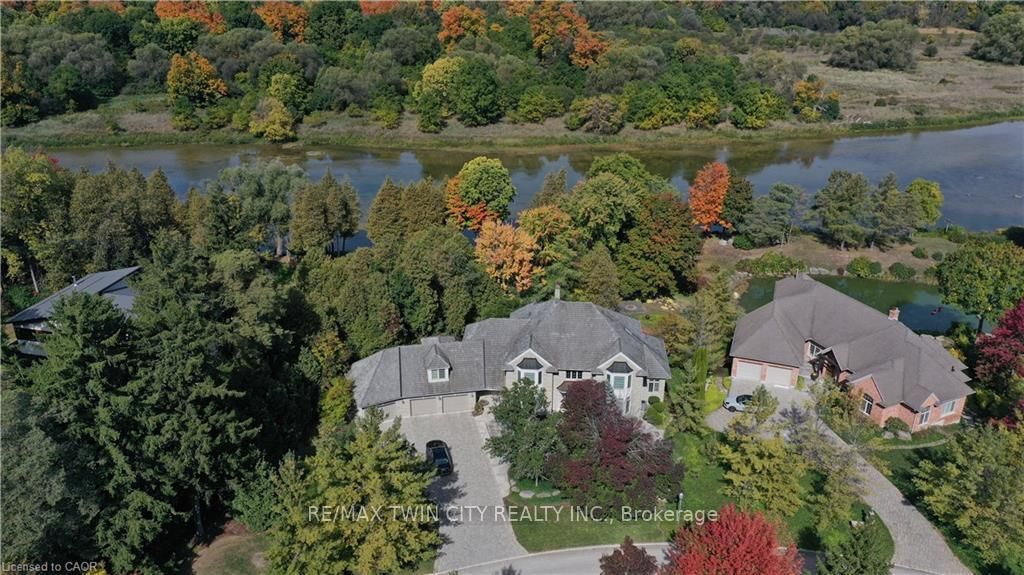 Discover refined living in the prestigious River Oak Estates-where timeless design meets an extraordinary natural backdrop. The 2-Storey on 338 River Oak Place has 7 bedrooms, 6 bathrooms, and is located on a 320 x 150.62 ft lot in the community of . Set on a lush half-acre lot backing directly onto the Grand River, this 6,000+ sq. ft. residence captures breathtaking views of the water, pond, and Grand River Trail. Thoughtful landscaping enhances its privacy and curb appeal, creating a truly peaceful setting. Inside, sophistication unfolds across three levels, with 5+2 bedrooms and 6 bathrooms offering comfort and flexibility for family and guests. The grand foyer opens to an elegant staircase and sun-filled formal living and dining rooms-ideal for entertaining large gatherings. The kitchen, complete with an oversized island and casual dining space, extends to a spacious deck overlooking the river. A stone wood-burning fireplace anchors the family room, where floor-to-ceiling windows frame the scenic outdoors. The main floor suite is a private retreat featuring a gas fireplace, walk-in closet, and balcony access. Its luxurious ensuite includes dual vanities, a soaker tub surrounded by windows, and a glass walk-in shower. Upstairs, you'll find four additional bedrooms, a home office with custom built-ins, and a dedicated media room. The lower level offers two more bedrooms, a 3-piece bath, wet bar, games area, and walkout access to a stone patio and landscaped gardens-perfect for indoor-outdoor living. Blending comfort, elegance, and a rare connection to nature, this River Oak Estates home delivers a lifestyle as remarkable as its setting.