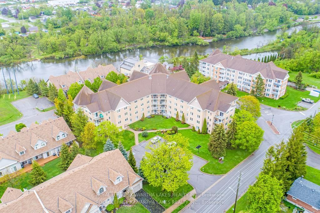 Welcome to the waterfront community of Rivermill Village! Come live your retirement dreams in this 1261 sq ft, 2 bedroom/2 bath Penthouse apartment. The Apartment on 404-51 Rivermill Boulevard has 2 bedrooms, 2 bathrooms, and is located in the community of Lindsay . Open concept Living/Dining Room with corner gas fireplace and walkout to balcony. Insuite laundry and Primary bedroom with walk-in closet and 4 pc ensuite bath. Enjoy the many amenities including an exercise room, party/meeting room, indoor pool, rooftop deck/garden, tennis, lots of visitor parking & so much more! Stroll the park like gardens or sit & watch the boats go by on the river. Pet Friendly (under 30lbs) & Condo fees include heat, hydro, water, central air, common elements, building insurance & parking. Docking available on the Trent for added fee.