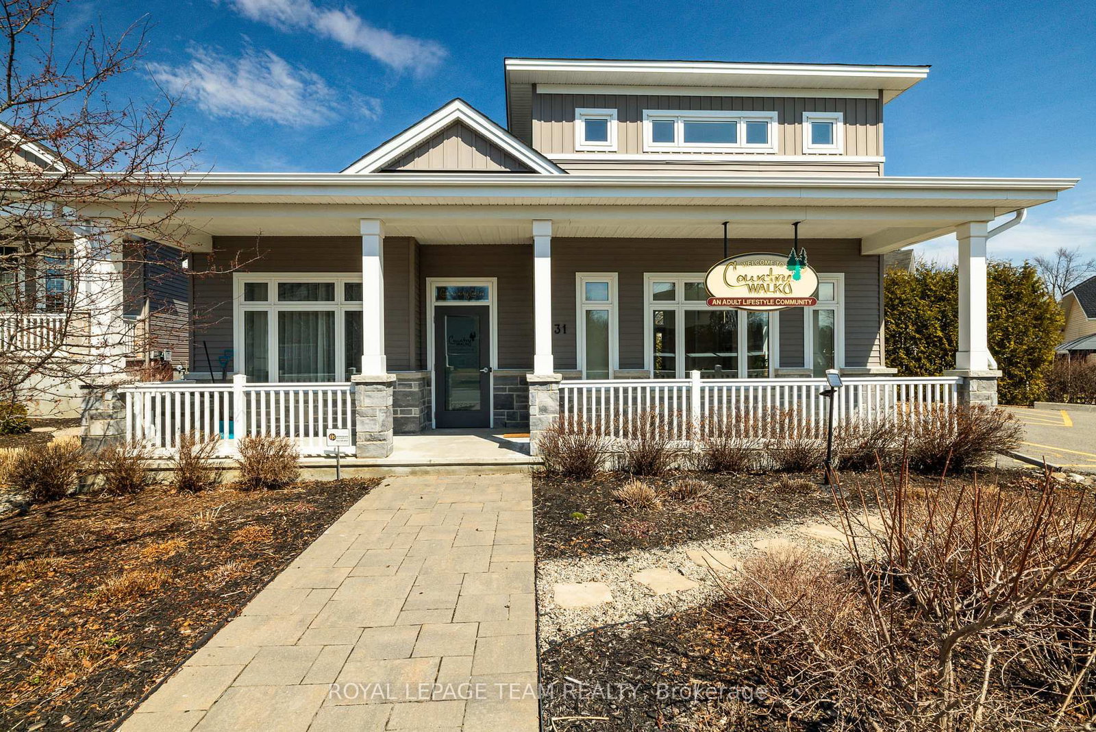 This stunning 3-bedroom, 3-bathroom row house (townhome) offers a perfect blend of modern convenience and community living within Kemptville's sought-after Country Walk community. The Bungalow on 156 Oxford Street W has 2 bedrooms, 3 bathrooms, and is located on a 110.01 x 25 ft lot in the community of Kemptville . The home's layout features an open-concept main floor, enhanced by hardwood flooring in the main living areas. A welcoming front porch leads into the foyer, which contains a closet and a full 3 piece bathroom across from the guest bedroom. The open-concept design flows into the beautiful kitchen, with a breakfast bar, seamlessly connecting to a spacious living/dining combination. The main level includes easy access to a single-car garage right beside the main floor laundry room. The spacious primary suite on the main level is a private retreat, featuring a large walk-in closet and a 3 piece ensuite. The lower level provides additional living space, with a recreation room featuring a natural gas fireplace, a third 4 piece bathroom. Perfect for when family decides to visit. There is a generous storage area. Country Walk, built by Urbandale Construction, is an exclusive Adult Lifestyle Community of freehold Bungalow Town-homes that blends country living with proximity to local amenities. Residents have access to a dedicated clubhouse. Information regarding the clubhouse interior and activity calendar are included in the listing. Access to the Country Walk Community Centre (CWCC) building, when not in use, is managed by community contacts. Please call the listing agent in advance of your showing if you will require access. The community has an annual association fee of $300.