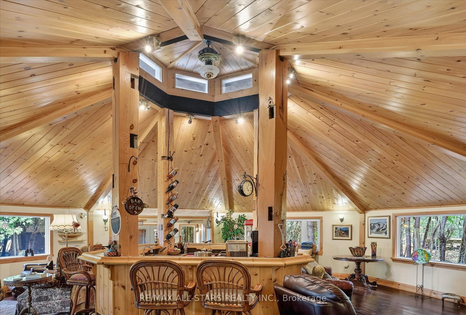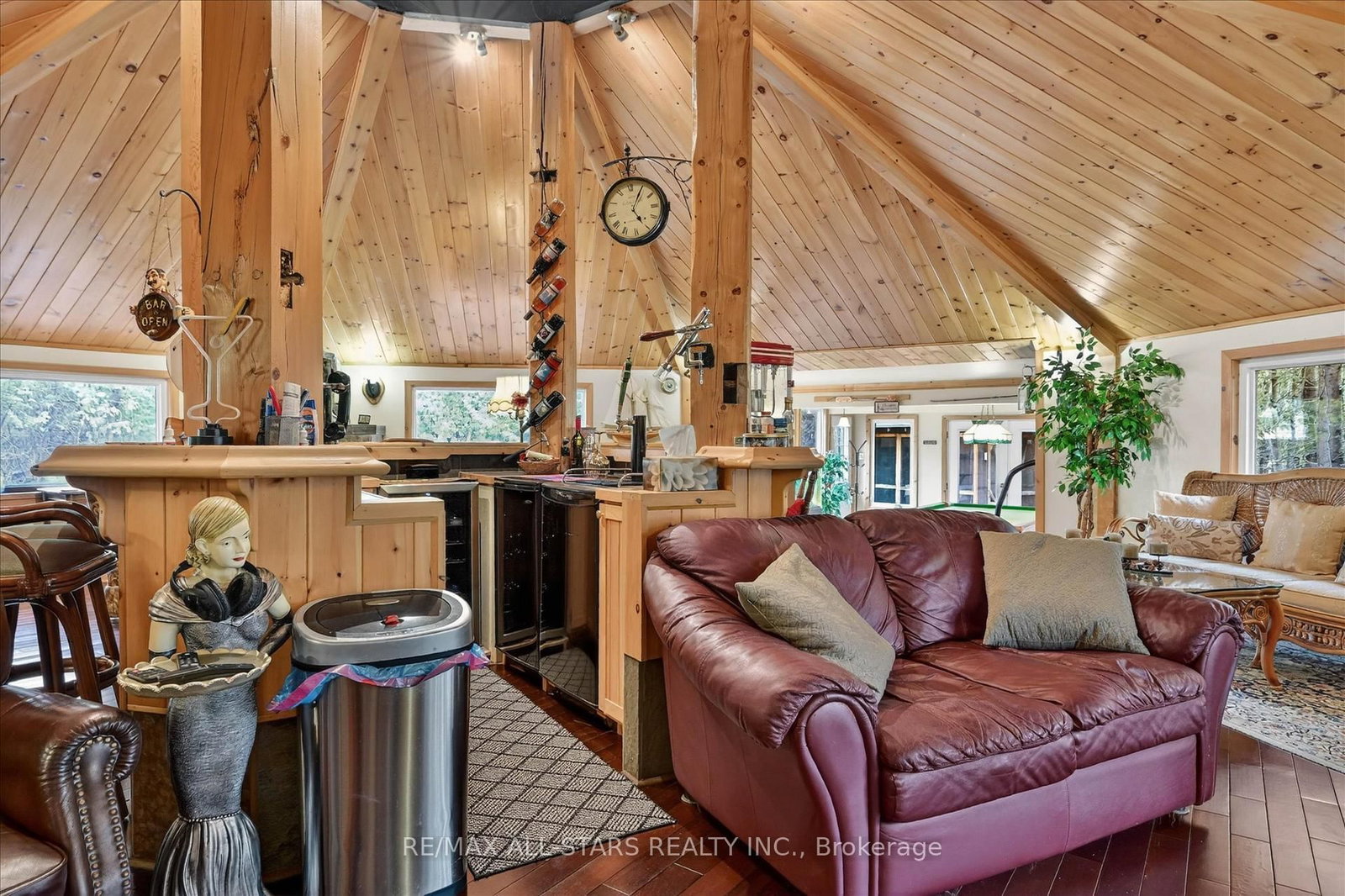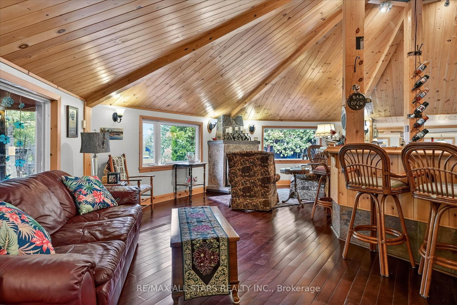 Welcome to a truly one-of-a-kind waterfront estate on Lake Scugog-where luxury living meets exceptional income potential in an unforgettable setting. The 2-Storey on 41 Cedar Crescent has 1 bedrooms, 3 bathrooms, and is located on .50-1.99 acres in the community of Manvers . Set on over 3/4 of an acre of private 95 ft of shoreline and offering over 3,500 sq ft PLUS of living space, this remarkable property is ideally suited for a large family, multi-generational living, or a possible turnkey Airbnb or Boutique Bed & Breakfast-all just minutes to Port Perry and Lindsay. At the heart of the home, the octagon-shaped great room is a true architectural showpiece, featuring cathedral post & beam ceilings, a stunning fireplace, and direct views of the lake. A full bar stands as the Centerpiece of this space, creating the ultimate atmosphere for entertaining and gathering. The home offers 5 uniquely themed bedrooms, each with its own fireplace, adding charm, warmth, and a memorable guest experience. A chef-inspired kitchen with two stoves is perfectly designed for hosting, while the formal dining room with fireplace provides an elegant setting for intimate dinners and special occasions. The games room/sunroom with floor-to-ceiling windows invites natural light and offers seamless connection to the outdoors. Step outside and embrace waterfront living with western exposure-enjoy long sunny days on the dock and unwind in the evenings with beautiful sunset views over the water. The enclosed gazebo with hot tub offers year-round enjoyment in total privacy. Additional features include a large Gas heated garage/workshop, a drive shed for additional storage, and the inclusion of much of the furnishings and décor, making this a true turnkey investment opportunity. Located on the Trent-Severn Waterway, this is your opportunity Whether your envisioning a luxury retreat , income property or an unforgettable family compound this is a rare offering that simple cannot be replicated. Live Where other Vacation ,Welcome Home!