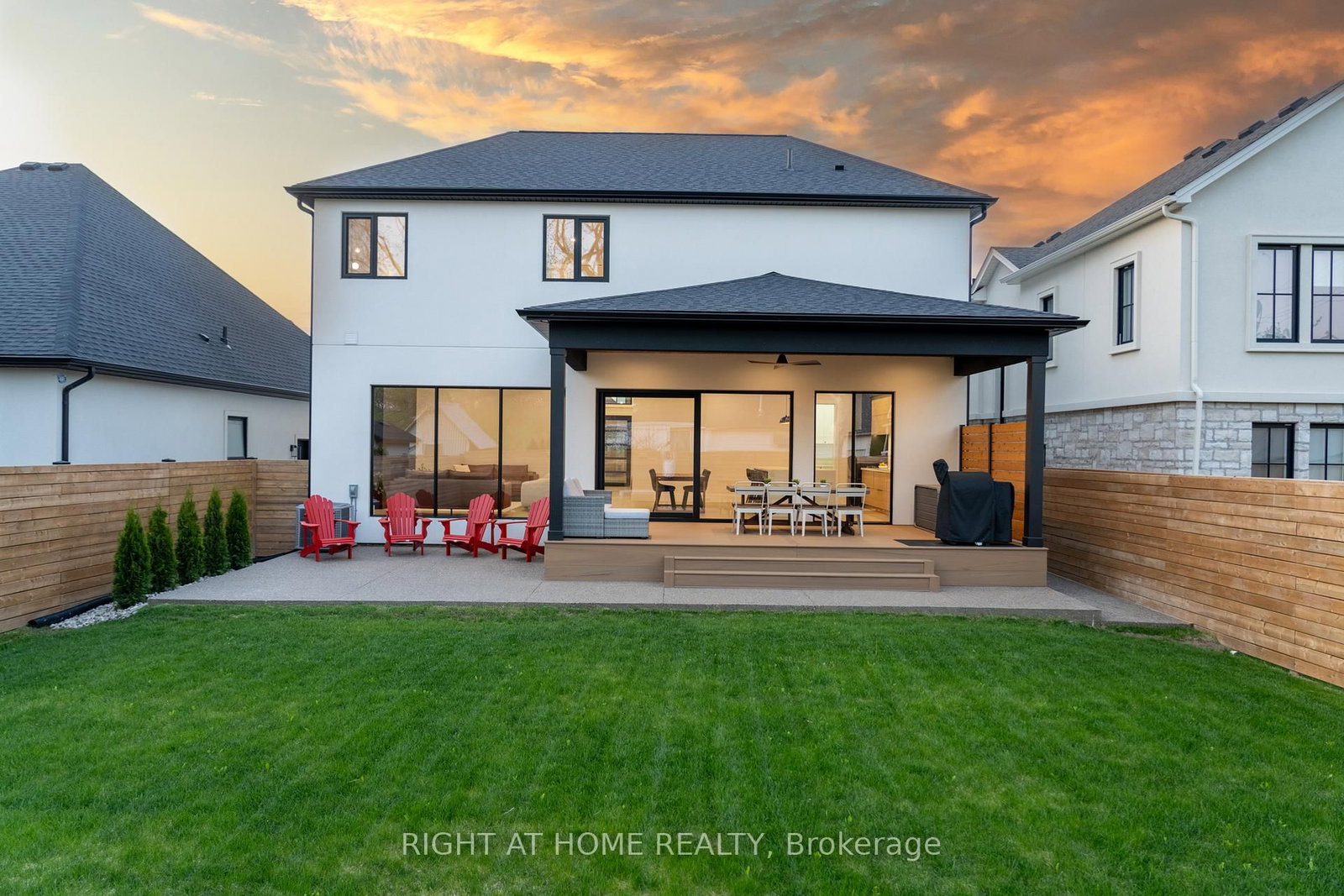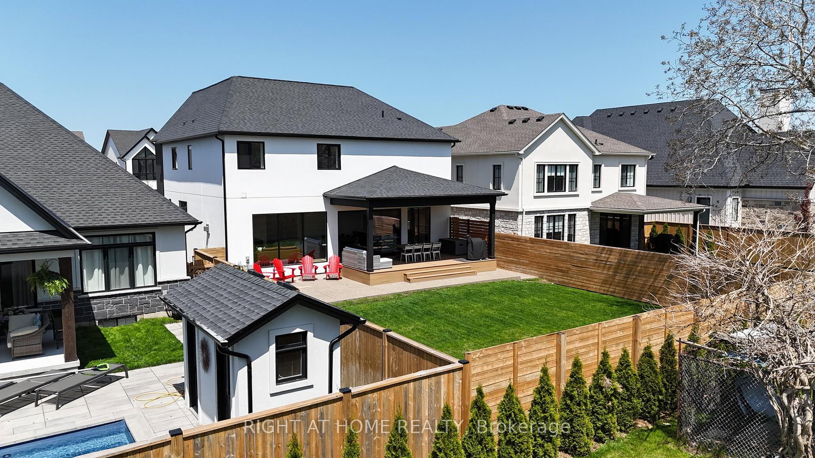 Welcome to 102 Millpond Rd, a stunning custom built home offering over 4,300 sq ft of luxurious living in the heart of prestigious St. The 2-Storey on 102 Millpond Road has 4 bedrooms, 5 bathrooms, and is located on a 125.66 x 46.87 ft lot in the community of St. Davids . Davids. The striking exterior blends stone, sleek glass, hardie board, stucco & a concrete driveway with exposed aggregate - all creating a clean, upscale authentic with lasting durability. Step inside to discover a modern open-tread staircase, 10-ft ceilings, wide-plank engineered hardwood flooring & European style tilt-and-turn windows. The designer kitchen is the showpiece with premium built-in appliances, a 10-ft quartz waterfall island, seamless slab backsplash, & a walk-in pantry with built-in cabinetry. An oversized sliding door opens to a large covered composite deck with spectacular vineyard views, a lower patio, in-ground irrigation & a fully fenced, professionally landscaped yard - perfect for entertaining or serene relaxation. Main floor highlights include a bright dining & living area with a chic, minimalist gas fireplace, private office enclosed by a floor-to-ceiling glass wall, a laundry room with integrated storage & convenient access to the double car garage. Upstairs, the primary suite offers a spa-like retreat with a soaker tub, oversized walk-in rainfall shower, dual vanity & a walk-through closet complete with custom shelving. Three additional bedrooms each feature their own ensuite access, providing comfort and privacy for family or guests. The fully finished basement boasts a sprawling rec room with show stopping 100-inch electric fireplace with a granite stucco surround, luxury vinyl flooring, a 5th bedroom & a stylish full bathroom. Ideally located just minutes from local coffee shops, award-winning wineries, top-rated golf courses & the charm of Old Town Niagara-on-the-Lake.