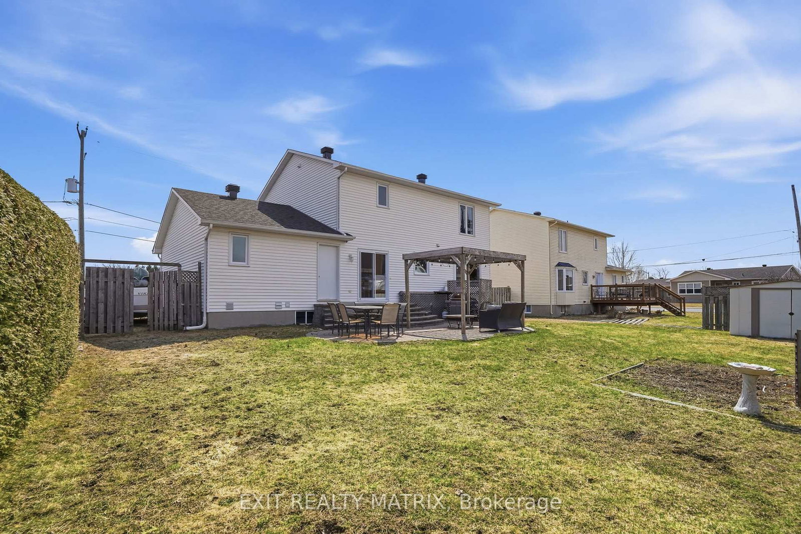 OPEN HOUSE Sun Apr 19, 11-1pm. The 2-Storey on 144 Centenaire Street has 3 bedrooms, 3 bathrooms, and is located on a 98.85 x 68.9 ft lot in the community of Embrun . Welcome to this beautifully maintained 2-storey home in the heart of Embrun-a growing, family-friendly community just minutes from schools, parks, shopping, and all everyday amenities. From the moment you arrive, you'll appreciate the pride of ownership that shines throughout. Step inside to an inviting foyer that leads into a bright and functional main level filled with natural light from large windows. The spacious kitchen offers plenty of cabinetry and counter space, perfect for family living and entertaining, and flows seamlessly into the eating area with patio doors leading to your backyard. A formal dining room with a charming bay window and a comfortable living room create the perfect setting for gatherings. A convenient 2-piece bathroom, main floor laundry, and attached garage with inside entry add everyday practicality. Upstairs, the generous primary bedroom features a walk-in closet and direct (cheater) access to the full 4-piece bathroom. Two well-sized bedrooms complete the upper floor. The fully finished lower level expands your living space with a large recreation room, an additional bedroom, and a 3-piece bathroom-perfect for guests, a home office, or a growing family. Step outside to your private backyard oasis, offering a large partially fenced yard, a patio with pergola, and plenty of space to relax, entertain, and enjoy the outdoors. A move-in-ready home that truly checks all the boxes-don't miss your chance to call this Embrun gem your own!