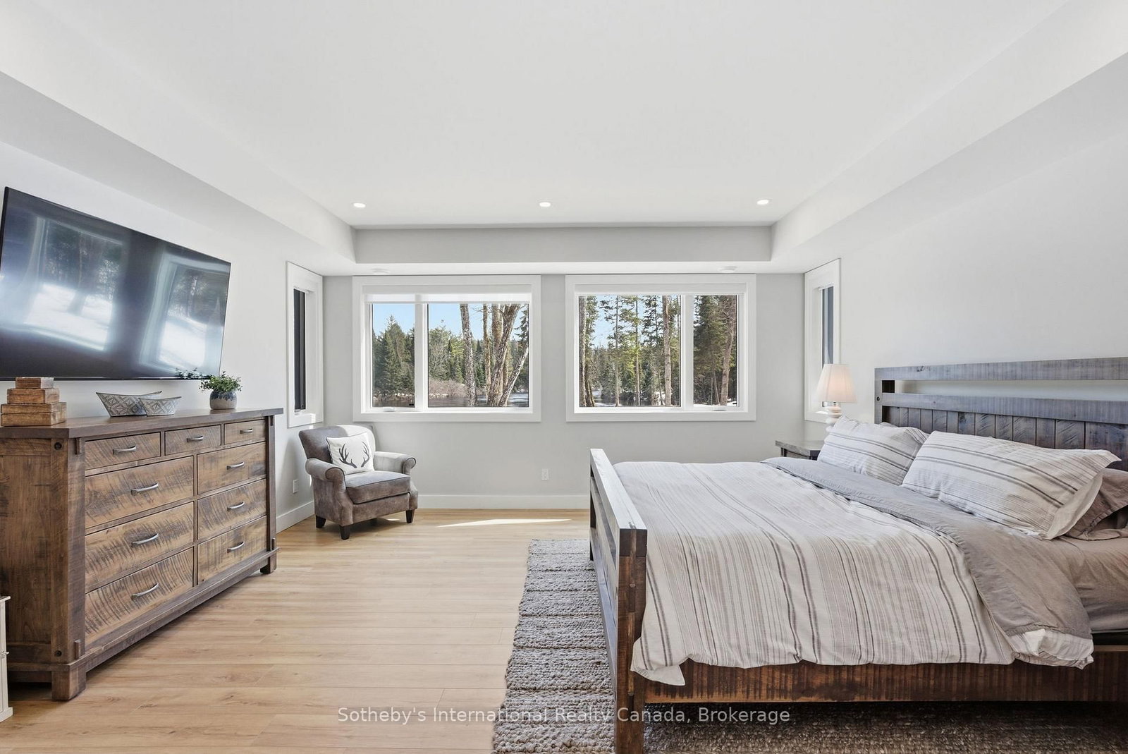Set along a calm stretch of the North Branch of the Muskoka River, this newly built, single-level ranch style bungalow offers a functional layout, strong privacy, and a setting that's easy to enjoy year-round. The Bungalow on 26 Mcgregor Way has 4 bedrooms, 4 bathrooms, and is located on a 300 x 328.08 ft loton .50-1.99 acres in the community of Macaulay . Situated on one of the widest sections of the river along this stretch, between two sets of falls, there is plenty of space to enjoy the water safely, with the ability to boat locally and spend time at nearby Balsam Chutes. With gentle water flow, this section of the river is well-suited for both adults and kids to swim, making it ideal for family use. Built in 2025 and offering approximately 3,100 sq ft of living area, the home features 4 spacious bedrooms and 4 bathrooms. The layout is thoughtfully designed with the primary suite set on one side of the home with views of the water, and three additional bedrooms on the opposite side, providing separation and flexibility for families or guests. The main living area is bright and open, with a granite stone fireplace feature and a practical kitchen layout with a large island that includes ample cupboard and storage space, including a walk-in pantry. Radiant in-floor heating runs throughout the home, supported by propane forced air, central air conditioning, and on-demand hot water, and a Generac backup generator for added peace of mind. Outdoor living has been well considered, with a dedicated entertaining area complete with propane BBQ hookup, Tv set up, and space to gather. The lot itself is predominantly level and well-treed, offering a high degree of privacy. A standout feature of this property is the two triple garages-a heated and air-conditioned attached garage with in-floor heat, plus a detached triple garage that is heated, insulated, and powered. A detached shed with power provides additional storage. Located on a municipally maintained year-round road between Port Sydney and Bracebridge, this property is well suited for full-time living or a recreational retreat.