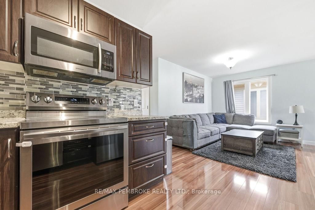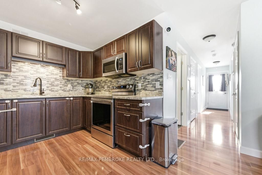 Move in ready semi detached 2 + 2 bedroom, 2 bathroom home. The Bungalow on 292 Mckenzie Street has 2 bedrooms, 2 bathrooms, and is located on a 104 x 27.49 ft lot in the community of Pembroke . Open concept main living area, 2 bedrooms, main floor laundry, a full bath and access to the rear deck in the fully fenced backyard. The functional kitchen has plenty of cabinetry and lots of counter space. The lower level has in-law suite potential with a kitchen/dining area, living room, 2 good sized bedrooms, and a three piece bath. Fully insulated garage has direct access to the home. Last 12 months costs for gas heating: $551 and electricity: $1,570. This is a good solid house to call a home.