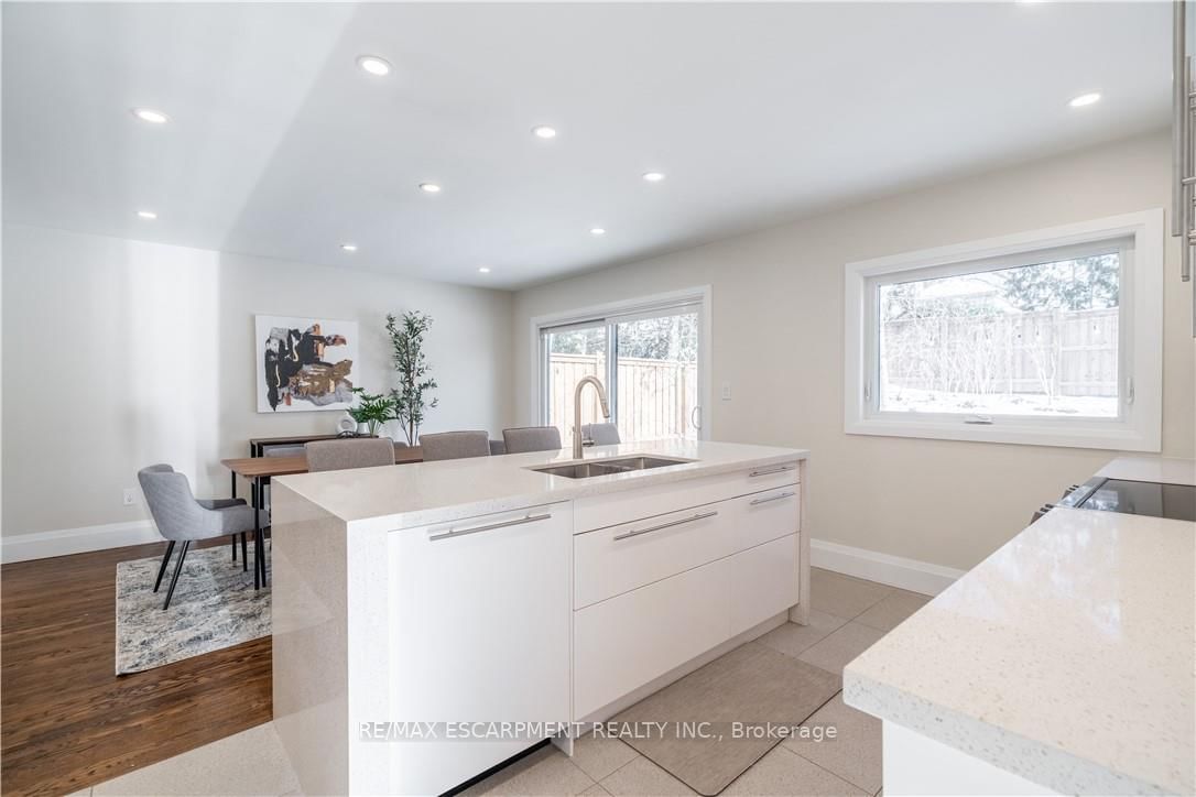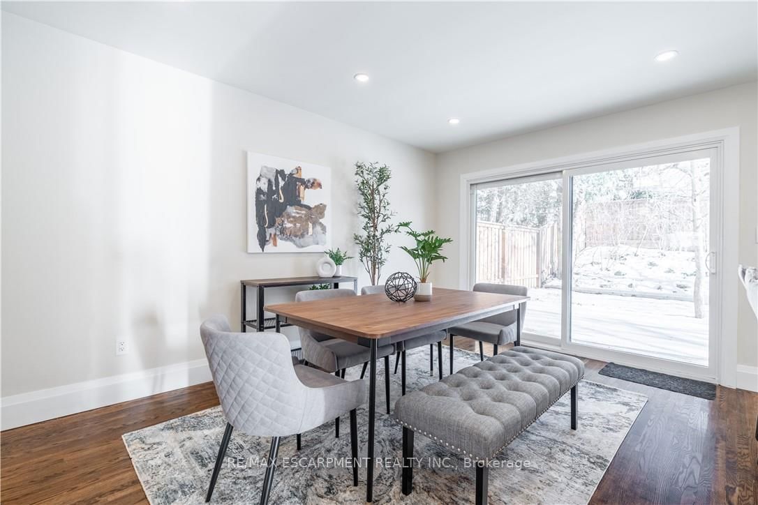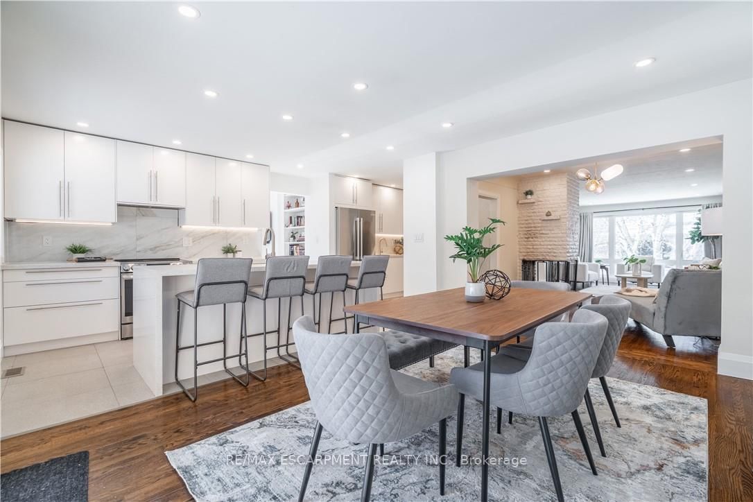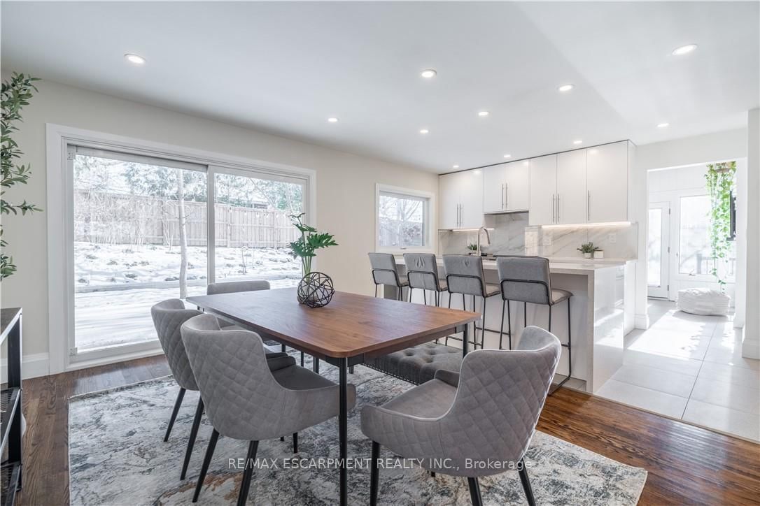 Welcome to 7 Glenmorris Drive, ideally located in one of Dundas' most desirable neighbourhoods, on a quiet dead end street! Surrounded by mature trees, quiet streets, and scenic escarpment views, this location offers the perfect balance of small-town charm and everyday convenience. The Sidesplit on 7 Glenmorris Drive has 3 bedrooms, 2 bathrooms, and is located on a 100.18 x 55.11 ft lot in the community of Dundas . Enjoy nearby parks, top-rated schools, and endless trails, all just minutes from Downtown Dundas. This solid brick sidesplit has been fully renovated with a bright, contemporary design throughout. The home features all new windows and a stunning custom kitchen with sleek tile flooring, abundant natural light, and stylish finishes. Refinished original hardwood floors add warmth and character, making the main living space both inviting and functional. Upstairs, you'll find three comfortable bedrooms, including a spacious primary bedroom, along with a large four-piece bathroom featuring a beautifully tiled custom walk-in shower. The fully renovated lower level adds valuable living space with a fourth bedroom or office, a bright three-piece bathroom, and a convenient new laundry area with a stackable washer and dryer. Step outside to a beautifully landscaped backyard featuring a wrap-around concrete patio-perfect for entertaining family and friends or enjoying quiet evenings outdoors. With its modern updates, solid construction, and exceptional Dundas location, this move-in ready home offers the lifestyle you've been waiting for.
