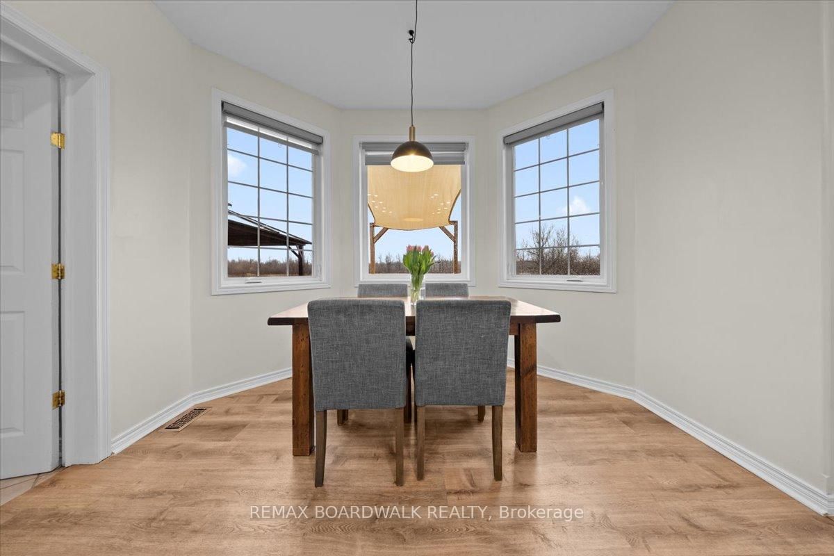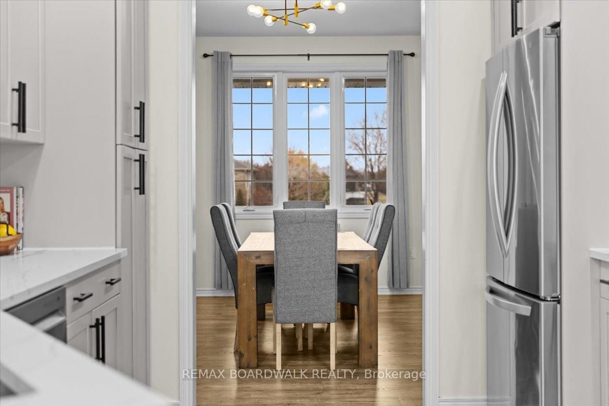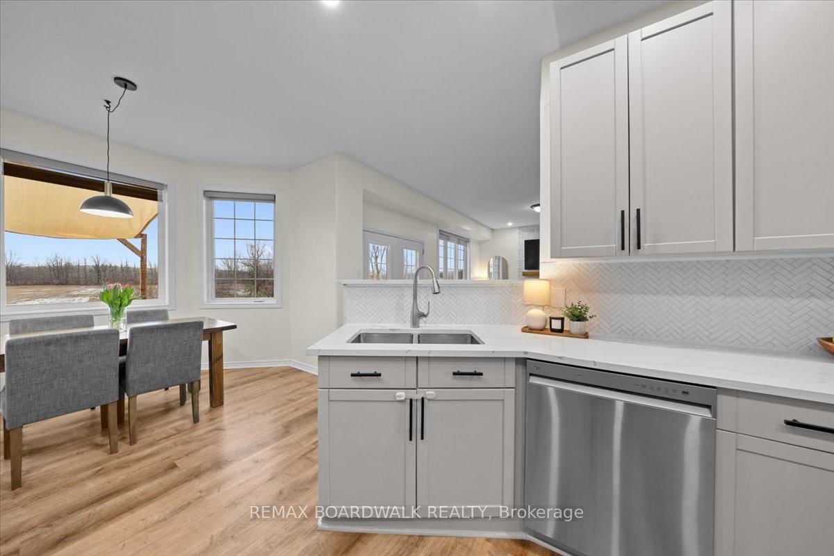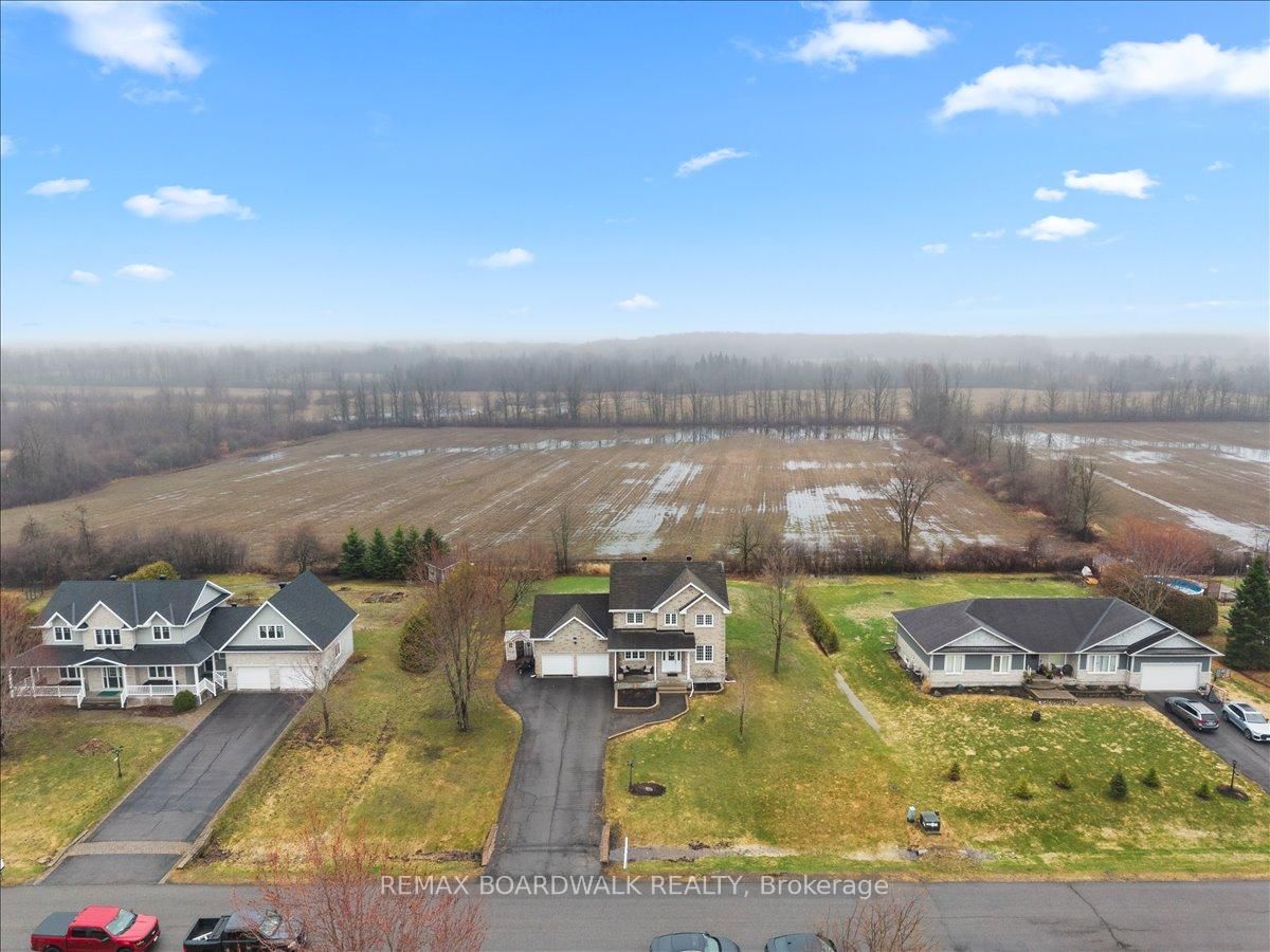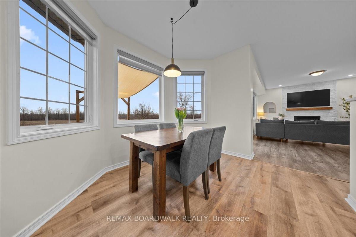 Welcome to a modern farmhouse-inspired home where thoughtful design meets everyday functionality, set on a quiet stretch of Craig Farm Dr in Metcalfe. The 2-Storey on 8044 Craig Farm Drive has 3 bedrooms, 3 bathrooms, and is located on a 194.65 x 124.67 ft lot in the community of Metcalfe . Set back from the street with a large driveway, this home offers great curb appeal with a covered front porch veranda and recessed pot lights. The double car garage features interior access, a side door, and overhead storage. Inside, a wide entry with custom hall tree, cubbies, and bench seating is perfect for busy family life. A beautiful front door with sidelights and transoms fills the space with natural light, complemented by high ceilings and luxury wide plank vinyl flooring. A versatile front room offers the ideal office or playroom, while the separate dining room with a large front window creates a welcoming space to gather. The bright corridor-style kitchen opens into a sun-filled eat-in nook wrapped in windows. Finished with wood cabinetry, granite countertops, herringbone backsplash, recessed sink, and stainless steel appliances, it blends style and function effortlessly. The living room features a stunning floor-to-ceiling stone framed gas fireplace with a natural wood mantle. Double doors lead to the backyard, extending your living space outdoors. A closed mudroom off the kitchen provides access to the laundry room, pantry, and garage. Upstairs, a large staircase window brings in natural light. Four bedrooms include a primary retreat with walk-in closet and 4-piece ensuite featuring a stand-alone soaker tub, double wide glass shower, under mounted vanity, and tile throughout. Linen closet. Main bath offers ceramic tile and a tub shower combo. The finished basement adds a rec room, gym area, office nook, and pot lights throughout, with hardwood stairs leading down. Enjoy a private backyard w/ no rear neighbours. Deck space, room to play, garden, and entertain. A home that offers space, comfort, and a lifestyle upgrade. 24h irrevocable on all offers.