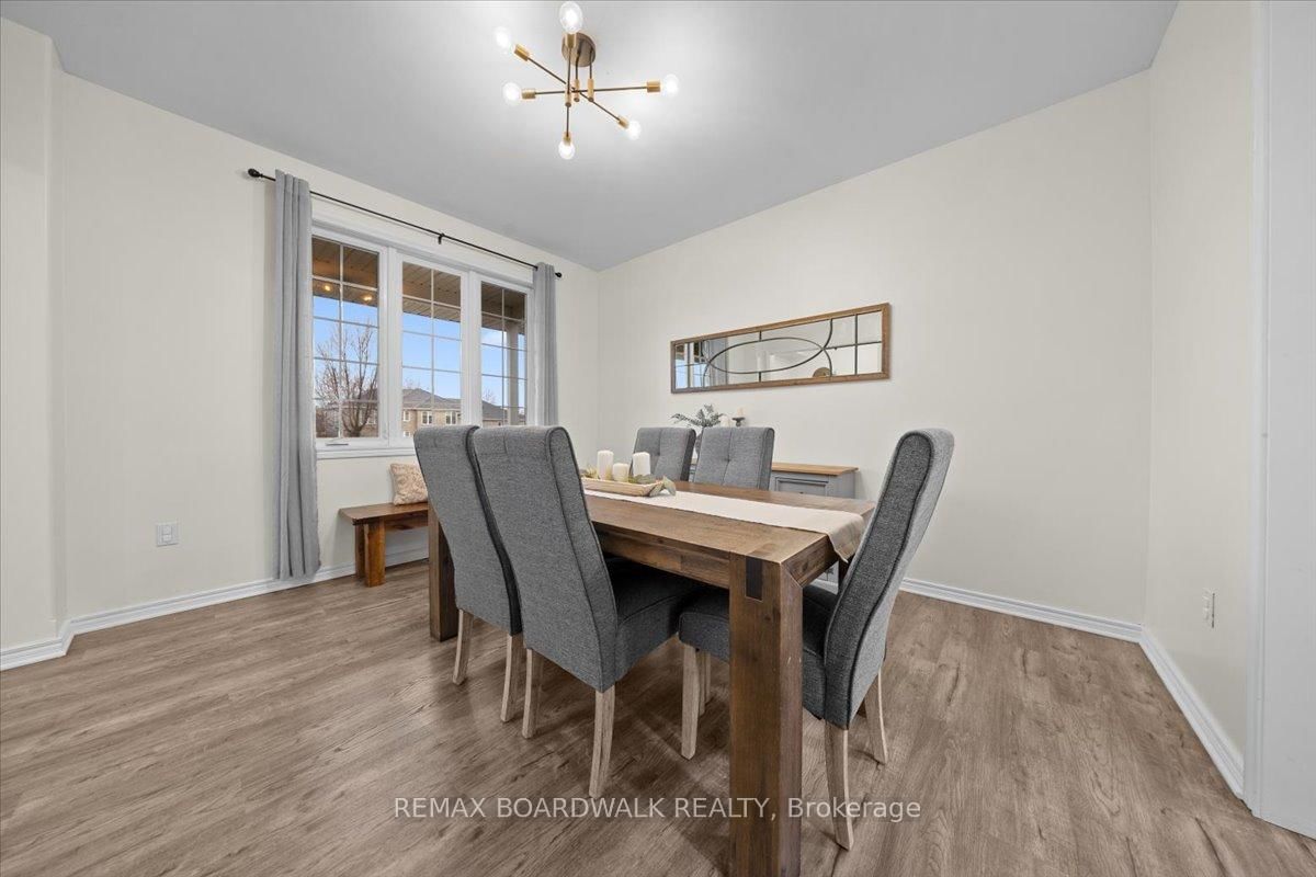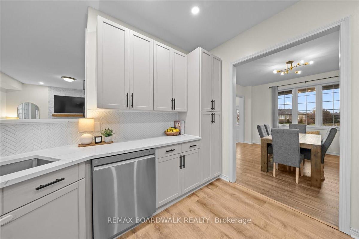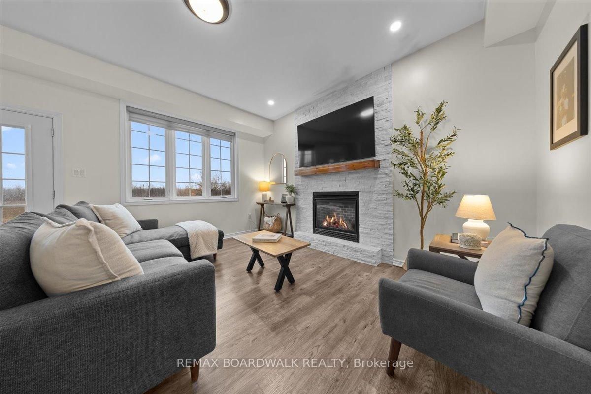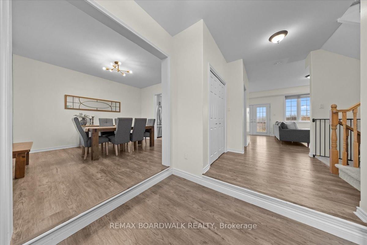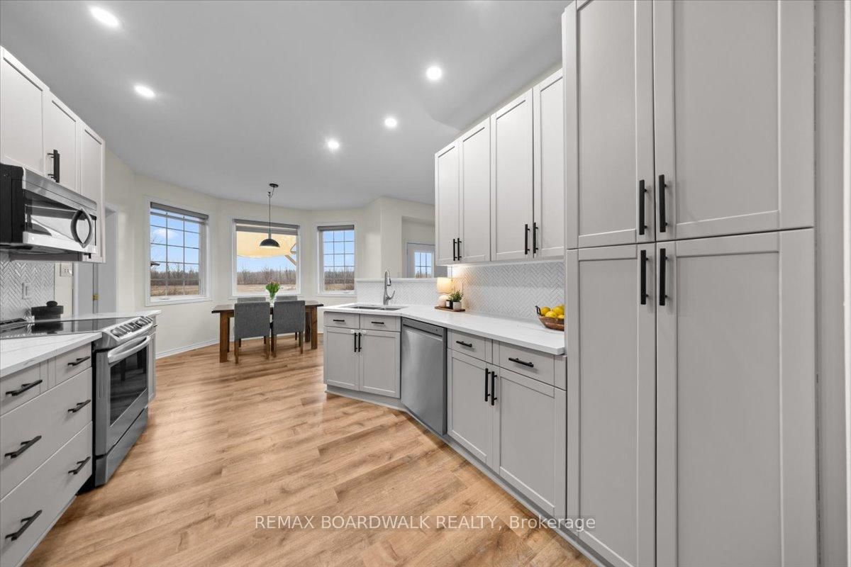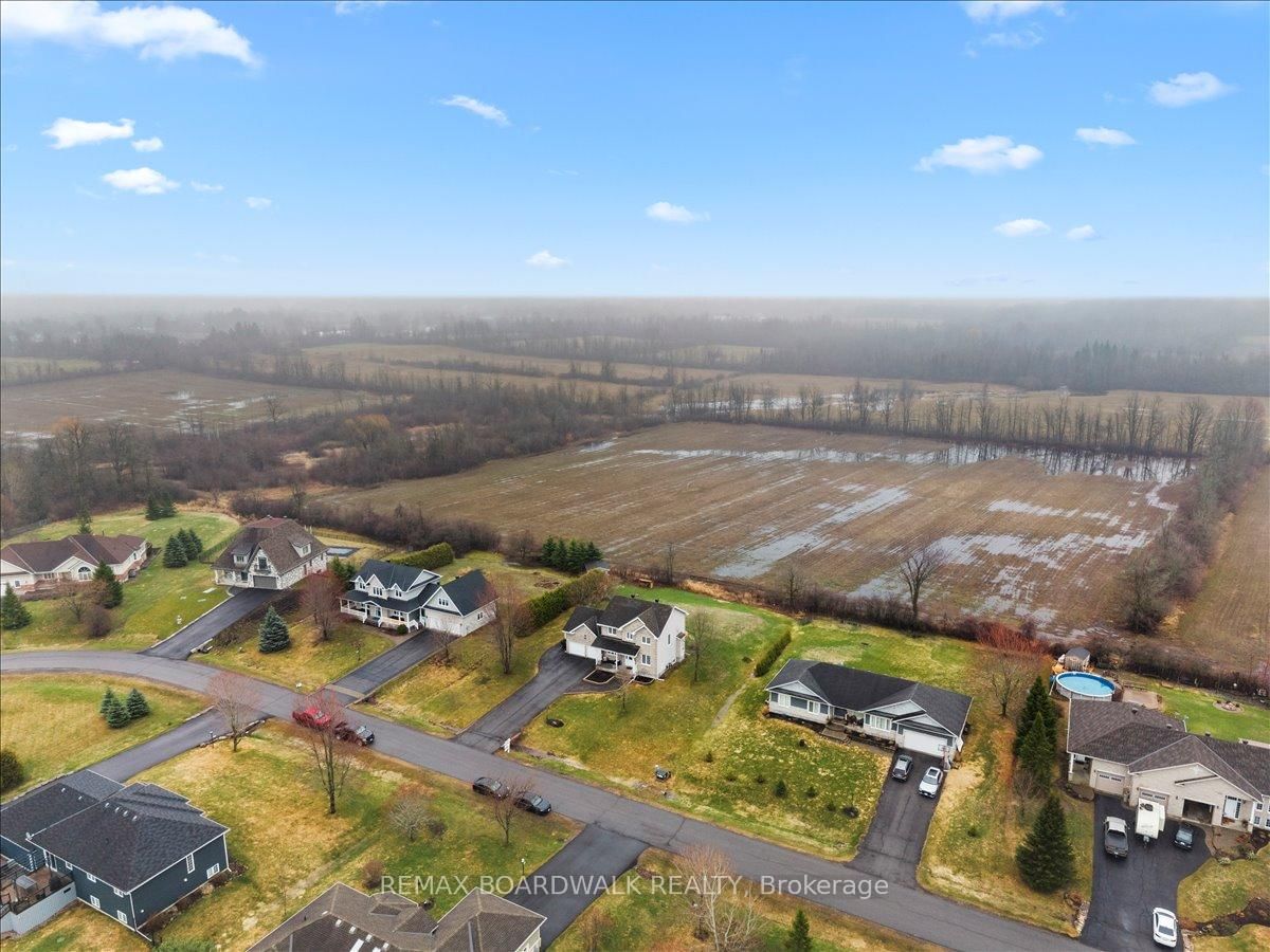 Welcome to a modern farmhouse-inspired home where thoughtful design meets everyday functionality, set on a quiet stretch of Craig Farm Dr in Metcalfe. The 2-Storey on 8044 Craig Farm Drive has 3 bedrooms, 3 bathrooms, and is located on a 194.65 x 124.67 ft lot in the community of Metcalfe . Set back from the street with a large driveway, this home offers great curb appeal with a covered front porch veranda and recessed pot lights. The double car garage features interior access, a side door, and overhead storage. Inside, a wide entry with custom hall tree, cubbies, and bench seating is perfect for busy family life. A beautiful front door with sidelights and transoms fills the space with natural light, complemented by high ceilings and luxury wide plank vinyl flooring. A versatile front room offers the ideal office or playroom, while the separate dining room with a large front window creates a welcoming space to gather. The bright corridor-style kitchen opens into a sun-filled eat-in nook wrapped in windows. Finished with wood cabinetry, granite countertops, herringbone backsplash, recessed sink, and stainless steel appliances, it blends style and function effortlessly. The living room features a stunning floor-to-ceiling stone framed gas fireplace with a natural wood mantle. Double doors lead to the backyard, extending your living space outdoors. A closed mudroom off the kitchen provides access to the laundry room, pantry, and garage. Upstairs, a large staircase window brings in natural light. Four bedrooms include a primary retreat with walk-in closet and 4-piece ensuite featuring a stand-alone soaker tub, double wide glass shower, under mounted vanity, and tile throughout. Linen closet. Main bath offers ceramic tile and a tub shower combo. The finished basement adds a rec room, gym area, office nook, and pot lights throughout, with hardwood stairs leading down. Enjoy a private backyard w/ no rear neighbours. Deck space, room to play, garden, and entertain. A home that offers space, comfort, and a lifestyle upgrade. 24h irrevocable on all offers.