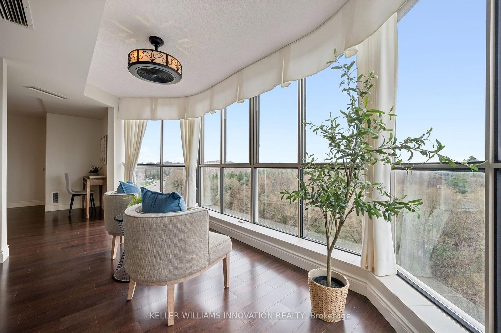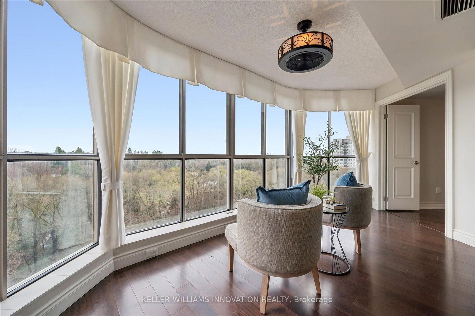 Unbelievable views from this 10th floor corner unit at the Beechmount, located in Waterloo. The 1 Storey/Apt on 1010-265 Westcourt Place has 2 bedrooms, 2 bathrooms, and is located in the community of . This gorgeous 2 bedroom, 2 bath condo has been lovingly updated with custom cabinetry, crown moulding, engineered hardwood and stone countertops. This extremely spacious unit offers a large living room, dining room (or office), plus a sunroom that has floor to ceiling windows overlooking the trees and ravine below. The expansive primary bedroom has a stunning ensuite bathroom with large glass shower and beautiful built-in closets. Heated floors in both bathrooms and the main bathroom features a clever built-in laundry area. The second bedroom is perfect for a home office, guest room or den. Patio doors from the 2nd bedroom lead to the covered balcony with northwest views over the city. 2 underground parking spaces, plus a private locker. Building amenities include a guest suite, workshop, party room, billiard room, library, car wash bay, bicycle storage and lots of visitor parking. You can't beat this location with proximity to Waterloo Park, the University of Waterloo, Westmount Plaza, and public transit.