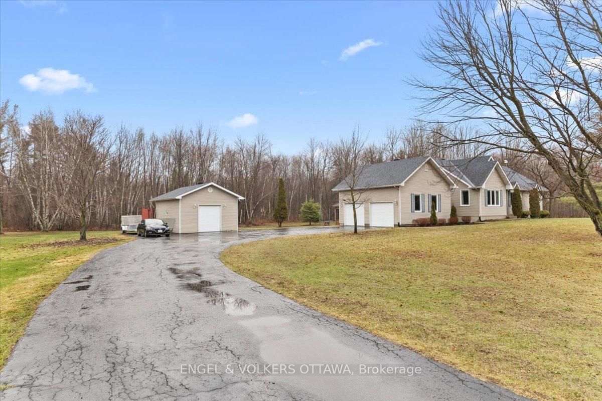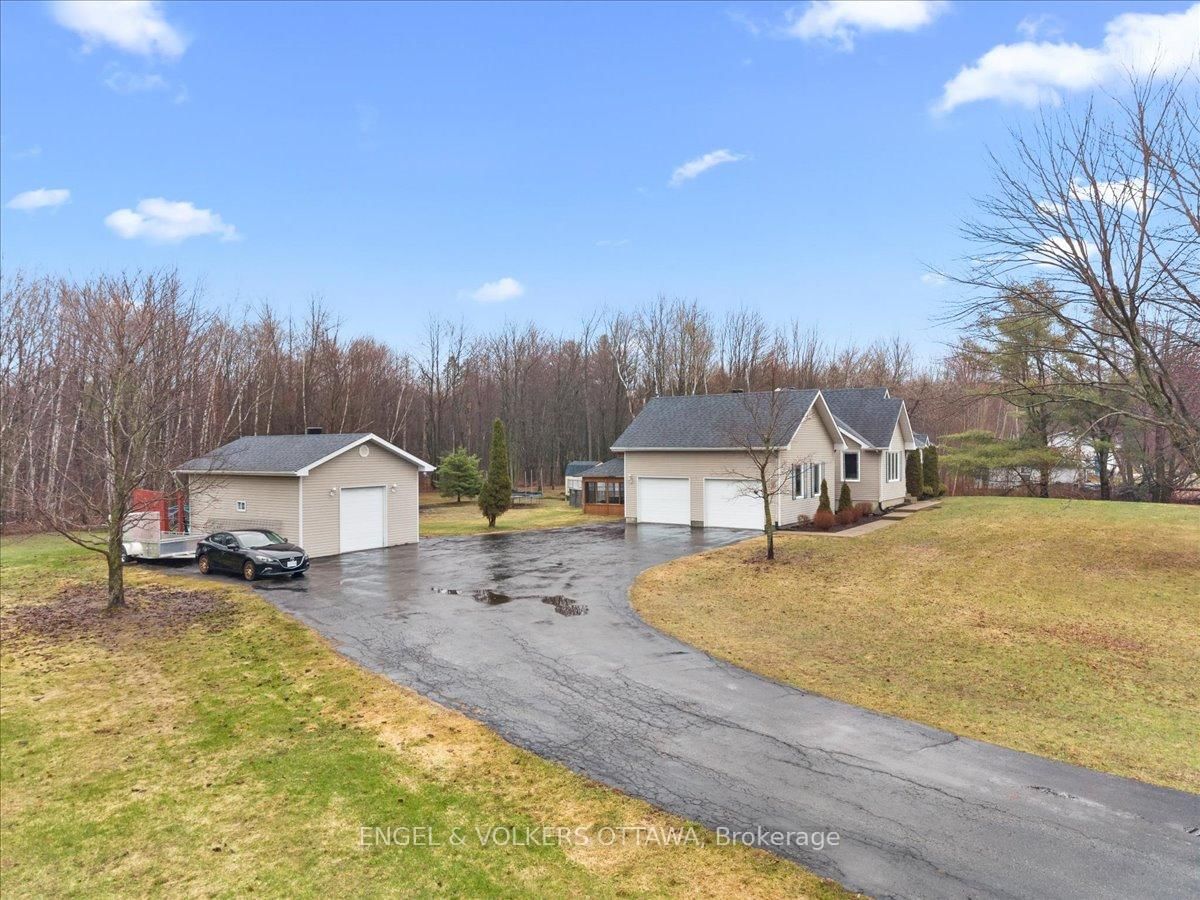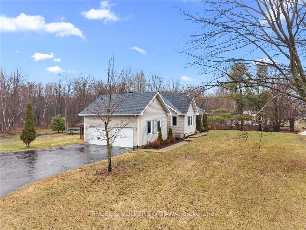 Tucked away on a private 1. The Bungalow on 924 County 9 Road has 3 bedrooms, 2 bathrooms, and is located on a 200 x 300 ft lot in the community of Alfred and Plantagenet Twp .36-acre lot backing onto trees, this custom-built bungalow offers the space, privacy and updates that are so hard to find. Built in 2003, this 3+1 bedroom home is just 20 minutes from Rockland and offers the best of country living without the long list of projects.The main floor features new hardwood flooring and an open-concept layout connecting the living room, dining area and spacious eat-in kitchen. Recently renovated, the kitchen offers newer appliances, plenty of storage and a massive butcher block island that quickly becomes the heart of the home. Three generous bedrooms and a beautifully updated 5-piece bathroom complete the main level, along with convenient main floor laundry.The fully finished basement adds even more living space with a huge rec room, a fourth bedroom and a 3-piece bathroom-ideal for guests, teens, a home office or multigenerational living.Outside, you'll find an oversized heated attached double garage plus a separate heated detached workshop or additional vehicle storage. The large driveway offers plenty of parking, while the property itself is lined with trees and includes young apple trees, a pear tree and a cherry tree.Major updates have already been taken care of, including roof shingles in 2018, furnace in 2020, septic system in 2021, plus updated kitchen, flooring and main bathroom. Move in, spread out, and enjoy country living without the never-ending to-do list.