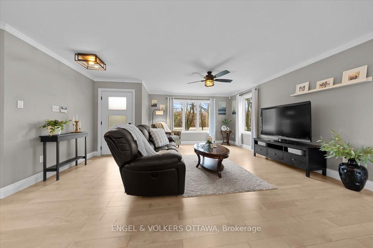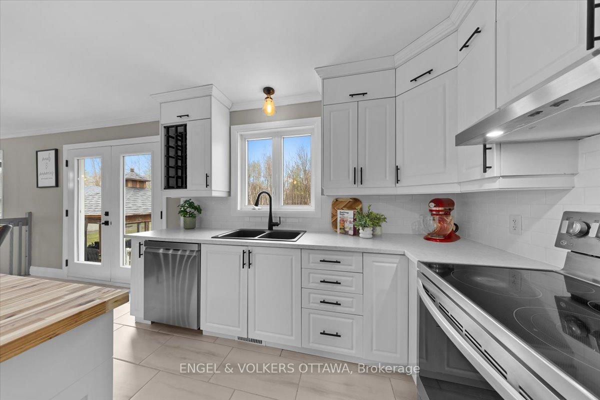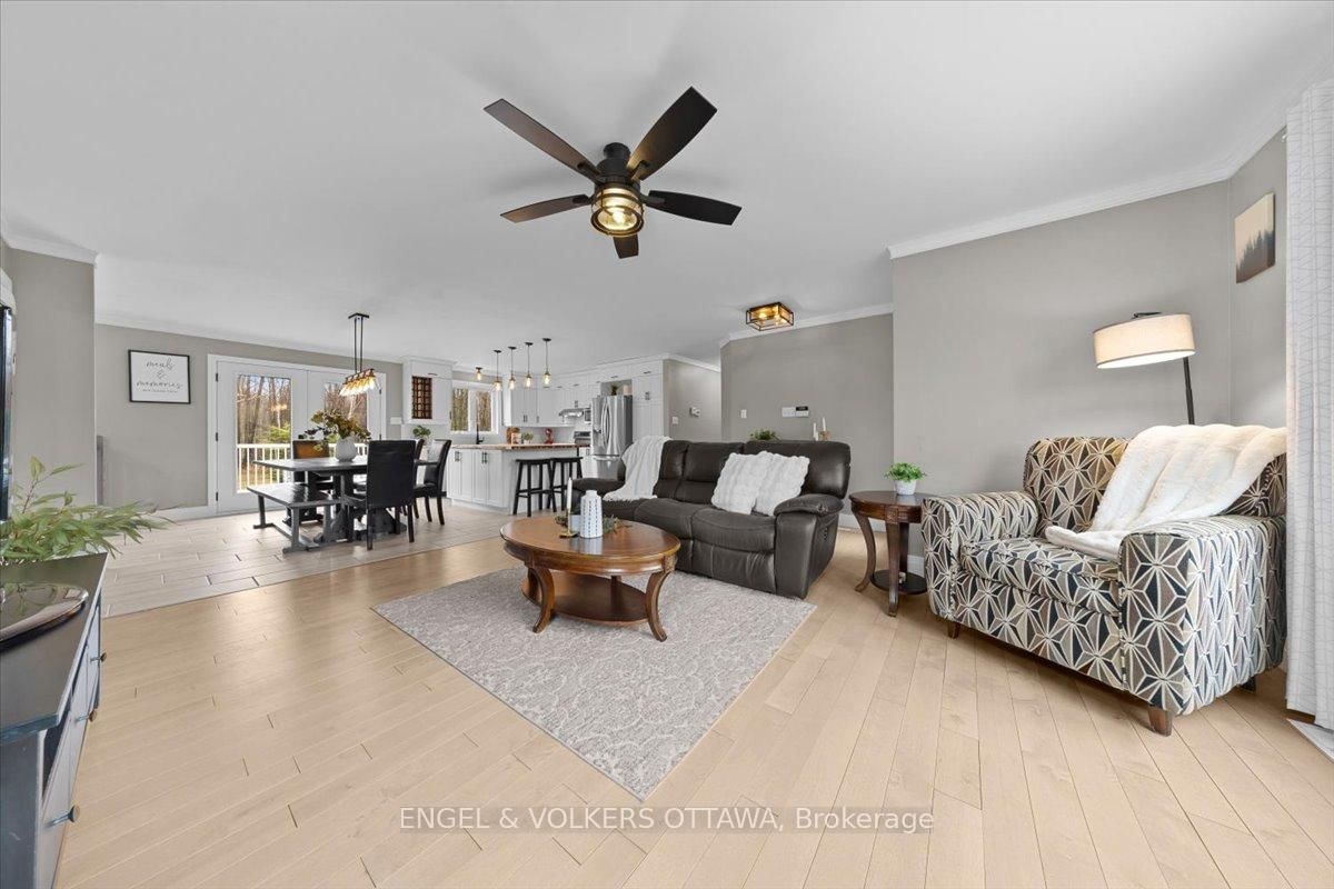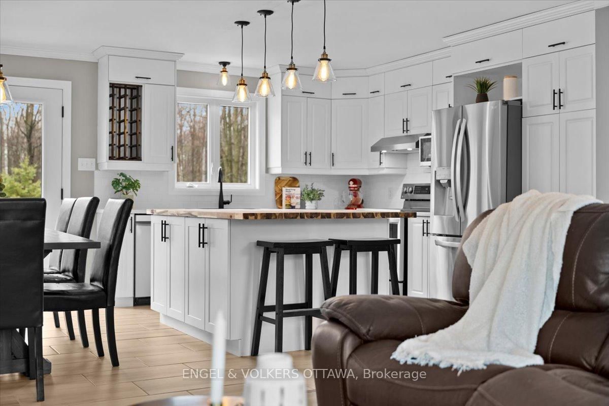 Tucked away on a private 1. The Bungalow on 924 County 9 Road has 3 bedrooms, 2 bathrooms, and is located on a 200 x 300 ft lot in the community of Alfred and Plantagenet Twp .36-acre lot backing onto trees, this custom-built bungalow offers the space, privacy and updates that are so hard to find. Built in 2003, this 3+1 bedroom home is just 20 minutes from Rockland and offers the best of country living without the long list of projects.The main floor features new hardwood flooring and an open-concept layout connecting the living room, dining area and spacious eat-in kitchen. Recently renovated, the kitchen offers newer appliances, plenty of storage and a massive butcher block island that quickly becomes the heart of the home. Three generous bedrooms and a beautifully updated 5-piece bathroom complete the main level, along with convenient main floor laundry.The fully finished basement adds even more living space with a huge rec room, a fourth bedroom and a 3-piece bathroom-ideal for guests, teens, a home office or multigenerational living.Outside, you'll find an oversized heated attached double garage plus a separate heated detached workshop or additional vehicle storage. The large driveway offers plenty of parking, while the property itself is lined with trees and includes young apple trees, a pear tree and a cherry tree.Major updates have already been taken care of, including roof shingles in 2018, furnace in 2020, septic system in 2021, plus updated kitchen, flooring and main bathroom. Move in, spread out, and enjoy country living without the never-ending to-do list.