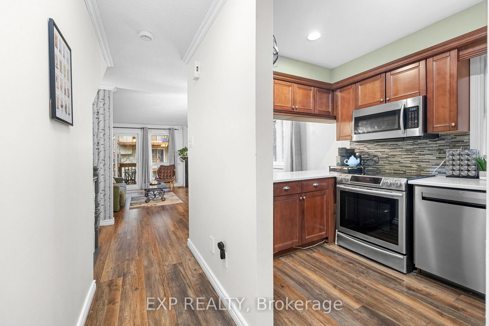 Move right in to this beautifully updated 2-bedroom end-unit condo in the highly sought-after Hunt Club Park, with your own parking spot and plenty of visitor parking right out front. The 2-Storey on 171 Briston Private has 2 bedrooms, 2 bathrooms, and is located in the community of Hunt Club Park . A large covered entrance leads into a spacious foyer with a handy powder room, and the upgraded kitchen, complete with pristine quartz countertops (2022), opens seamlessly to the dining area. Many thoughtful updates have been done in recent years, including stainless steel appliances, wide-plank laminate flooring, modern lighting, and a digital thermostat. Fresh paint and lush new carpeting (2023) flow down to the quiet, bright lower level. The smart layout keeps bedrooms private. The primary bedroom with wall-to-wall closets and the second bedroom/office are separated by a full bath, laundry, and storage room, giving everyone space to spread out. A wood-burning fireplace adds warmth and charm and is rare in a condo! Enjoy a maintenance-free lifestyle with low condo fees that include water, all while being in a community that's hard to beat. Hunt Club Park offers walking paths, parks, shopping, public transit, and quick access to the 417, making this location as convenient as it is welcoming. This turn-key condo is perfectly situated for both lifestyle and location. Don't miss it!