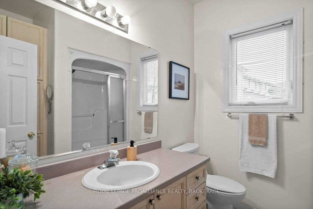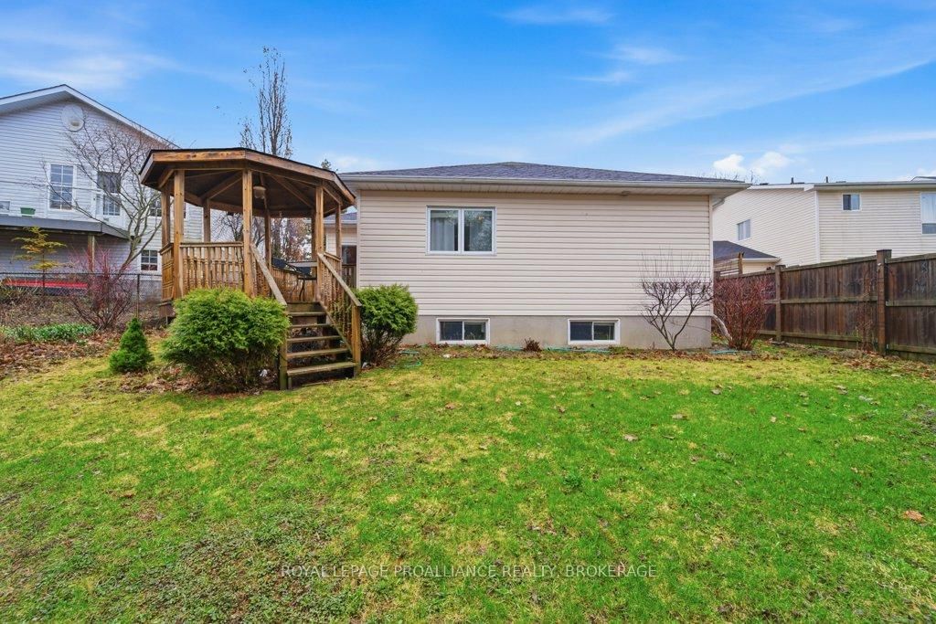 Welcome to this charming two bedroom, 2. The Bungalow on 488 Fieldstone Drive has 2 bedrooms, 3 bathrooms, and is located on a 105.38 x 50.43 ft loton < .50 acres in the community of Kingston East (Incl Barret Crt) .5 bathroom bungalow, ideally located in sought after Greenwood Park. Step inside to a welcoming foyer that leads you into an open concept living and dining area, featuring beautiful hardwood floors. The kitchen offers plenty of cabinets and counter space with a functional layout and cozy eat in area, ideal for casual meals and morning coffee. The spacious primary bedroom includes an ensuite bathroom, while a second bedroom and a full main bathroom provide comfortable accommodations for family or guests. Convenient main floor laundry adds to the home's practical layout. The partially finished lower level extends your living space with a generous rec room featuring a gas fireplace, a two piece bathroom, and additional unfinished space ready for storage or future development. Enjoy outdoor living in the private backyard, featuring a deck and gazebo. An attached garage adds everyday convenience. Recent updates include a new furnace (2021), offering peace of mind. Located close to parks, schools, CFB Kingston, public transit, and with easy access to downtown and Highway 401, this home combines comfort, convenience, and a fantastic location. A wonderful opportunity to settle into a welcoming community.